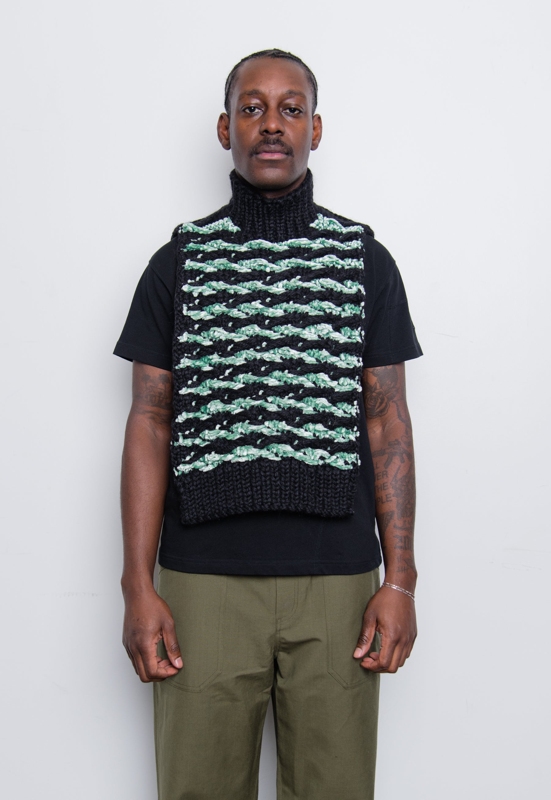 Wool Velvet Float Stitch Jacquard Bib Mint/Black