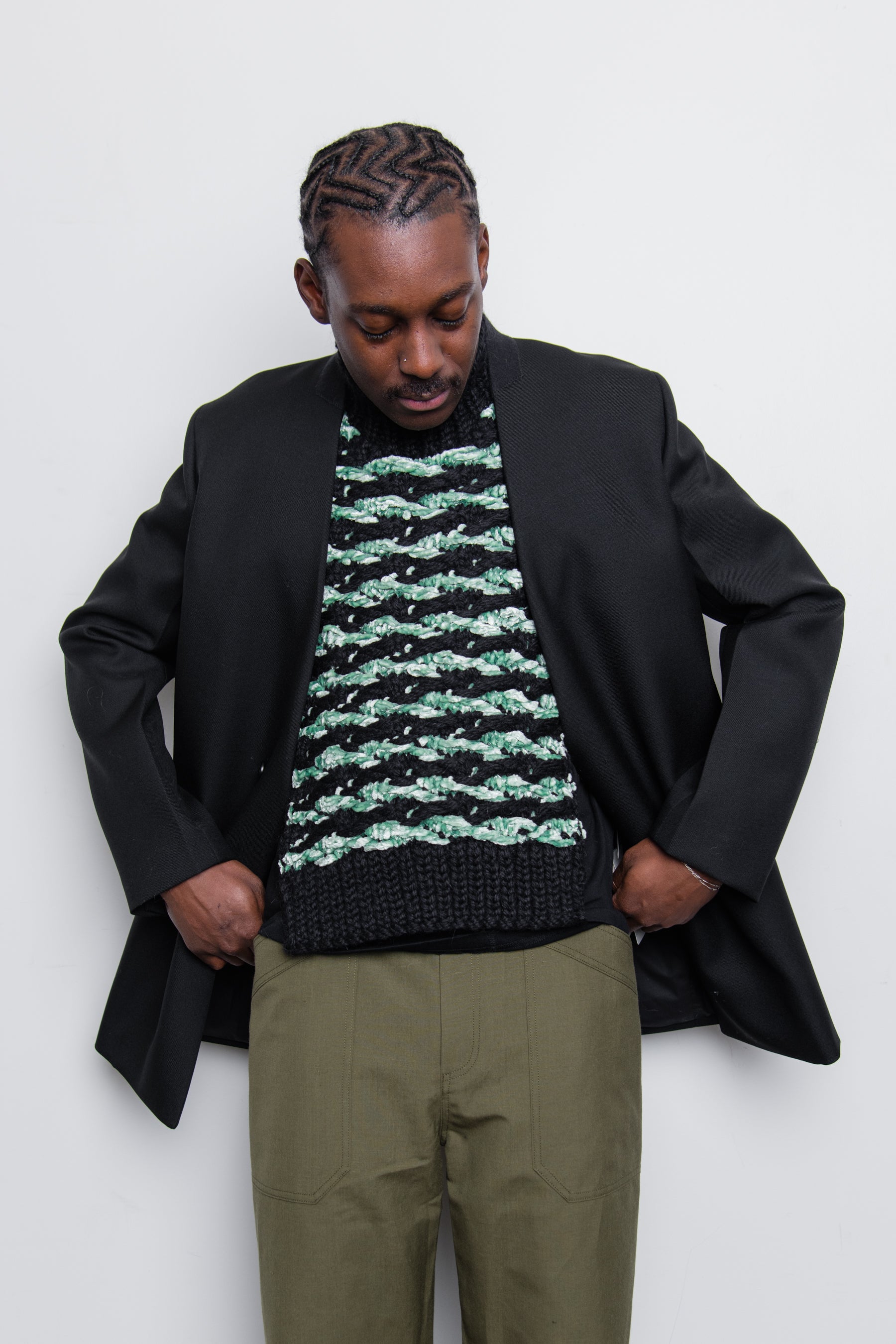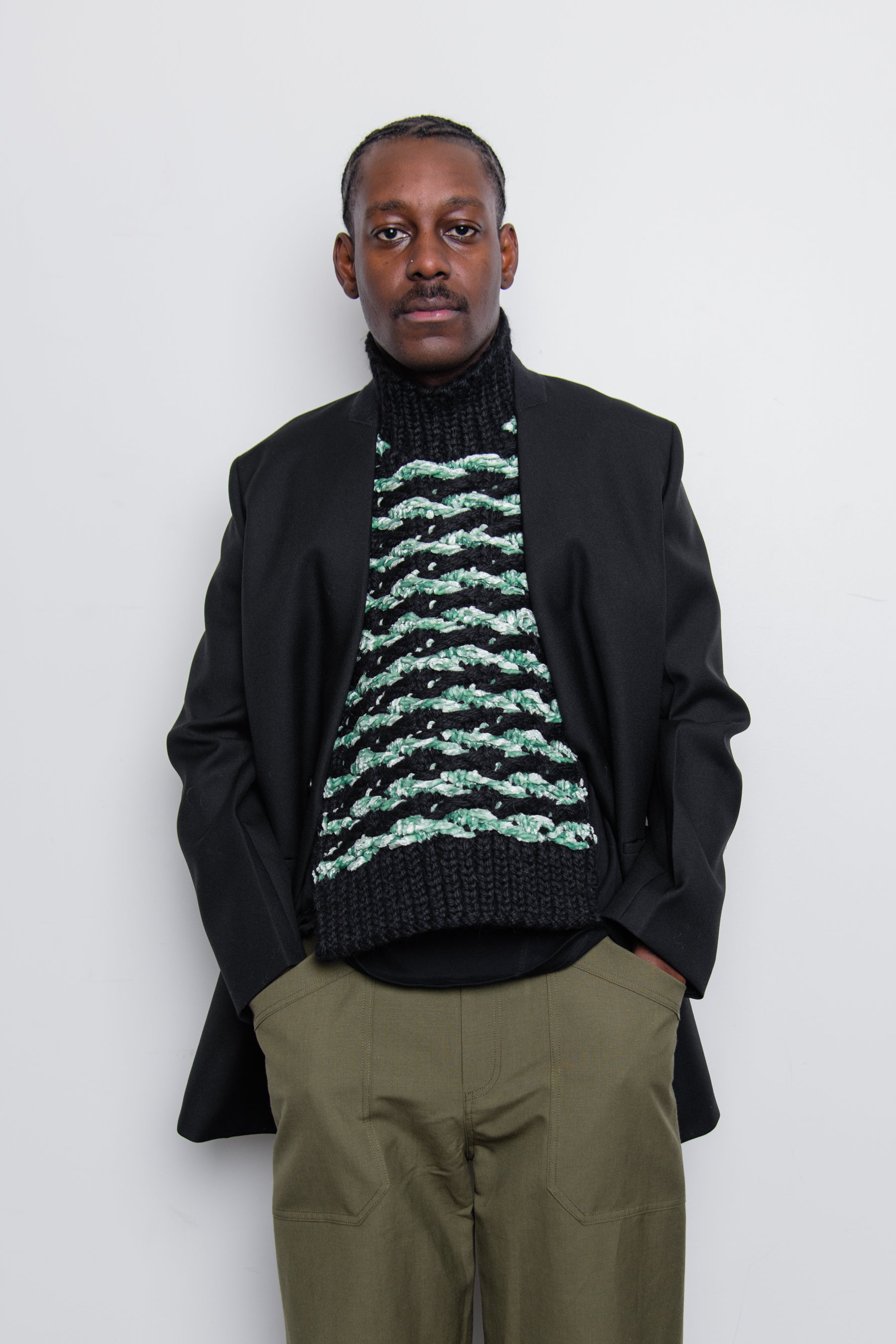- Wool knit velvet float stitch jacquard bib in Mint and Black