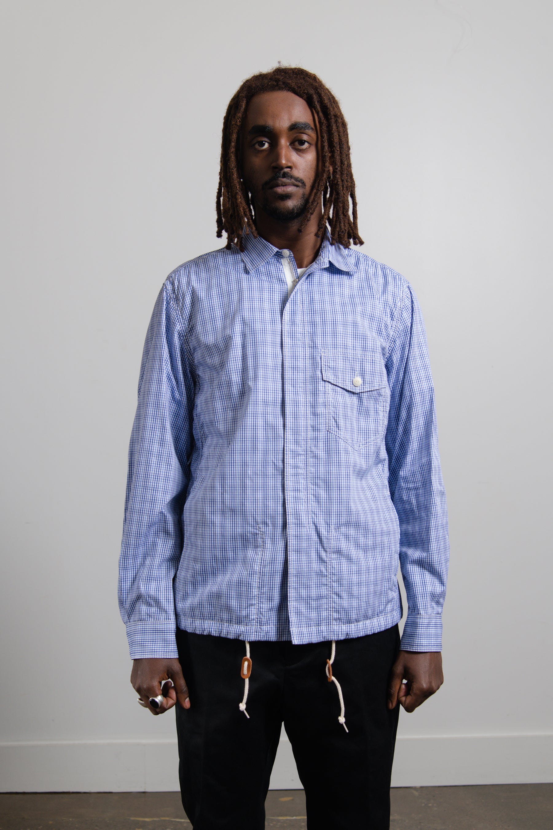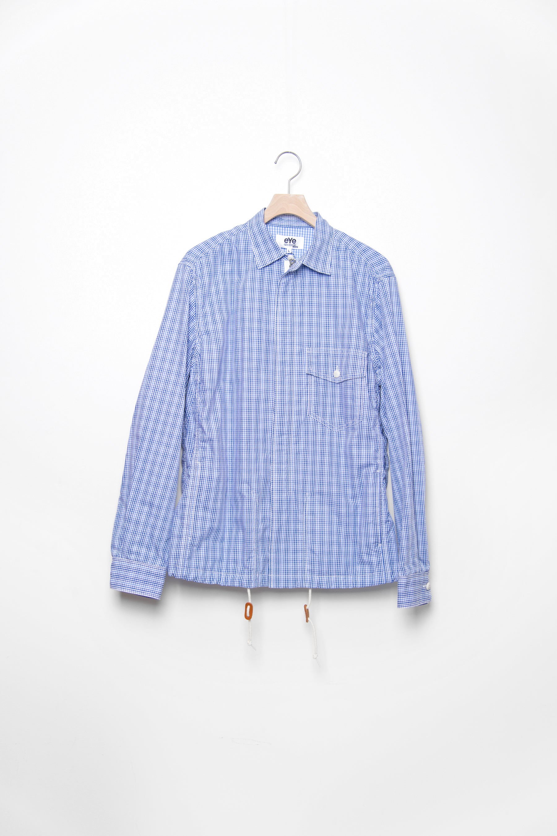 - Long sleeve checkered cotton poplin jacket in Blue and White