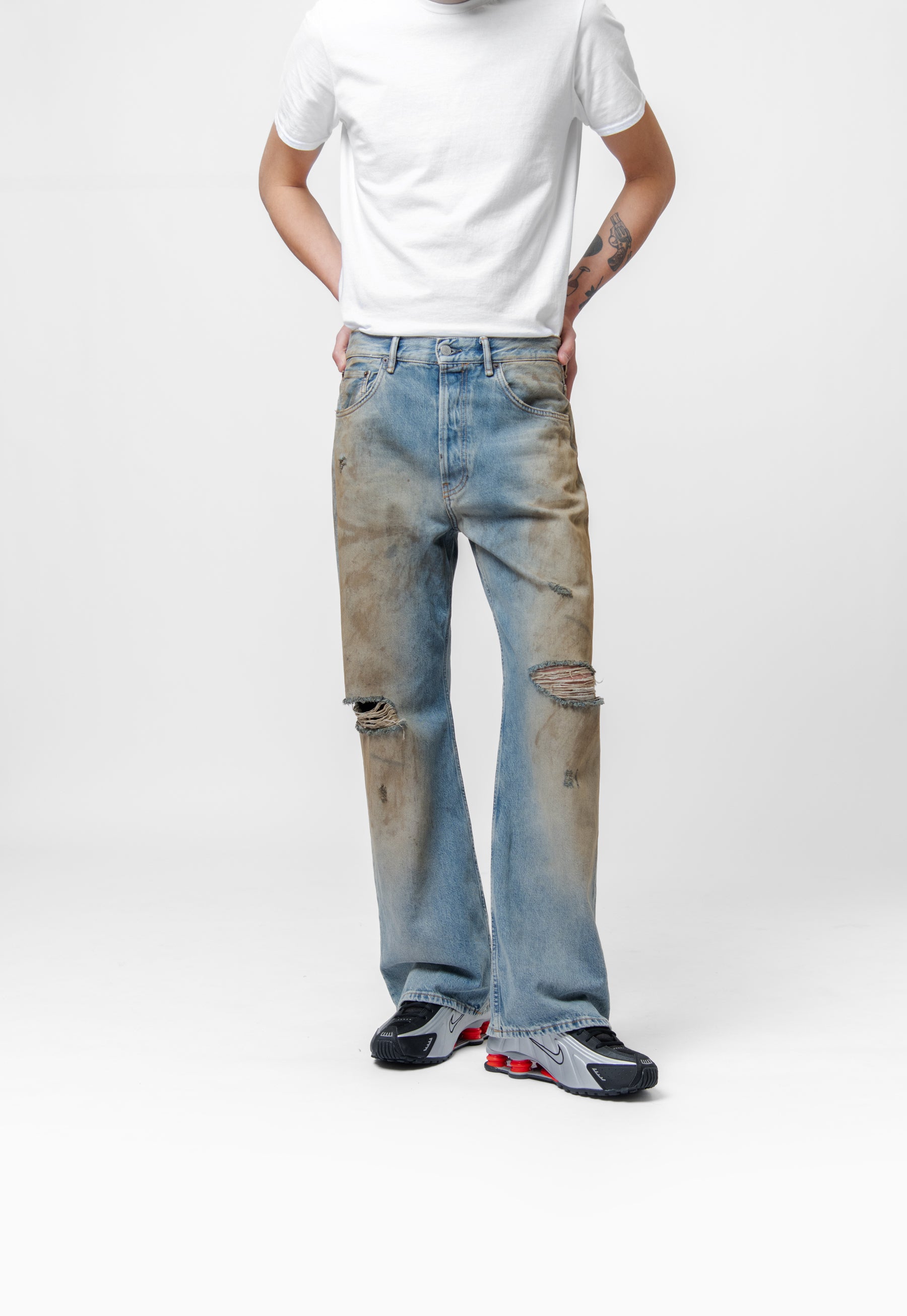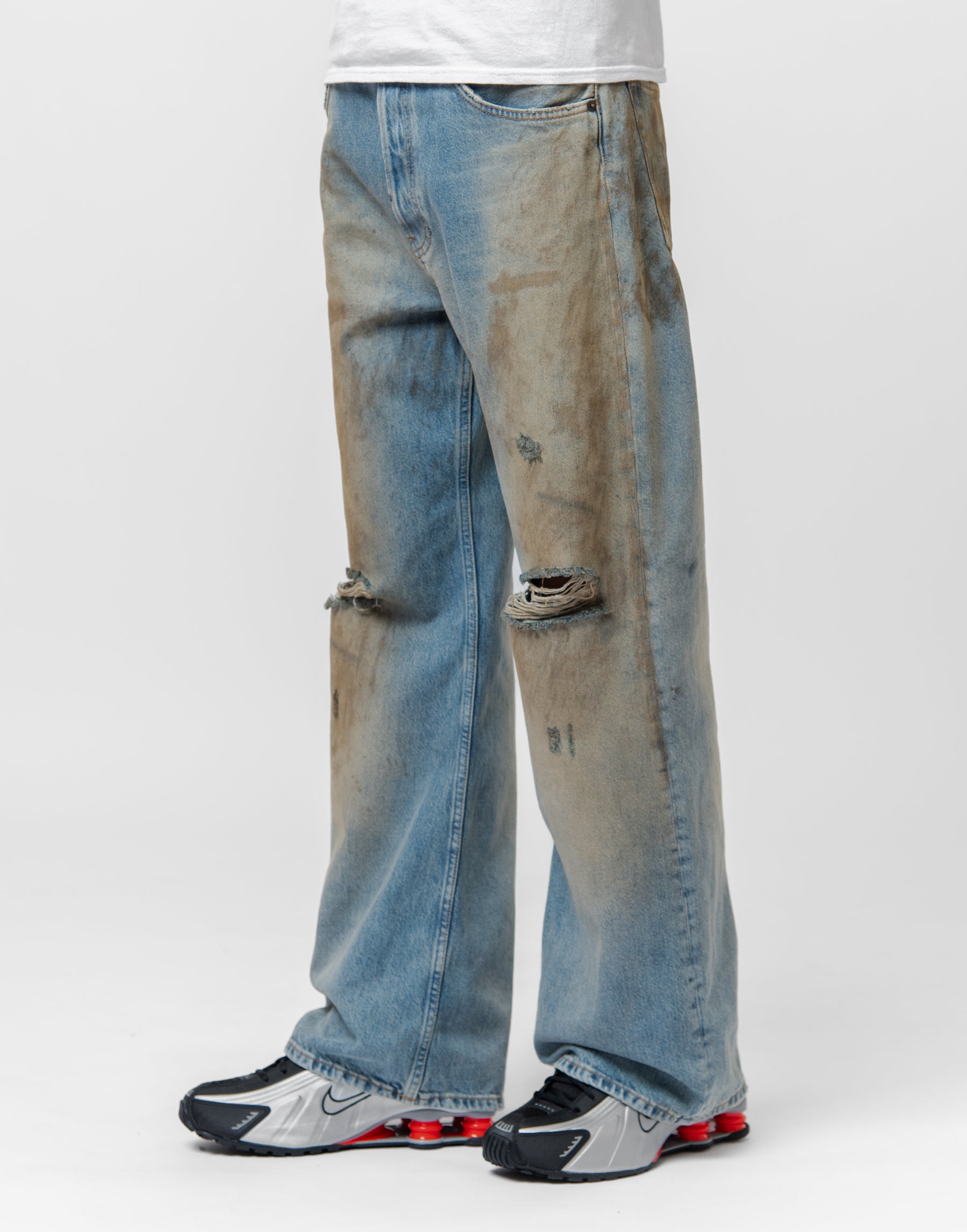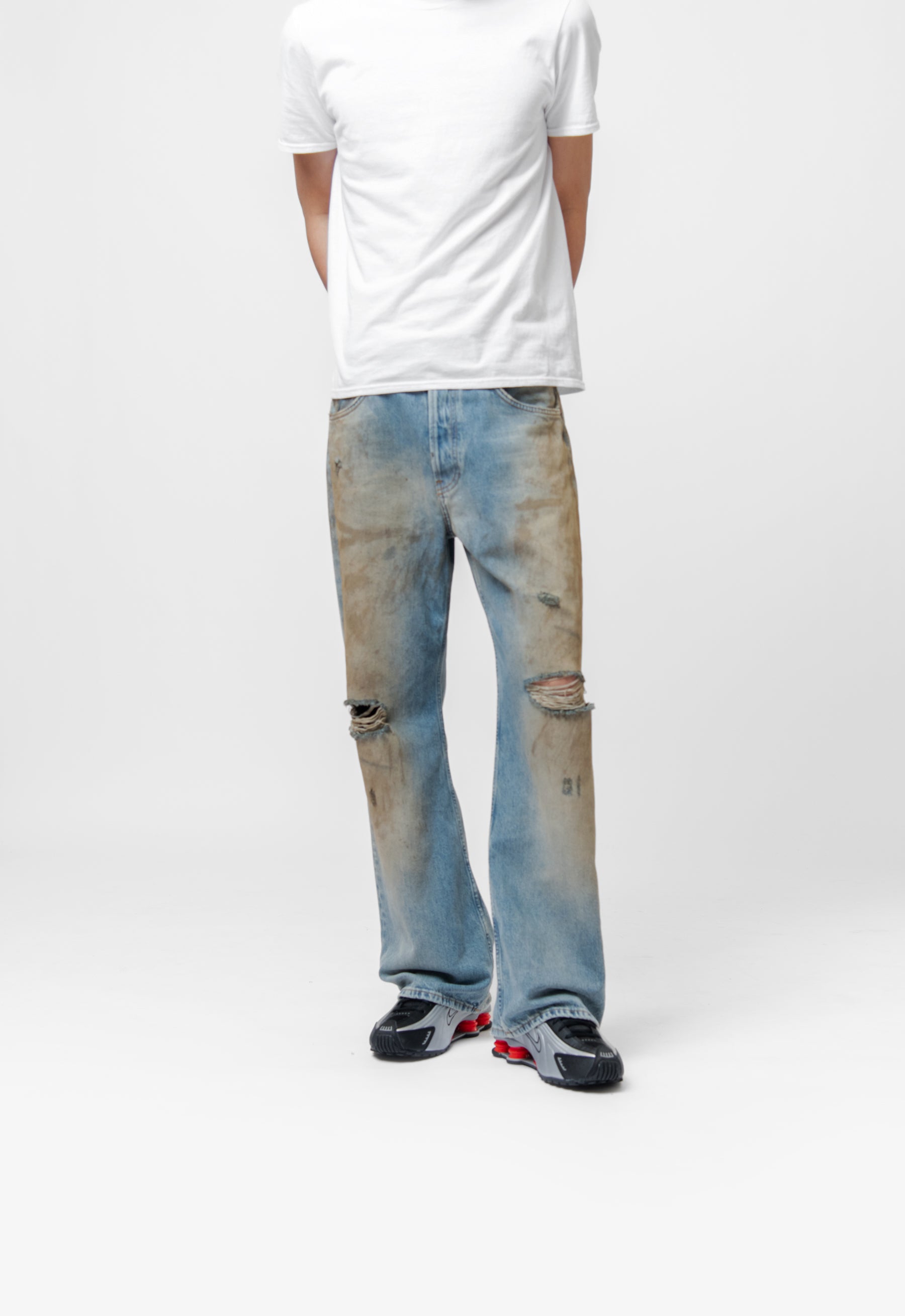 - Distressed detailing at knees
