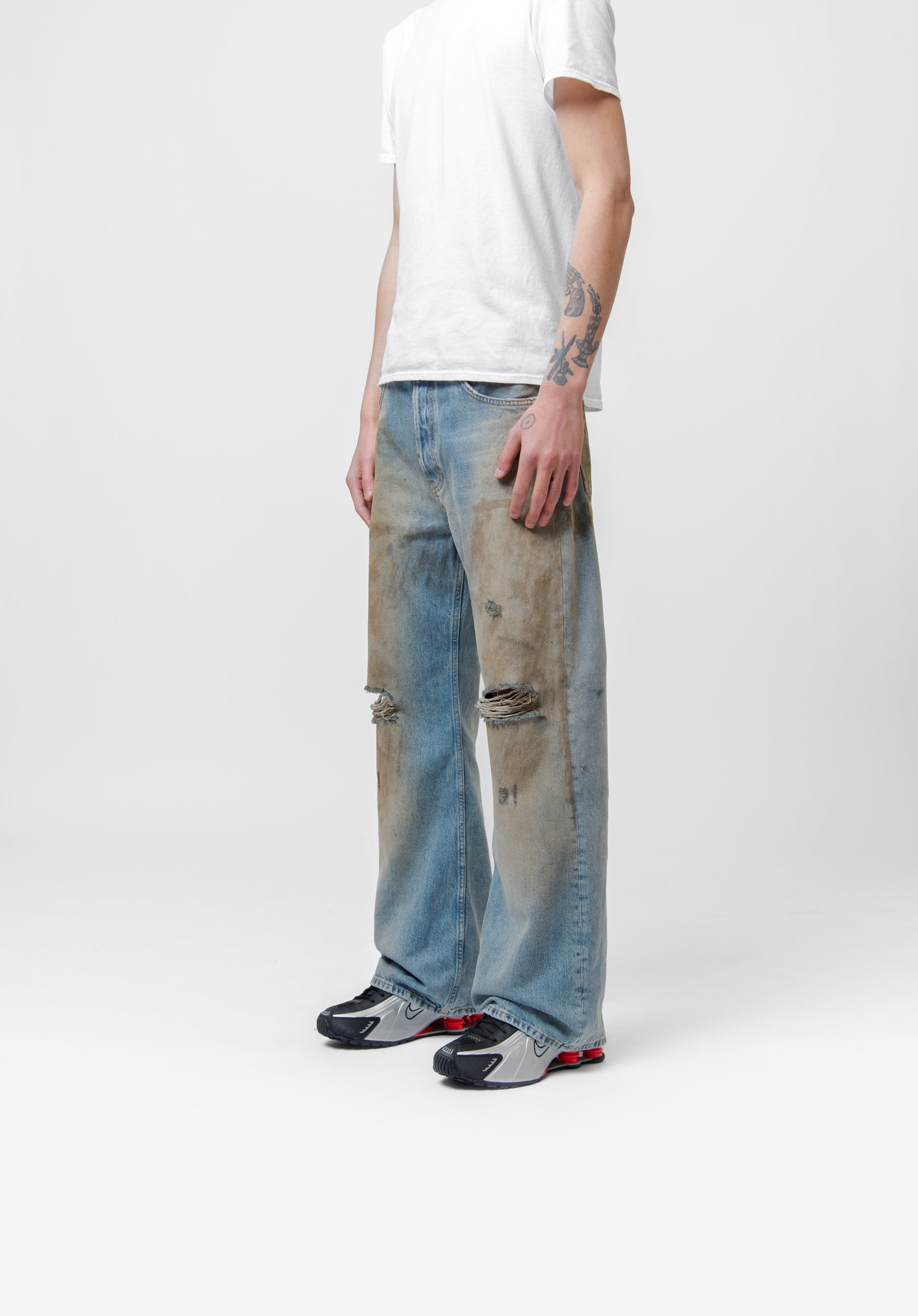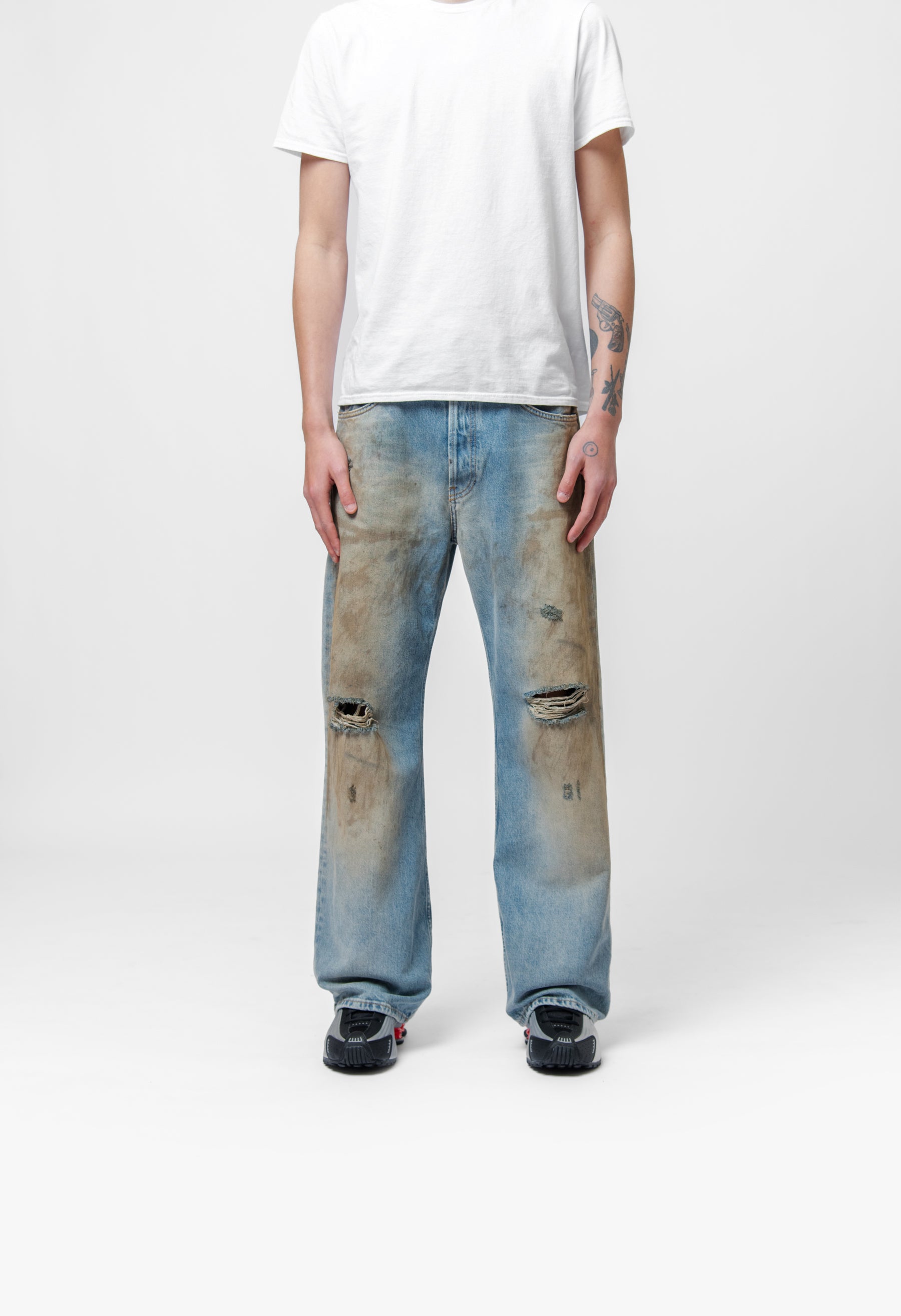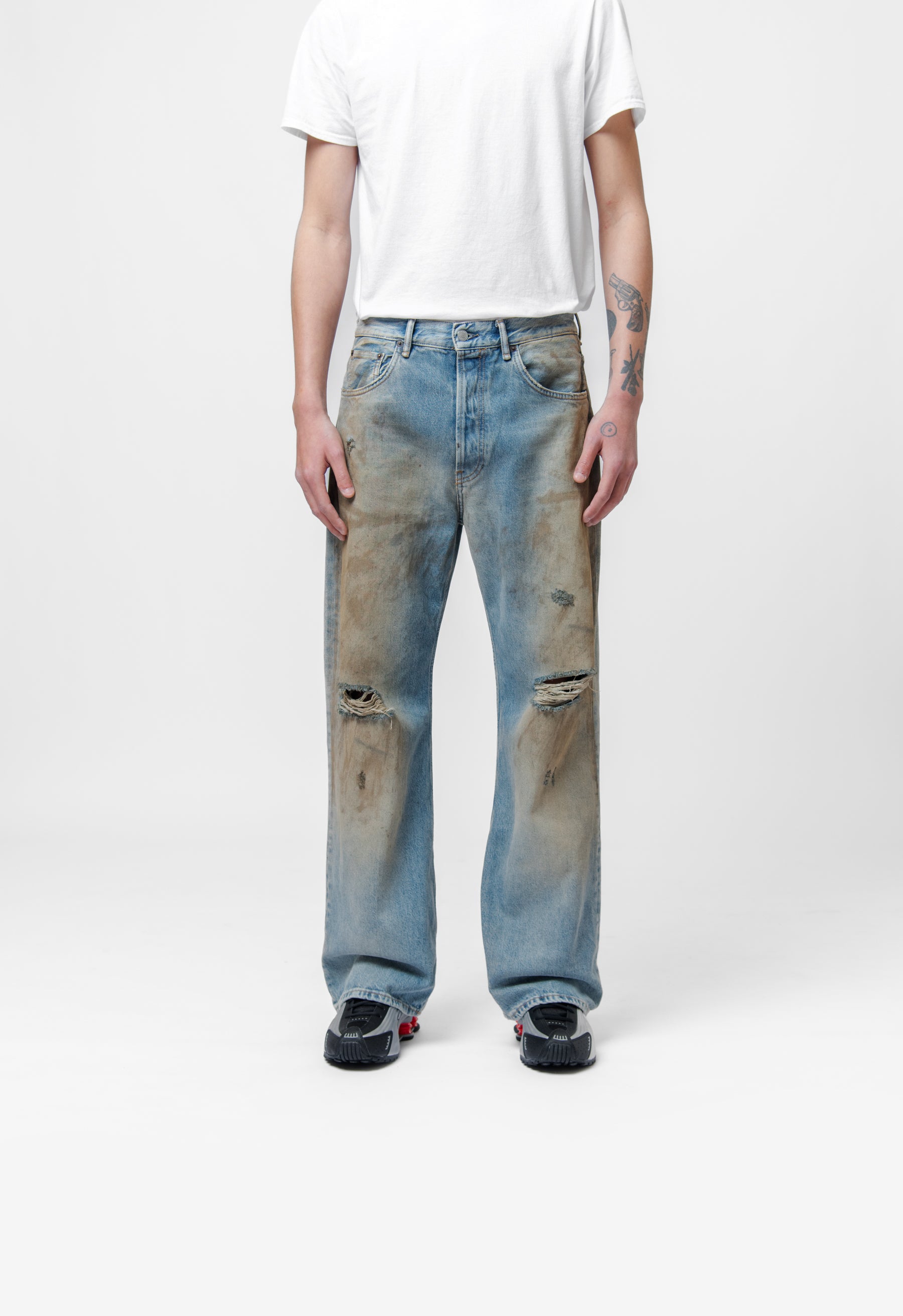- Distressed detailing at knees