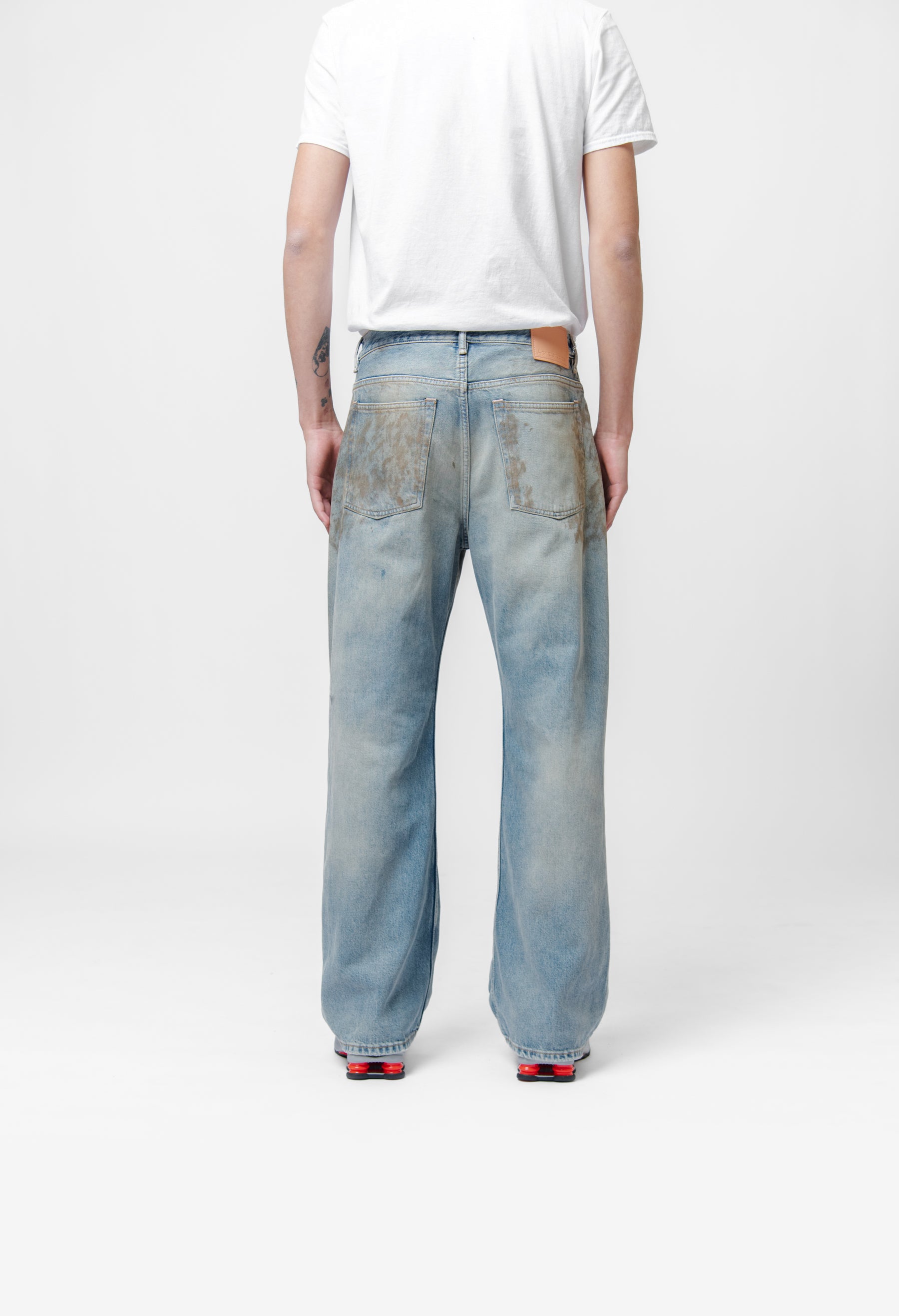 - Full-length Acne Studios cotton denim pants in Mid Blue