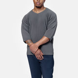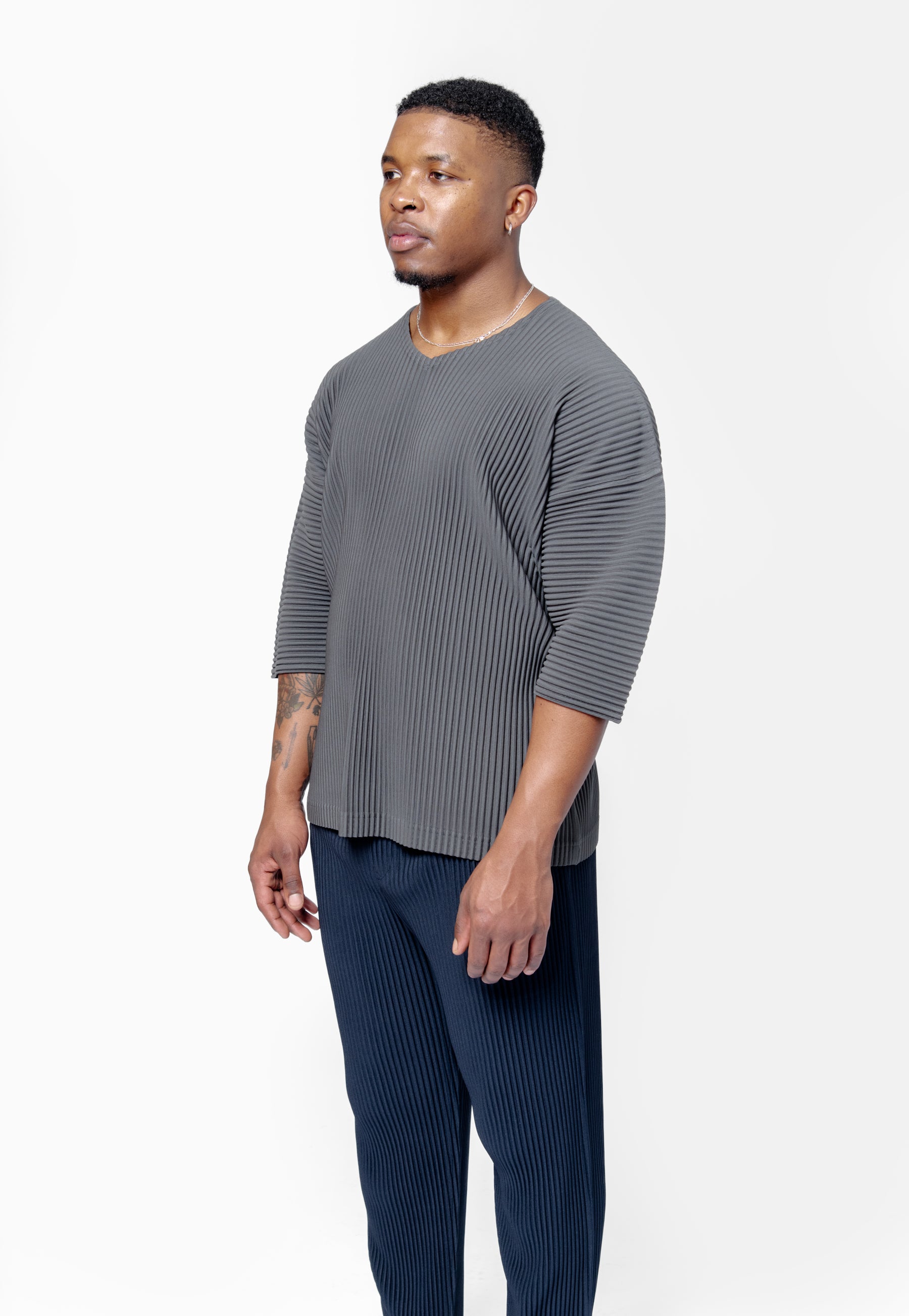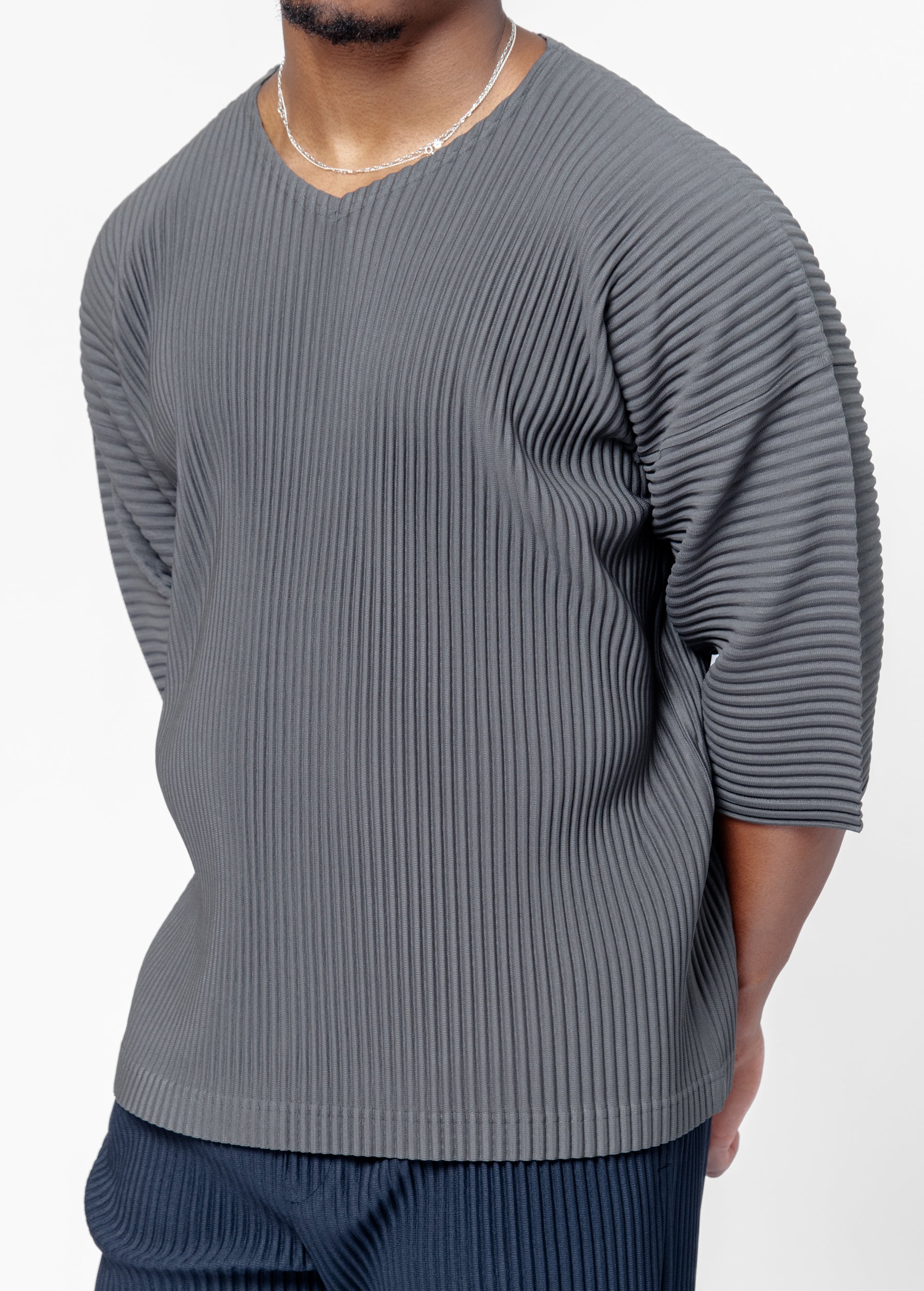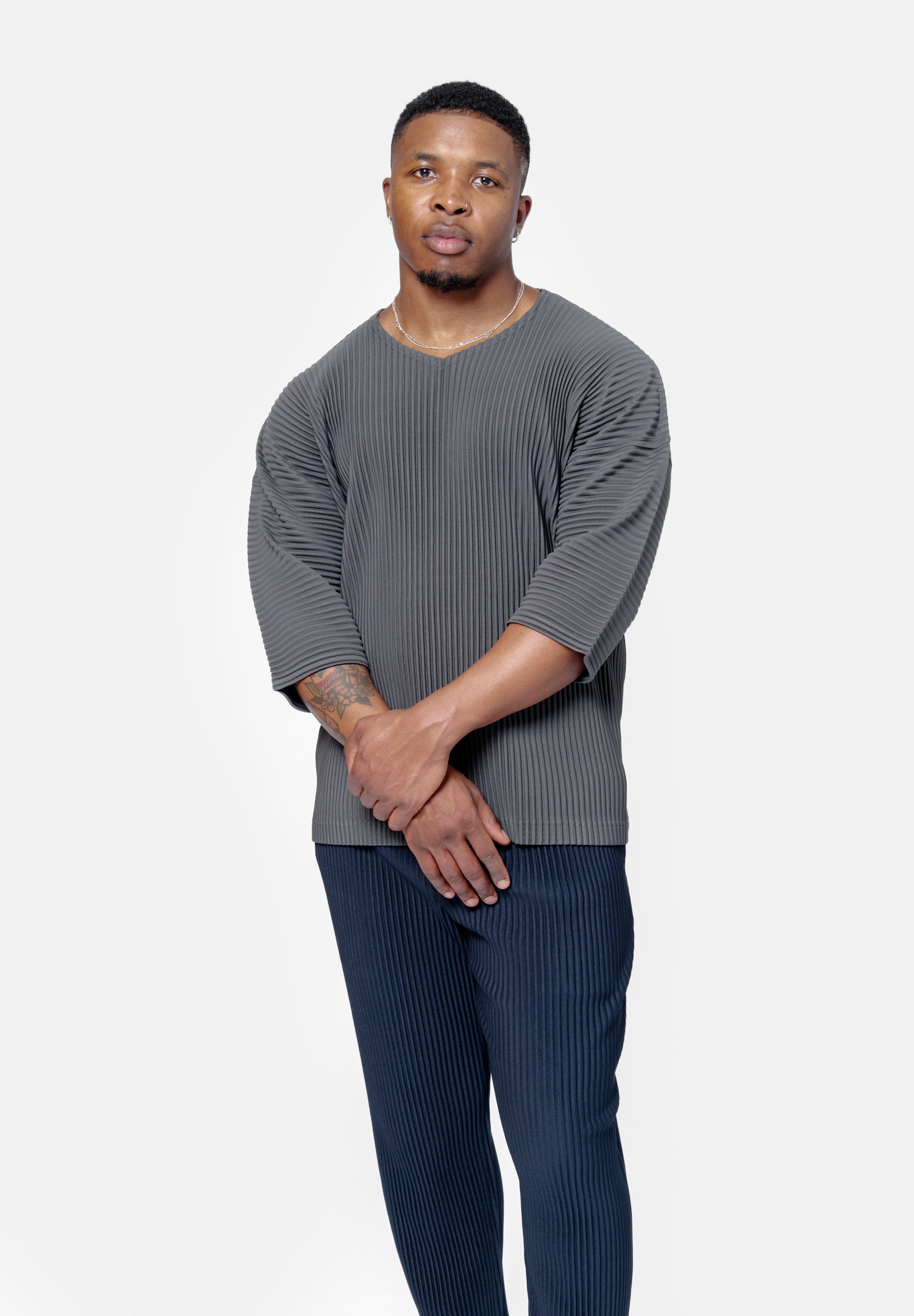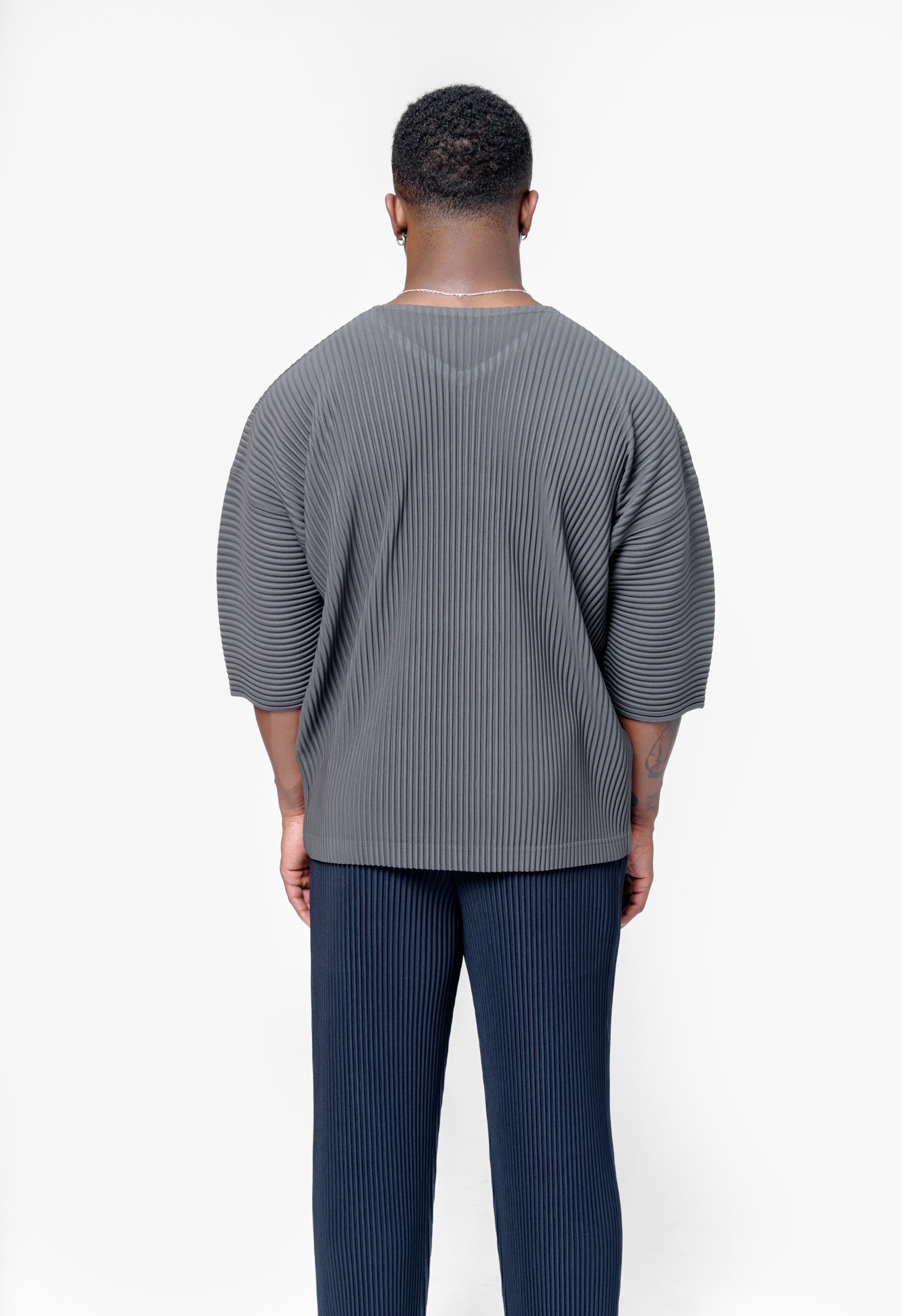 - Short sleeve Homme Plissé Issey Miyake garment pleated shirt in Charcoal Gray