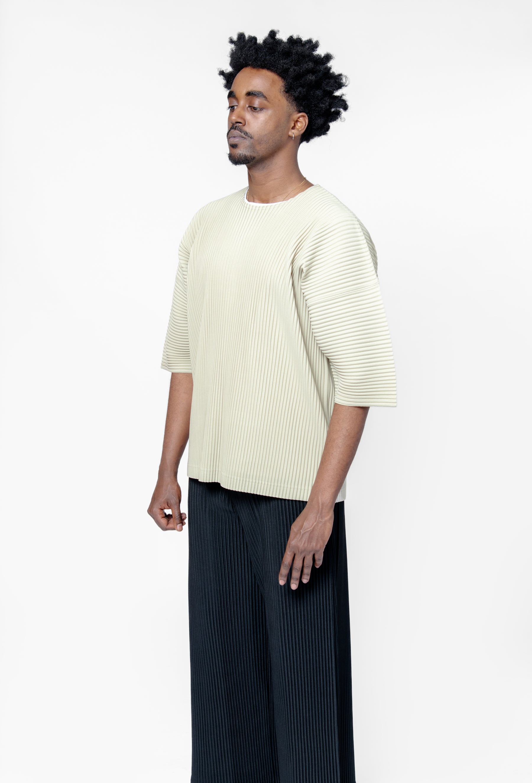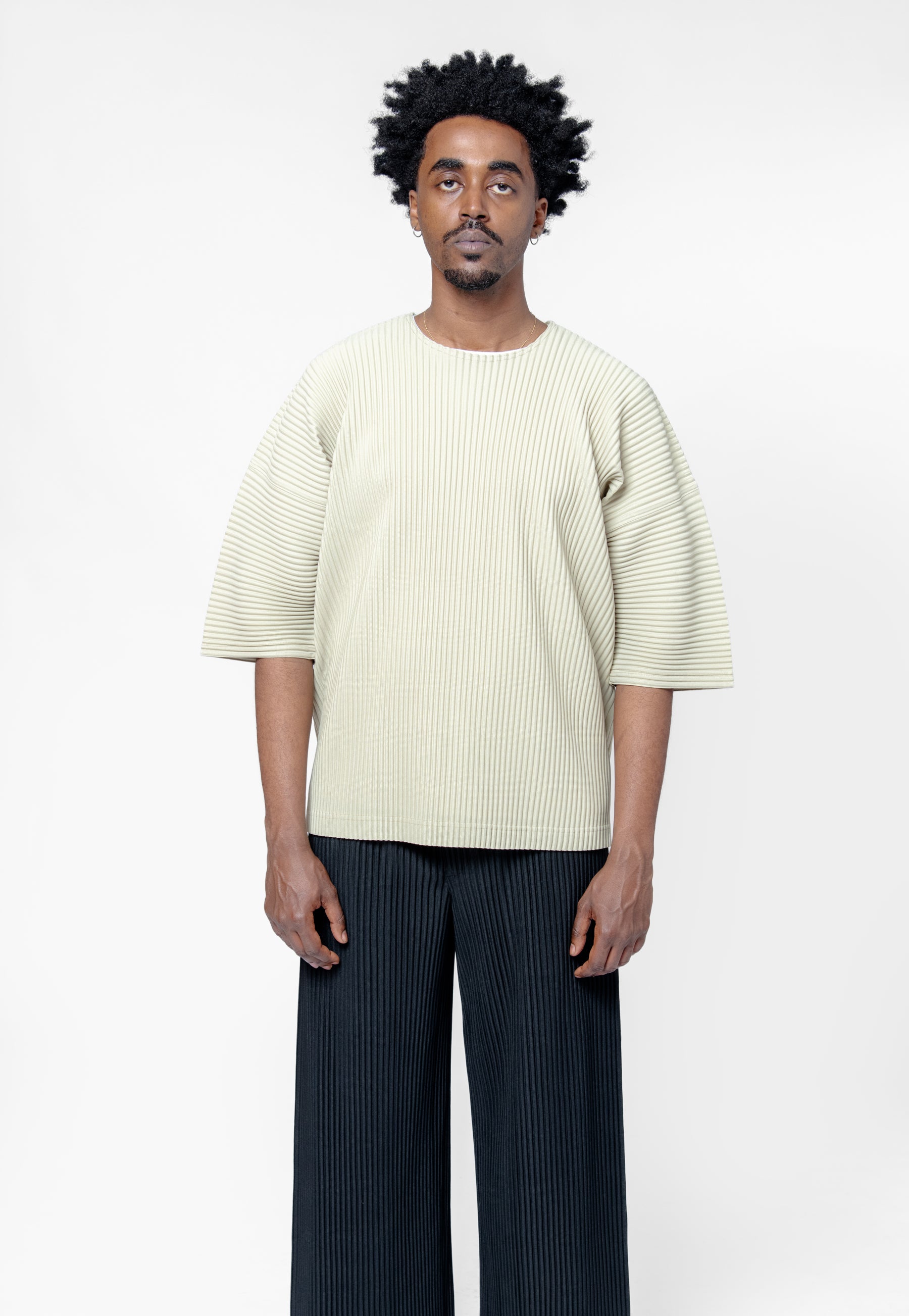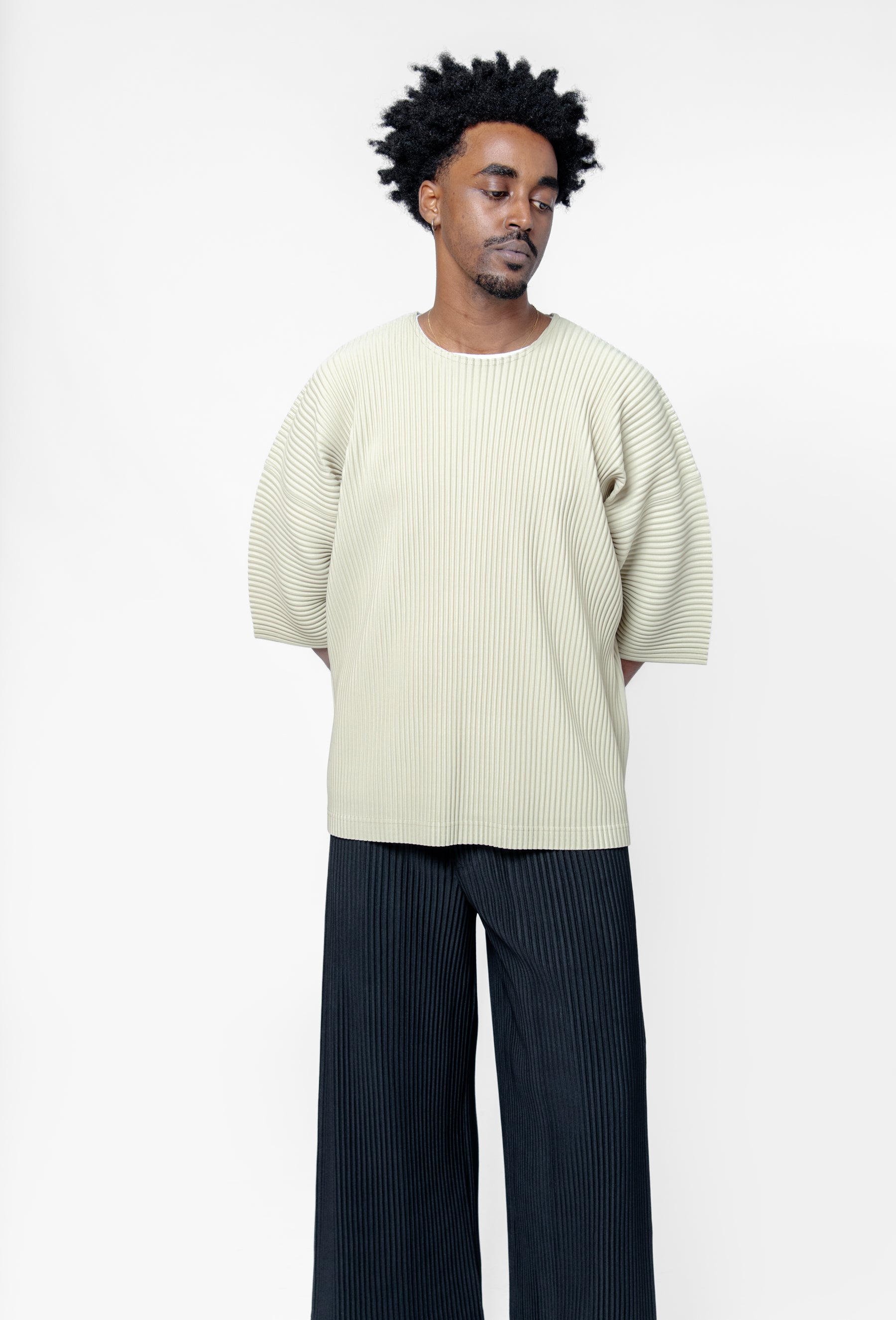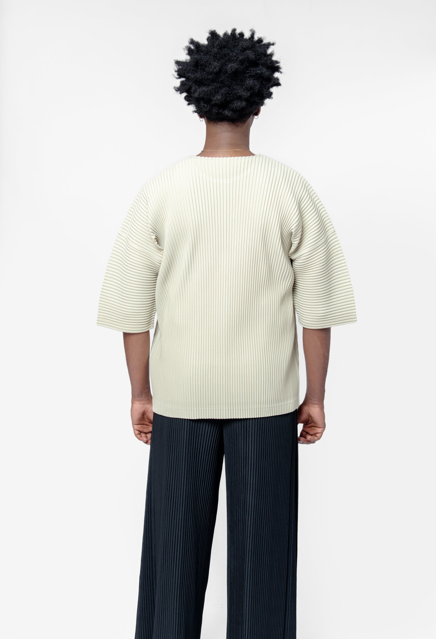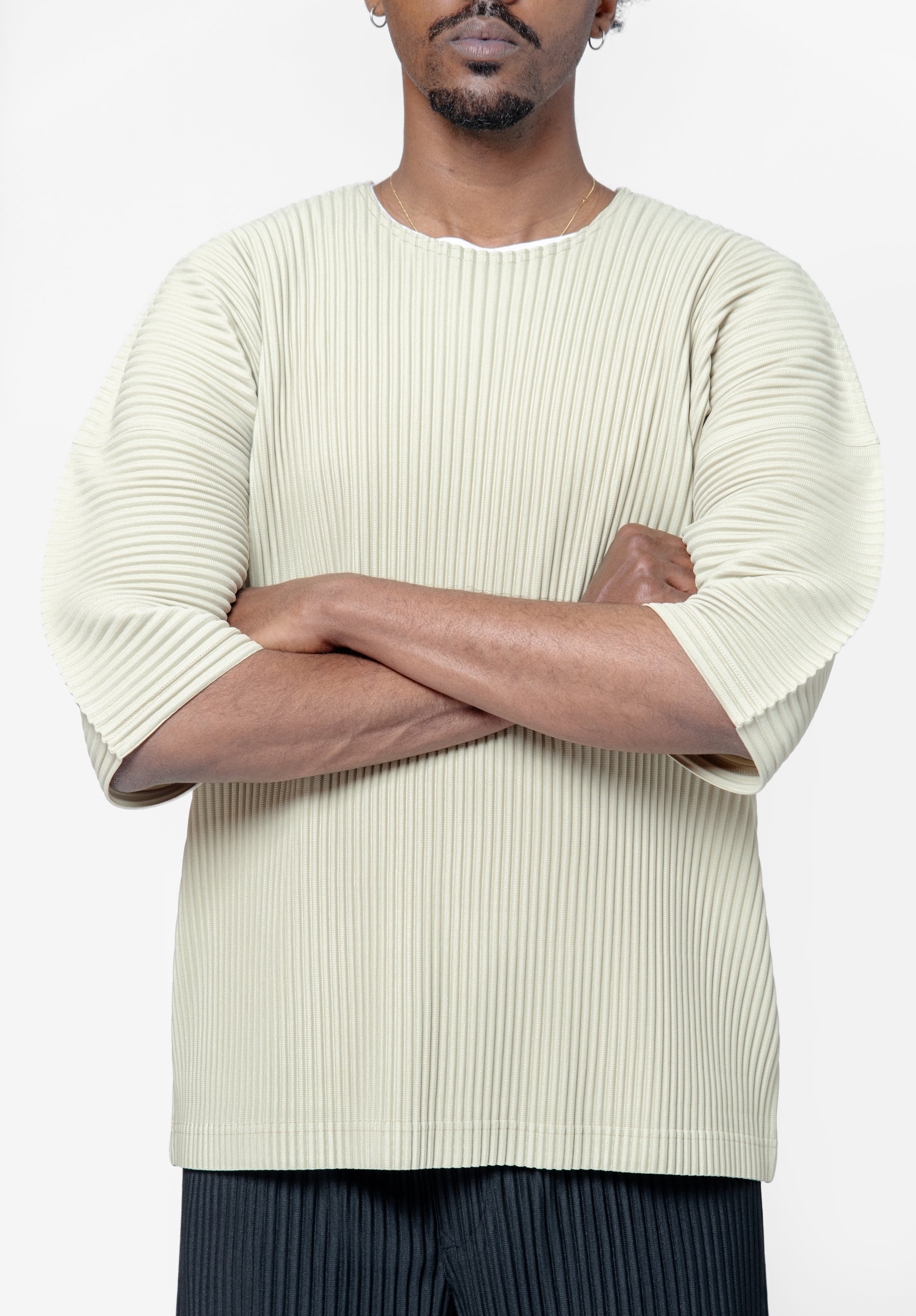 - Short sleeve Homme Plissé Issey Miyake garment pleated shirt in Dry Grass Green