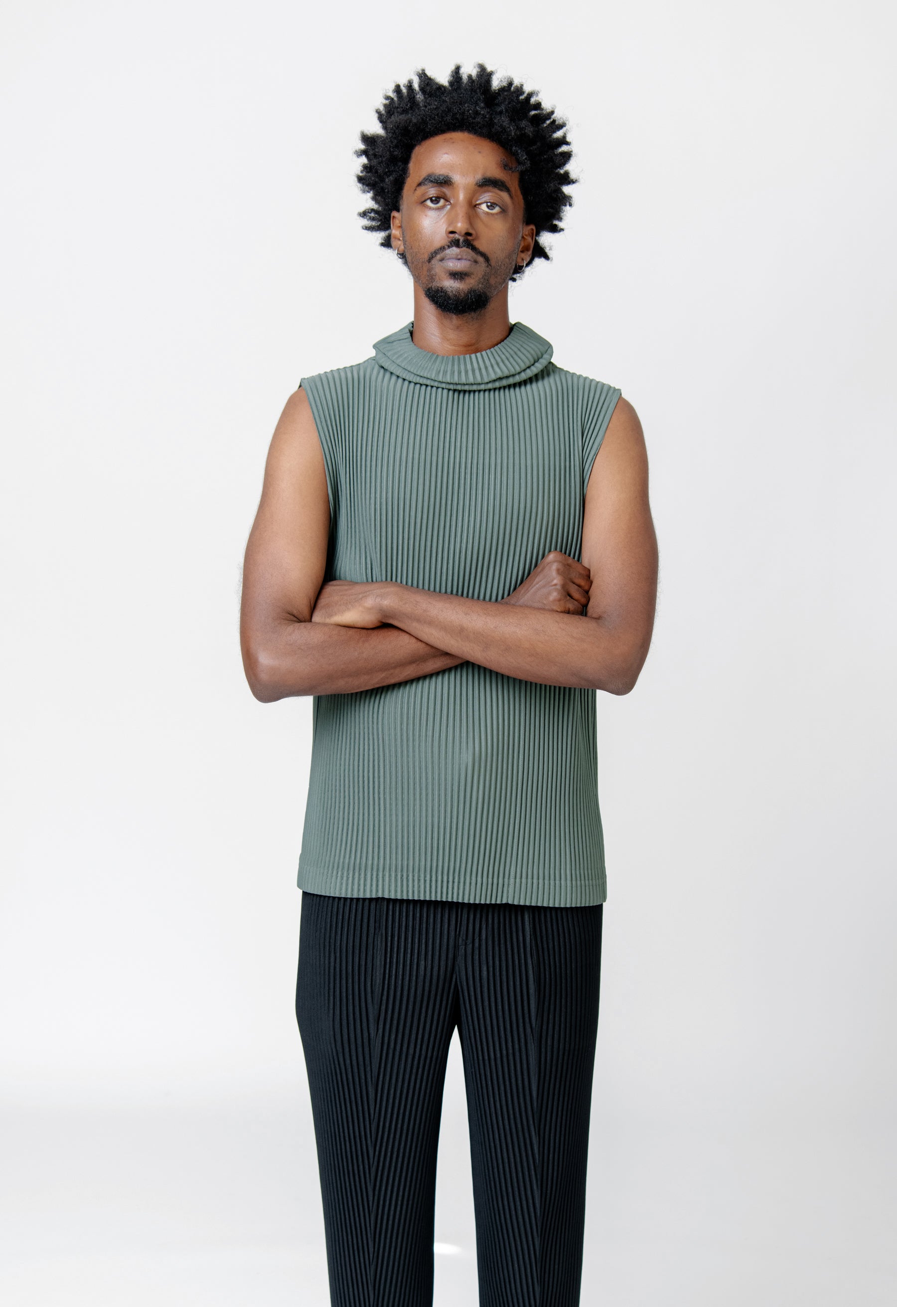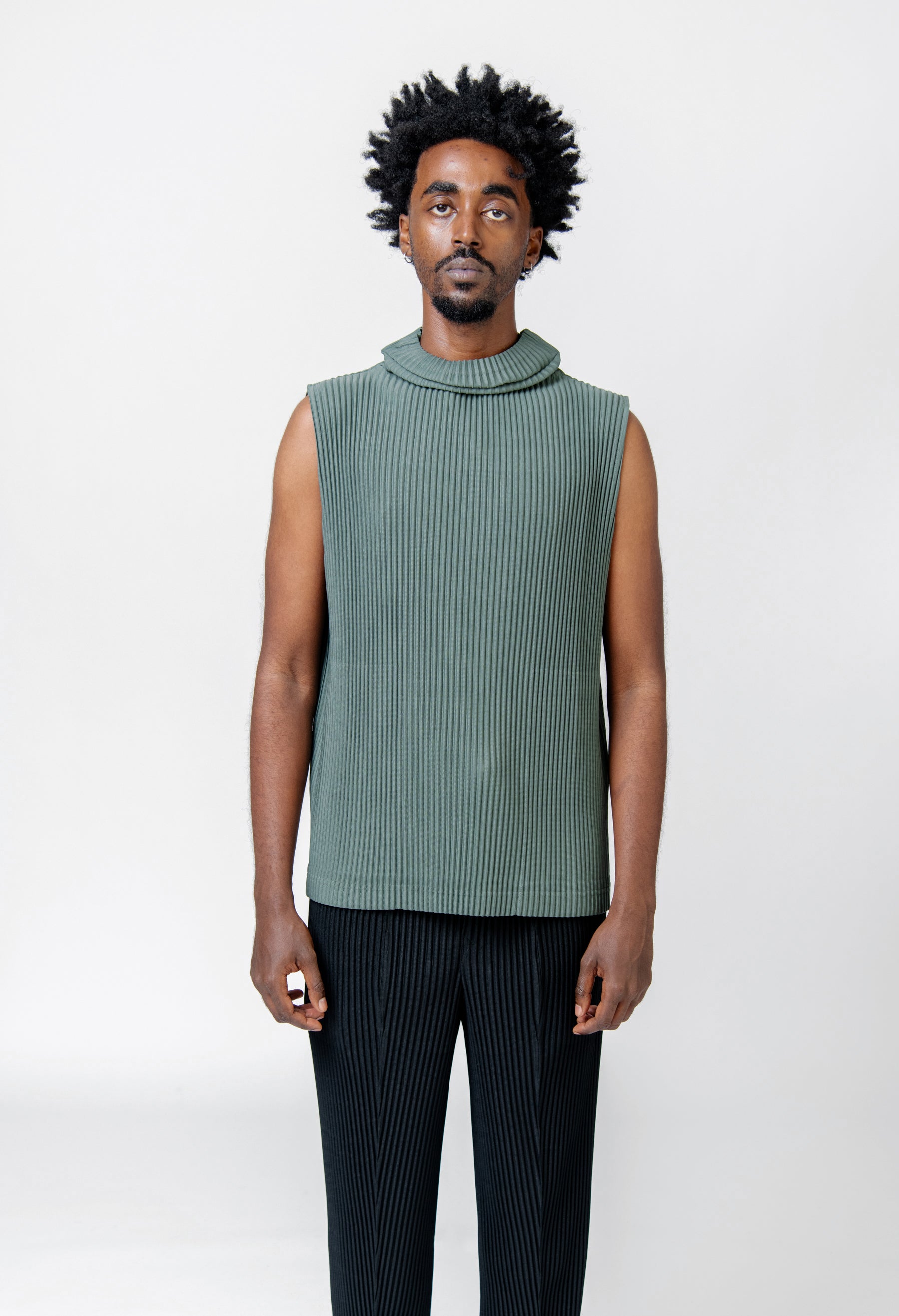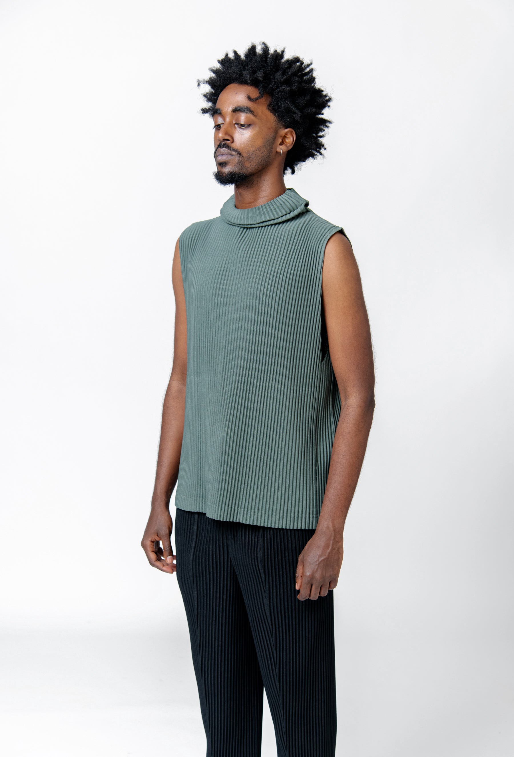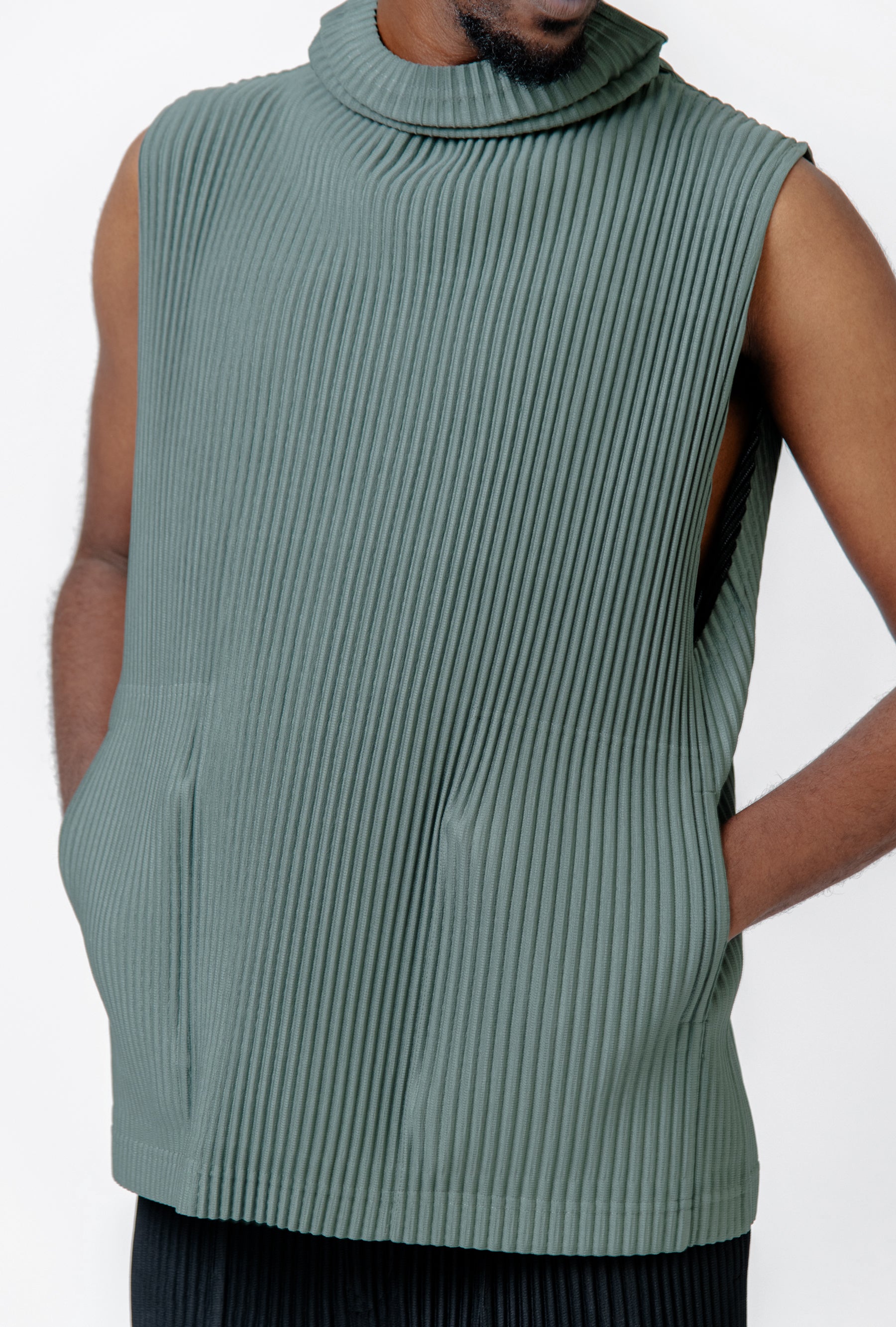 - Sleeveless Issey Miyake Homme Plissé Vest in Dark Green
