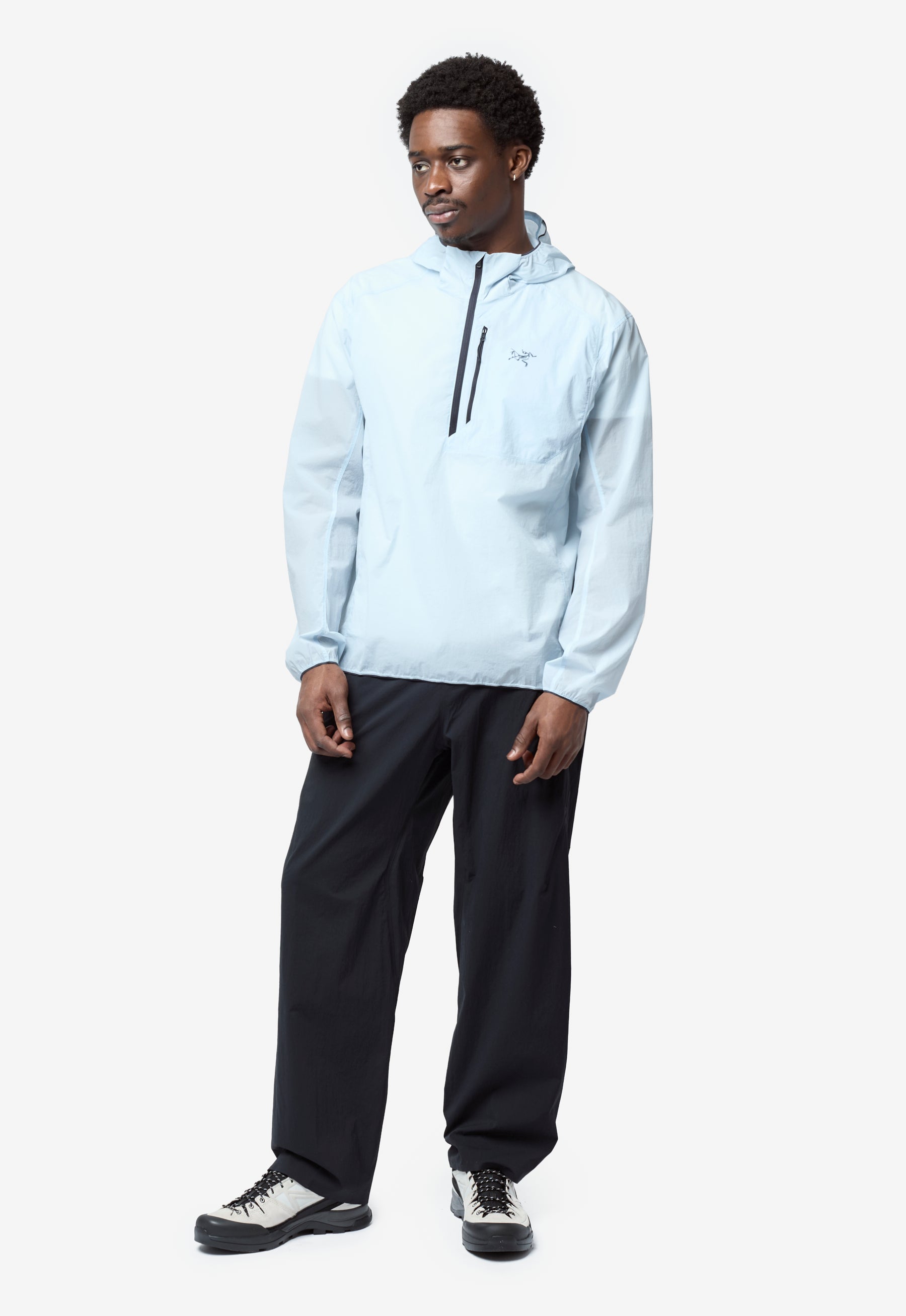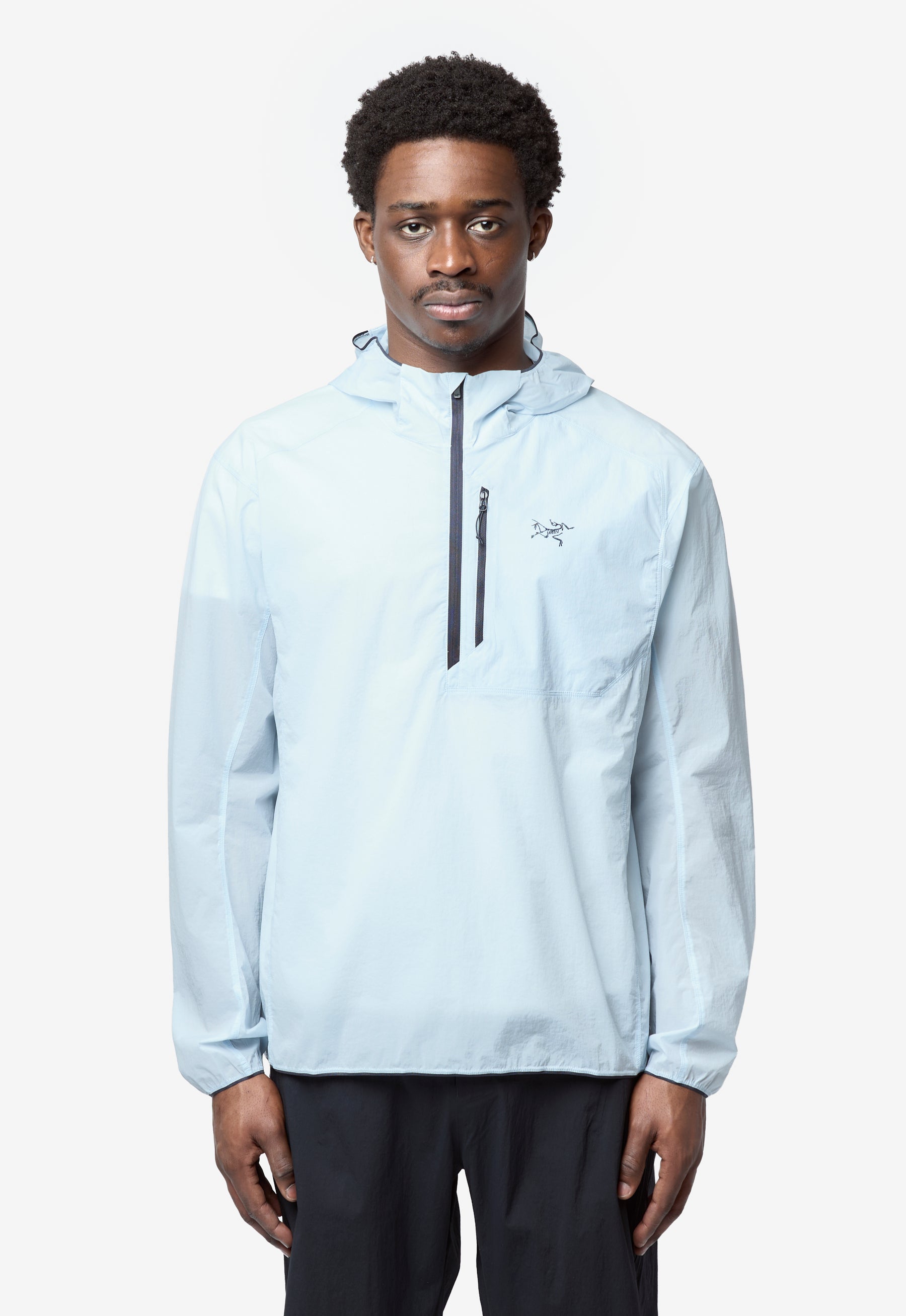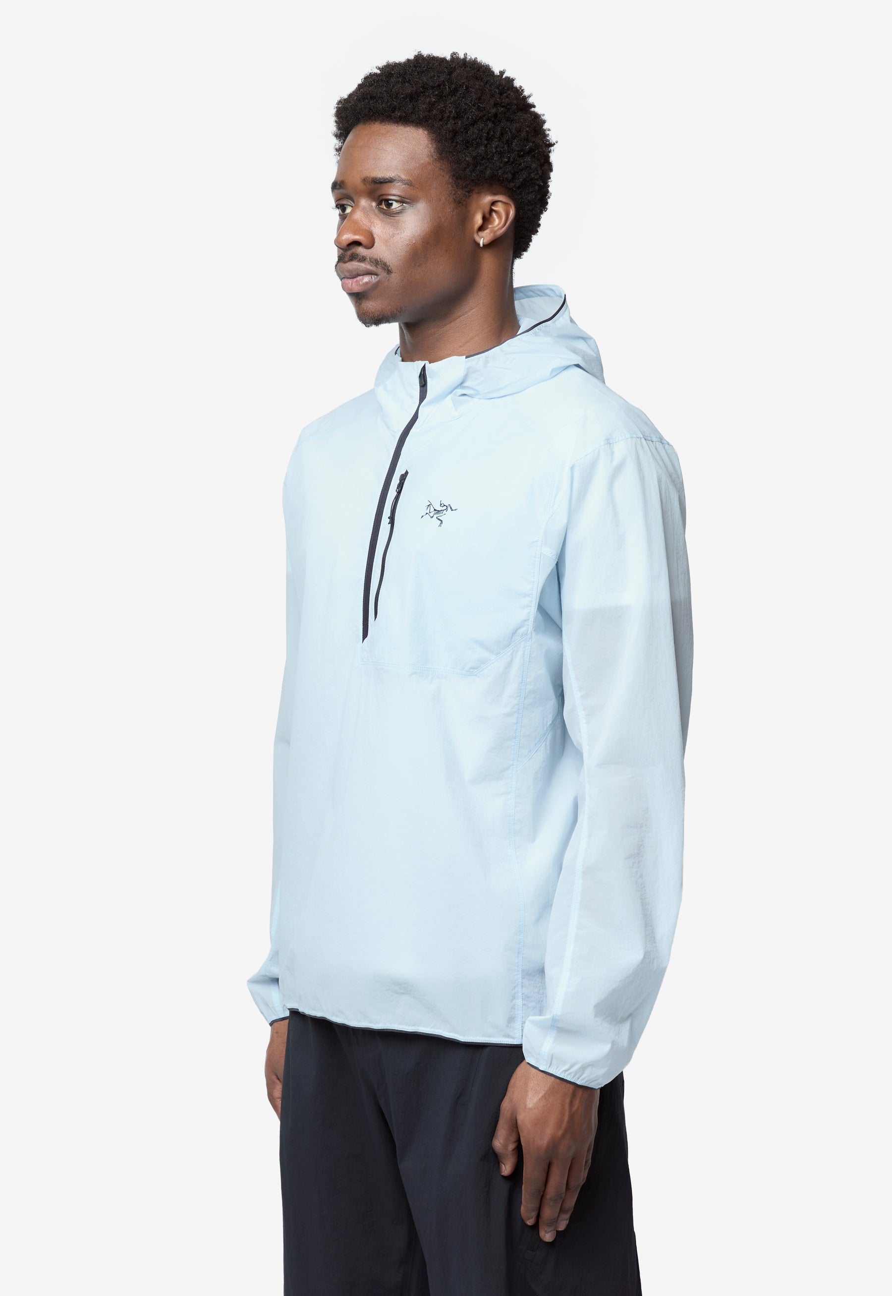 - Long sleeve Arc’teryx lightweight nylon jacket in Alpine Blue