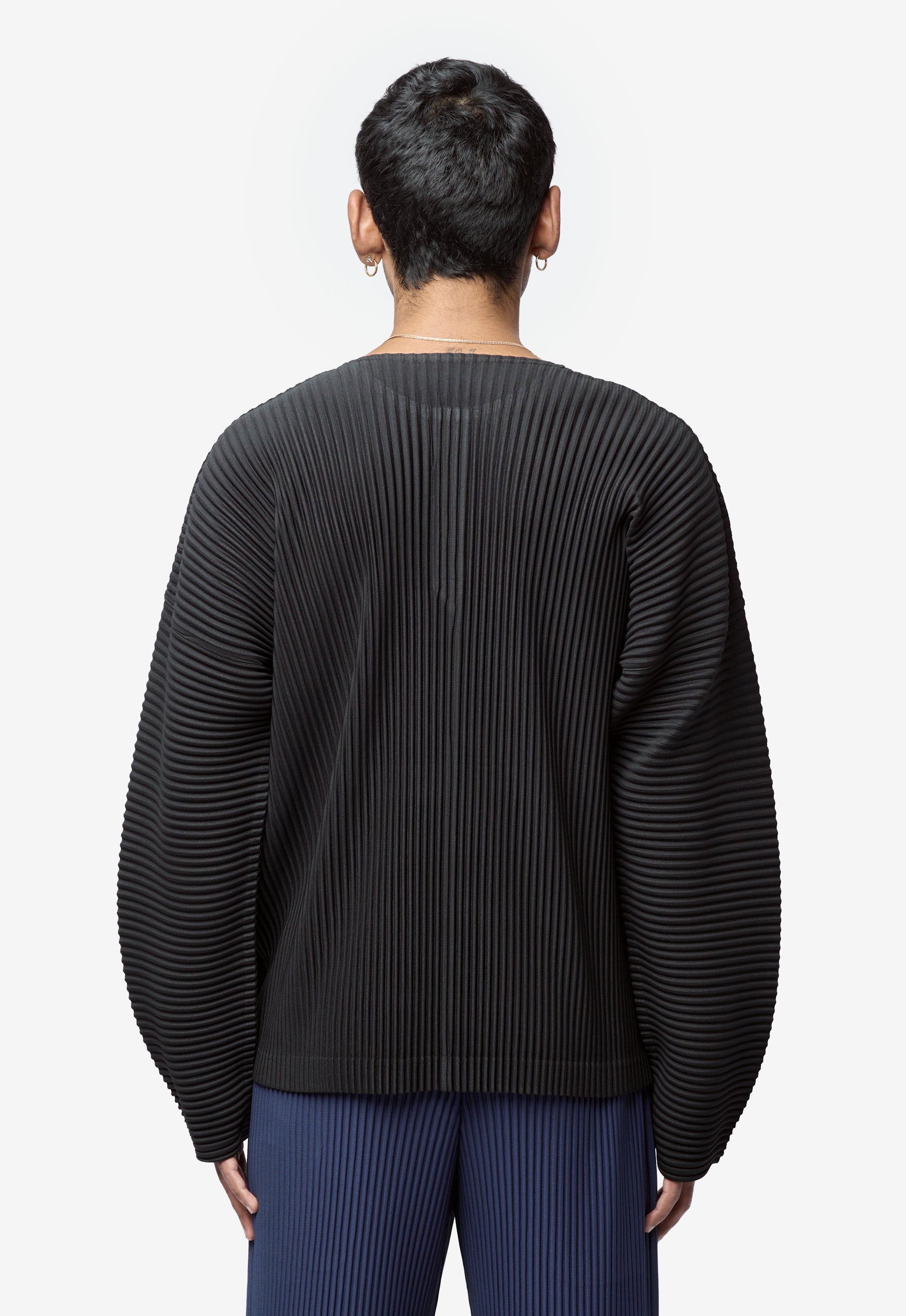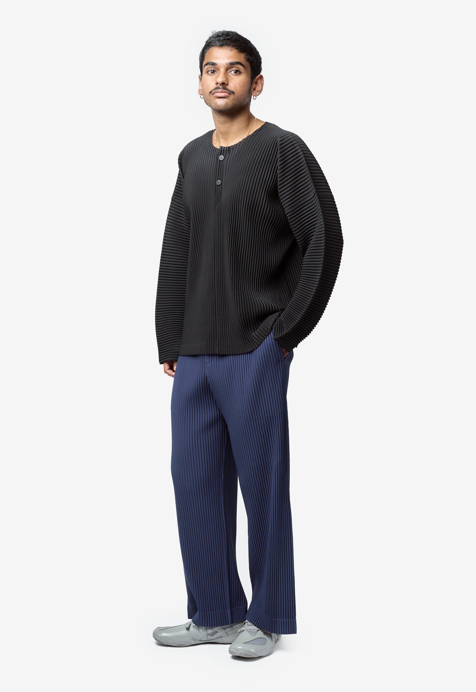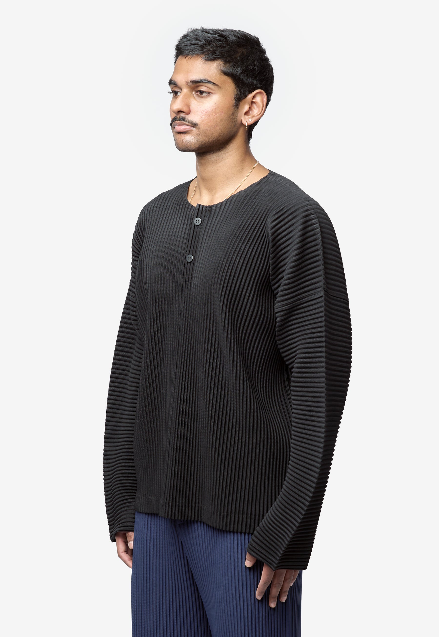 - Long sleeve Homme Plissé Issey Miyake pleated henley shirt in Black