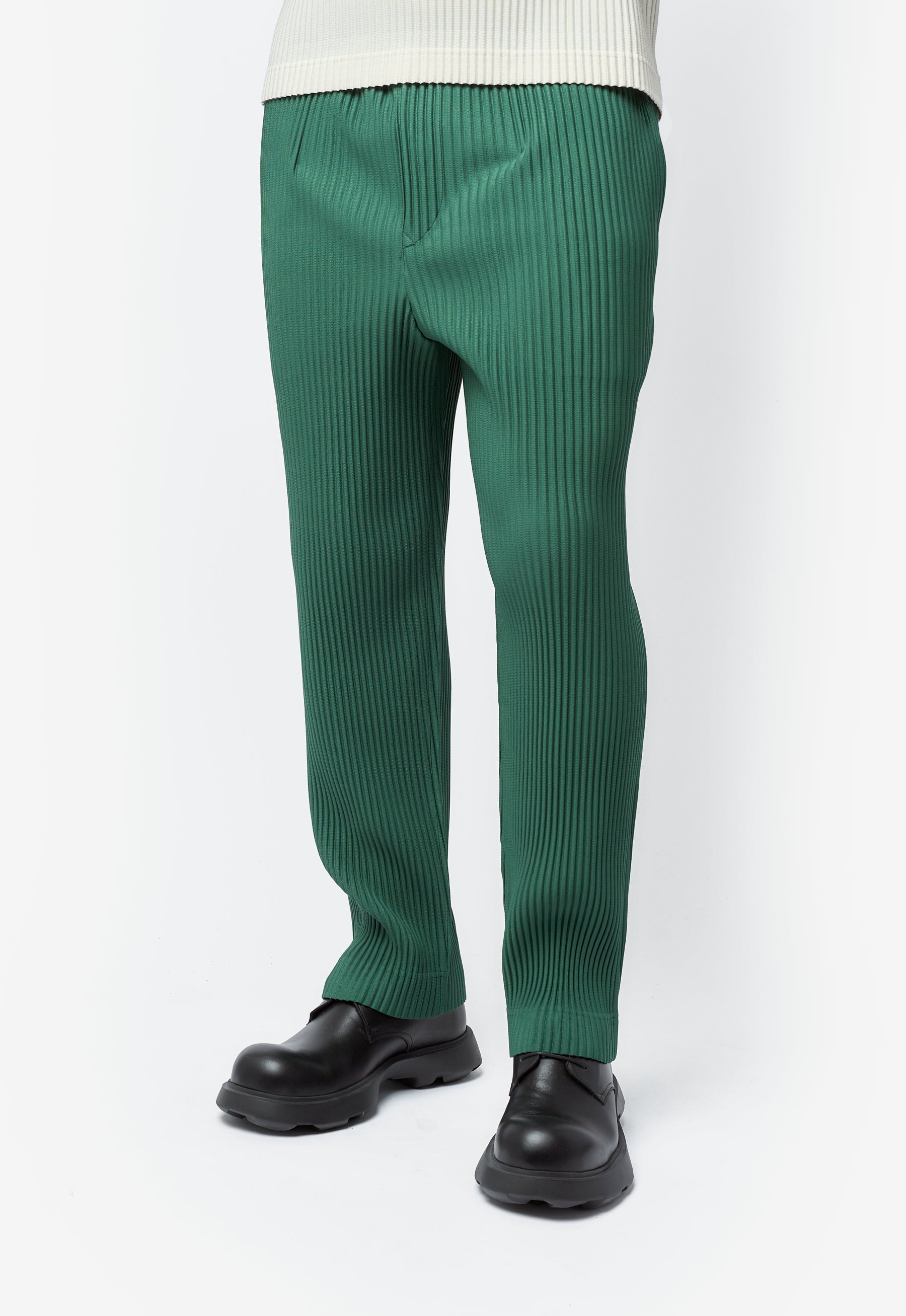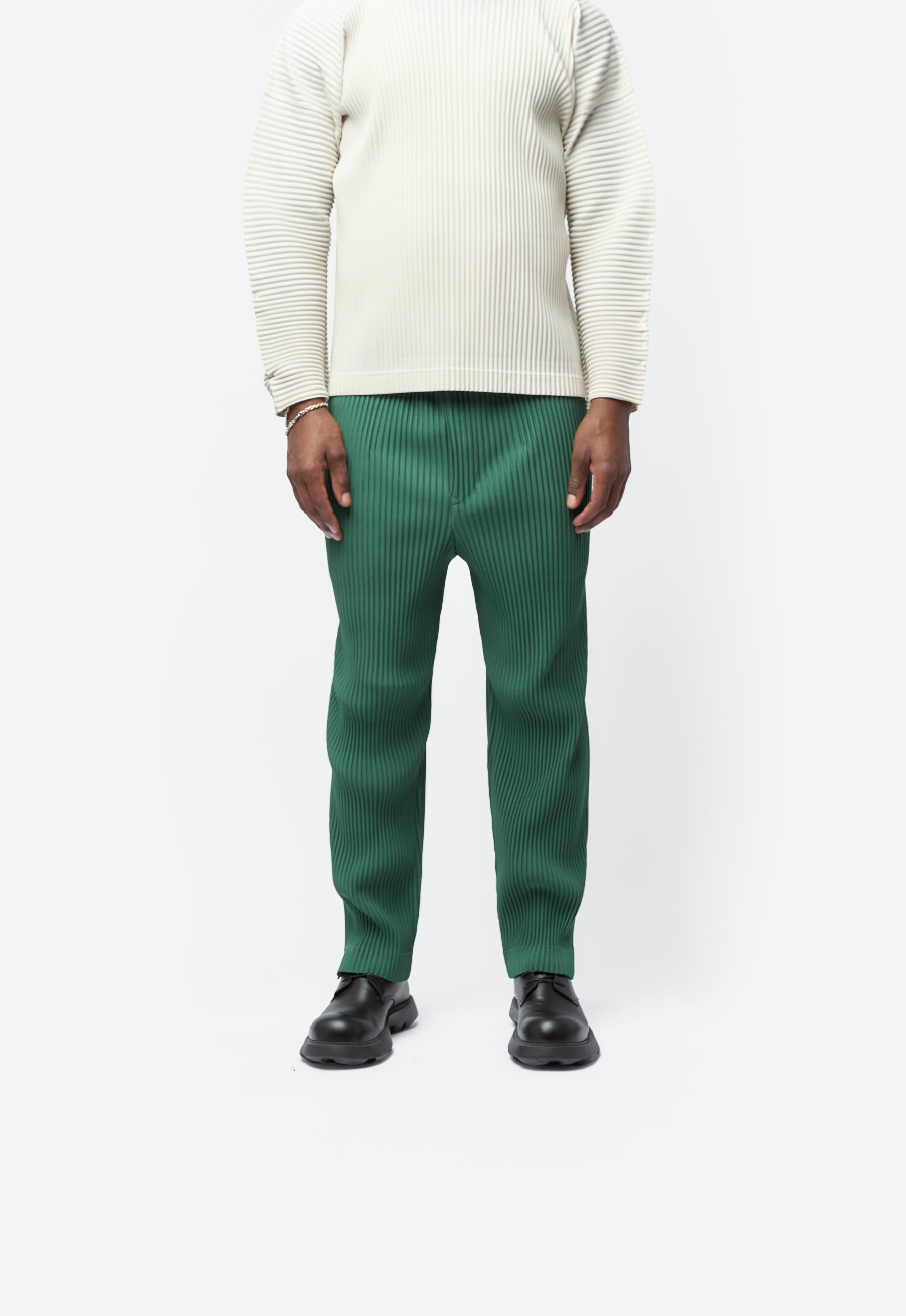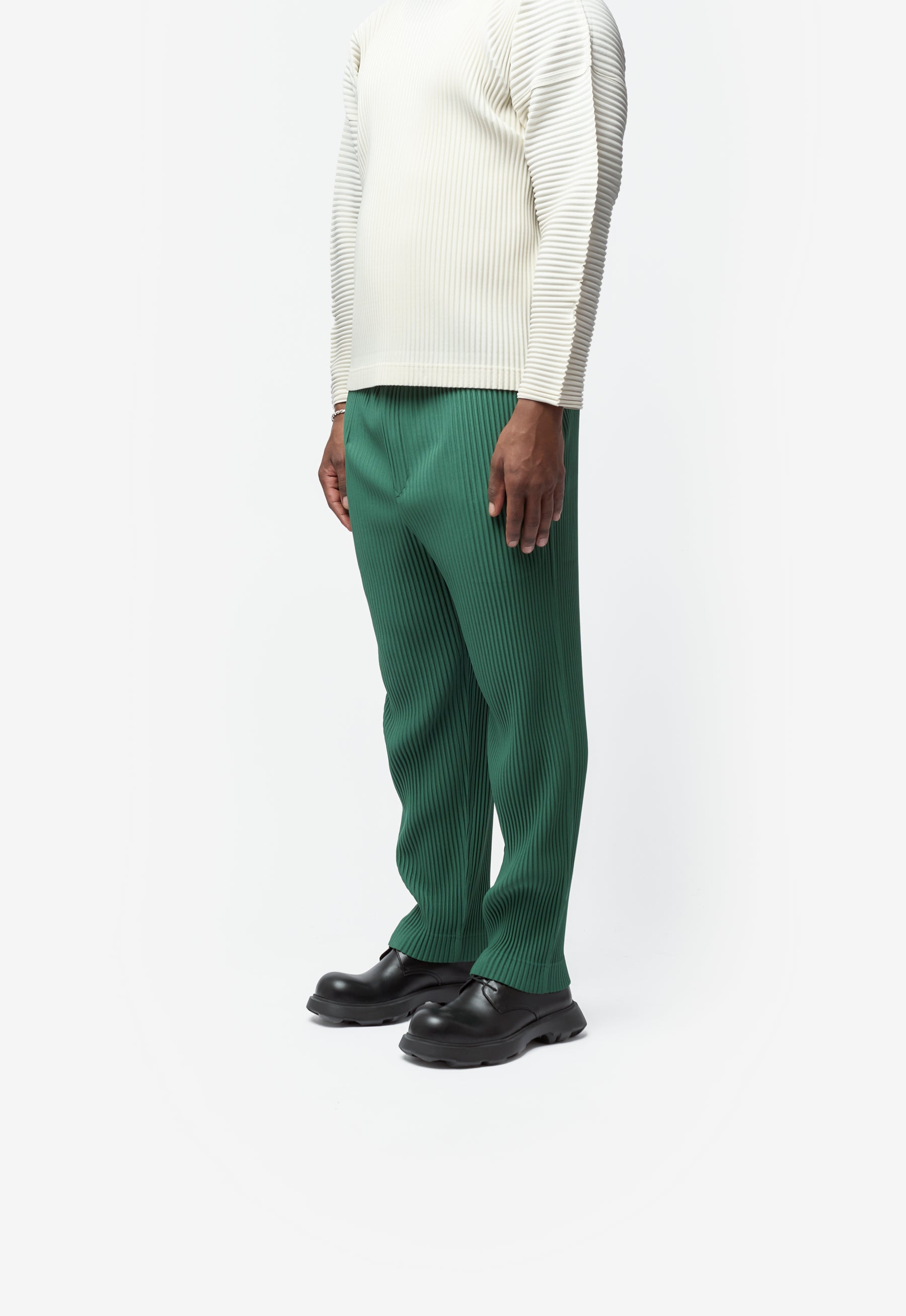 - Full length Homme Plissé Issey Miyake pleated trousers in Celadon Green