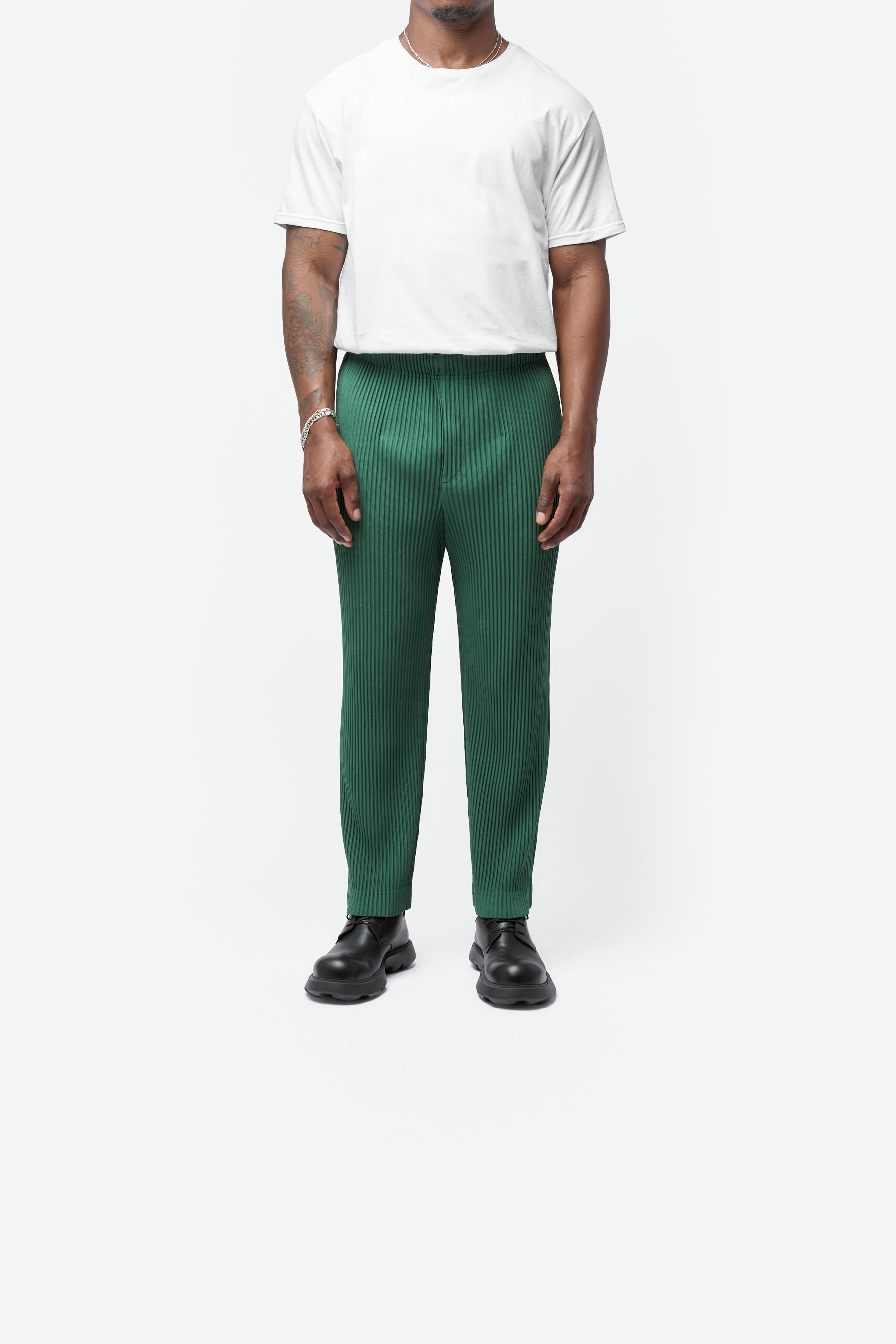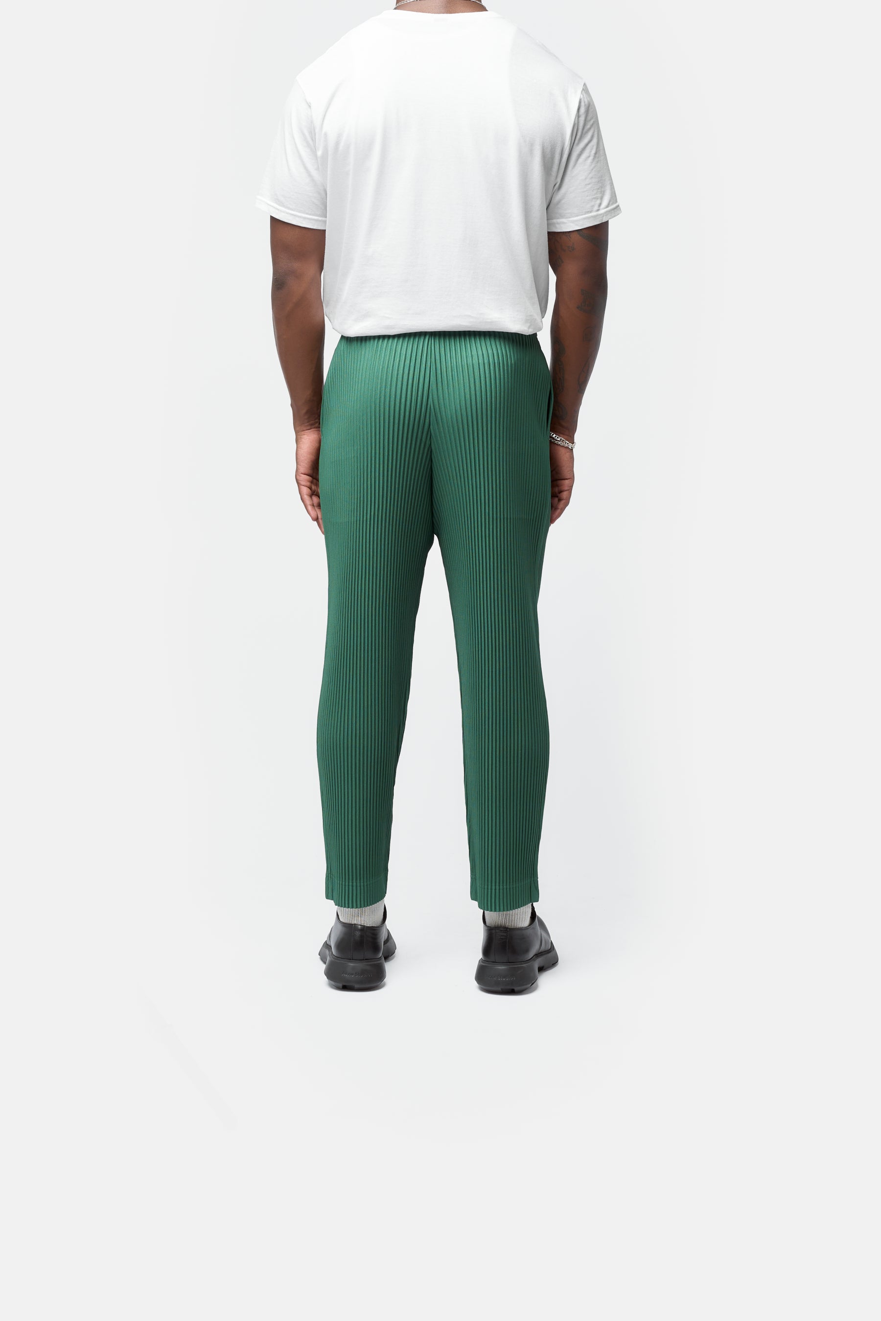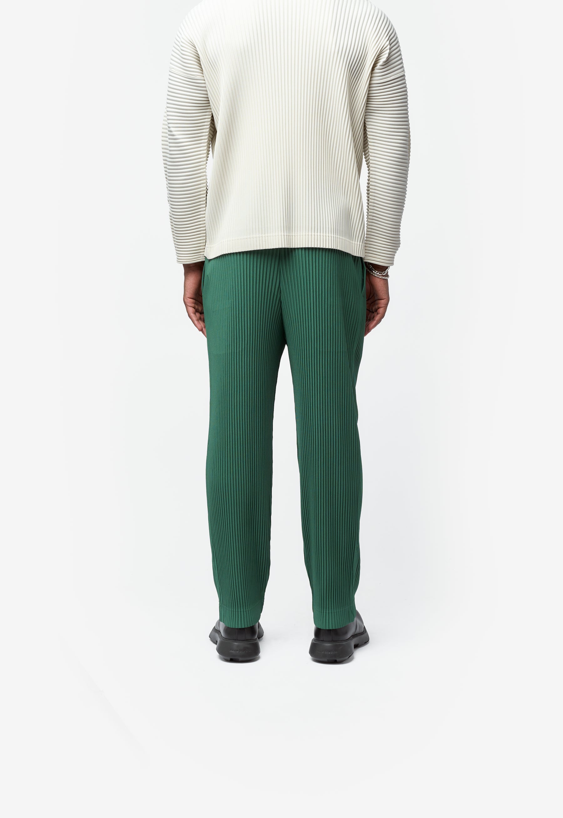- Full length Homme Plissé Issey Miyake pleated trousers in Celadon Green