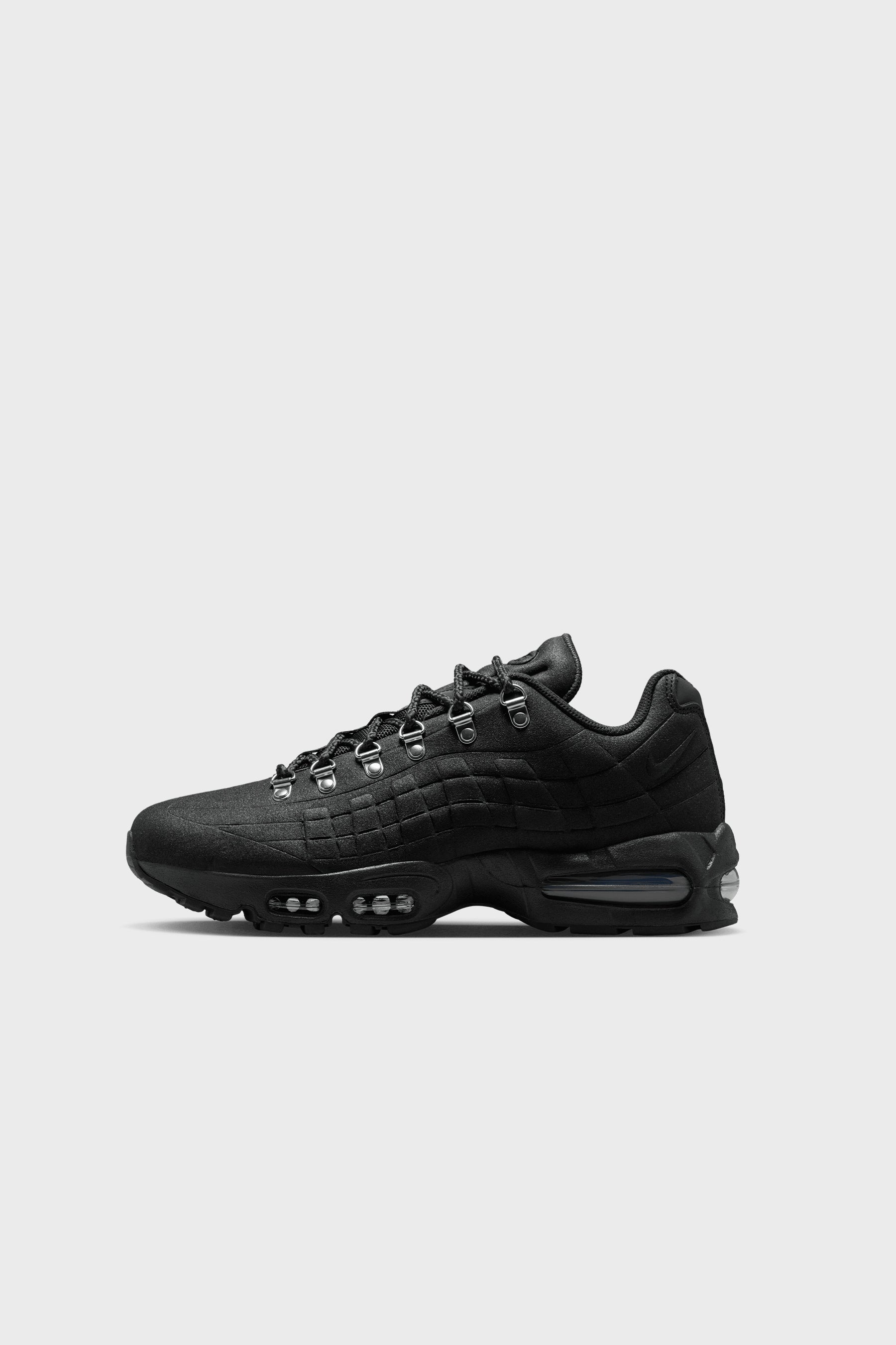 The Nike Air Max 95 Big Bubble I-95 fuses trail-inspired durability with Air Max heritage, featuring a weather-resistant molded upper, metallic hiking hooks, laser-etched detailing, and oversized Big Bubble Air cushioning for rugged utility with iconic comfort.