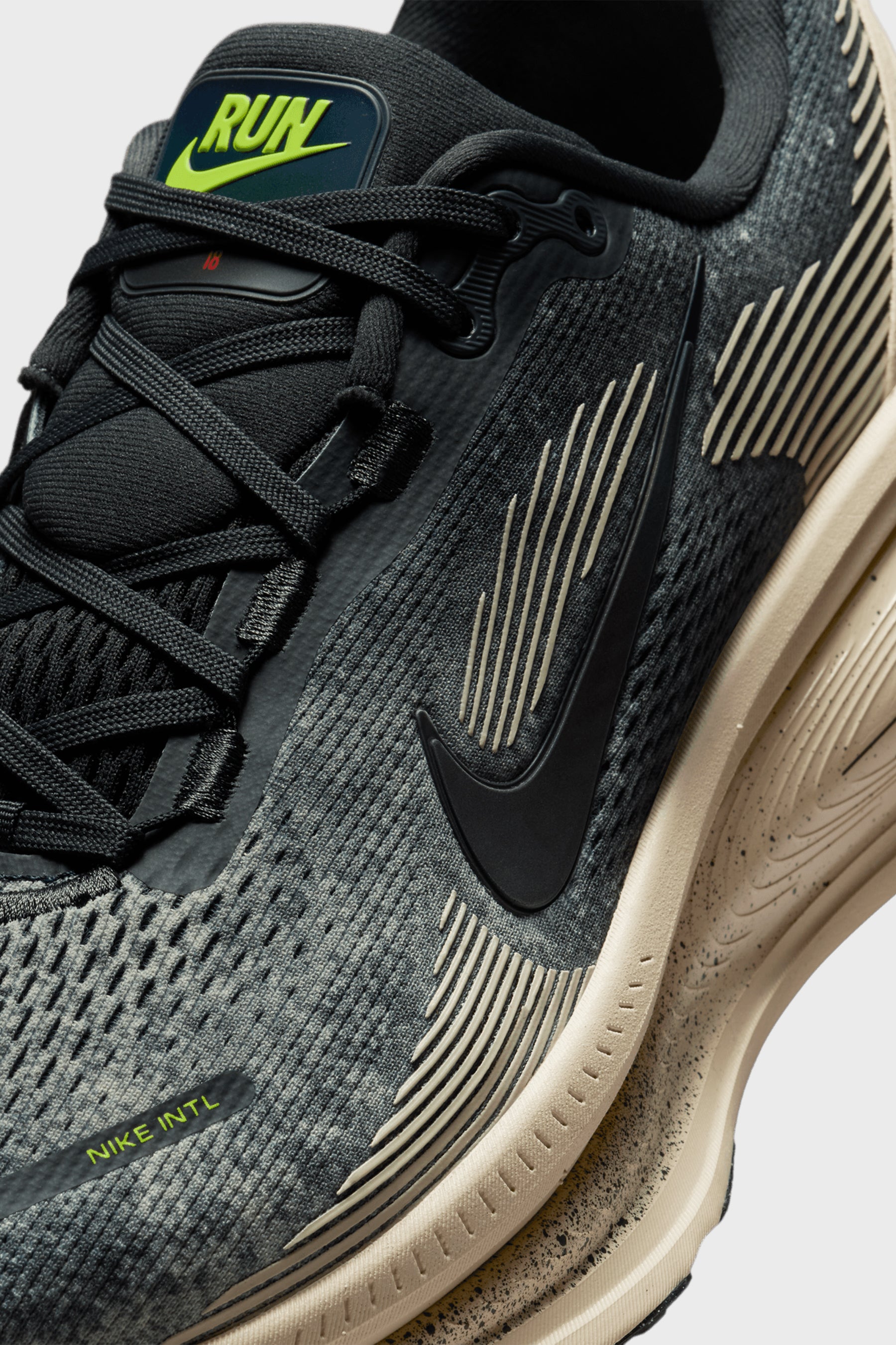 - Low-top Nike running sneakers in Oatmeal, Black, Anthracite and Volt