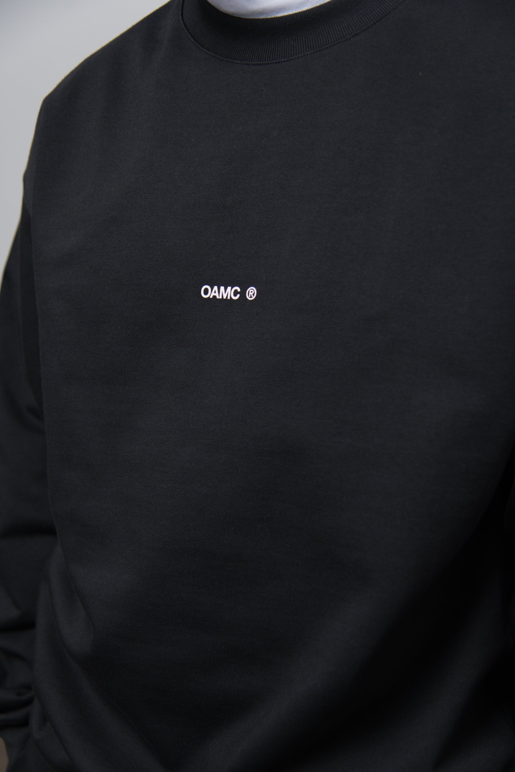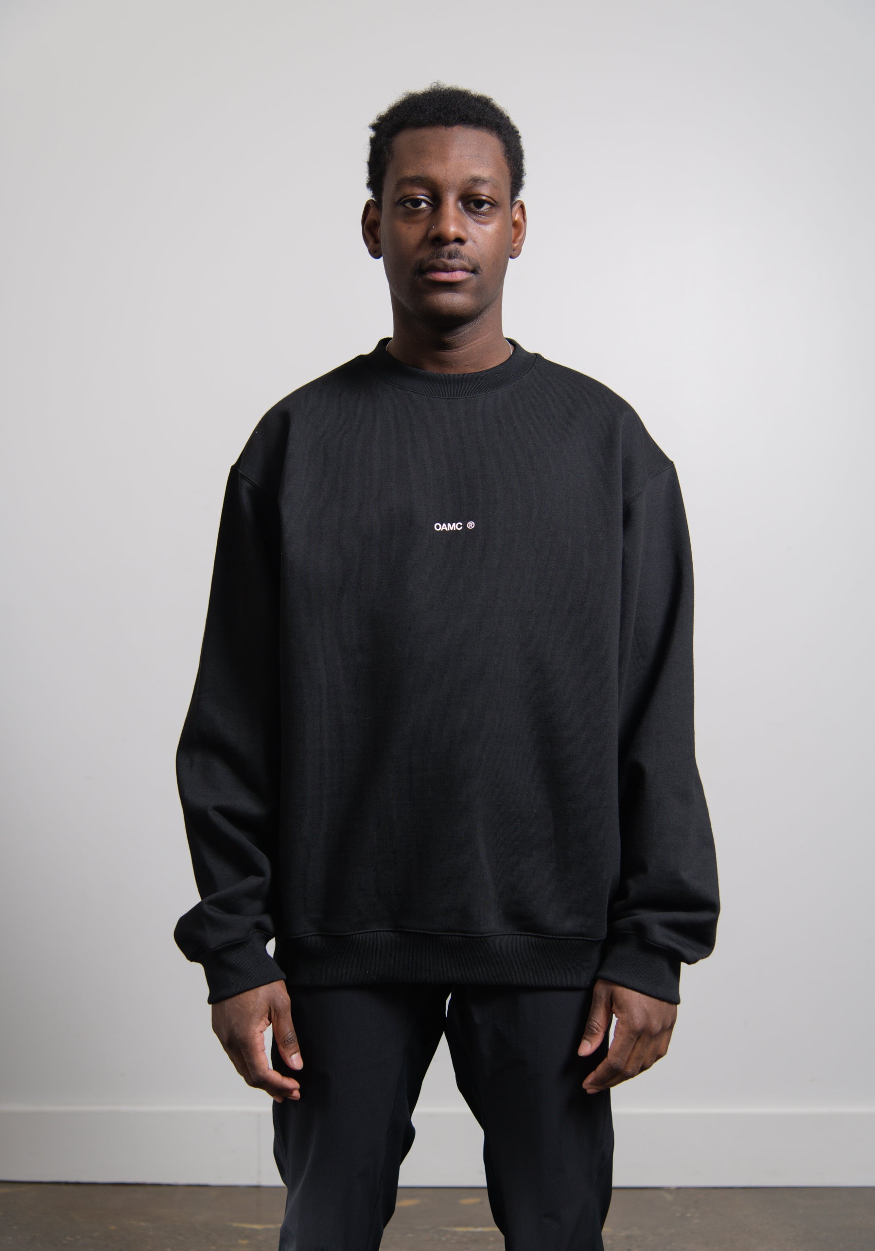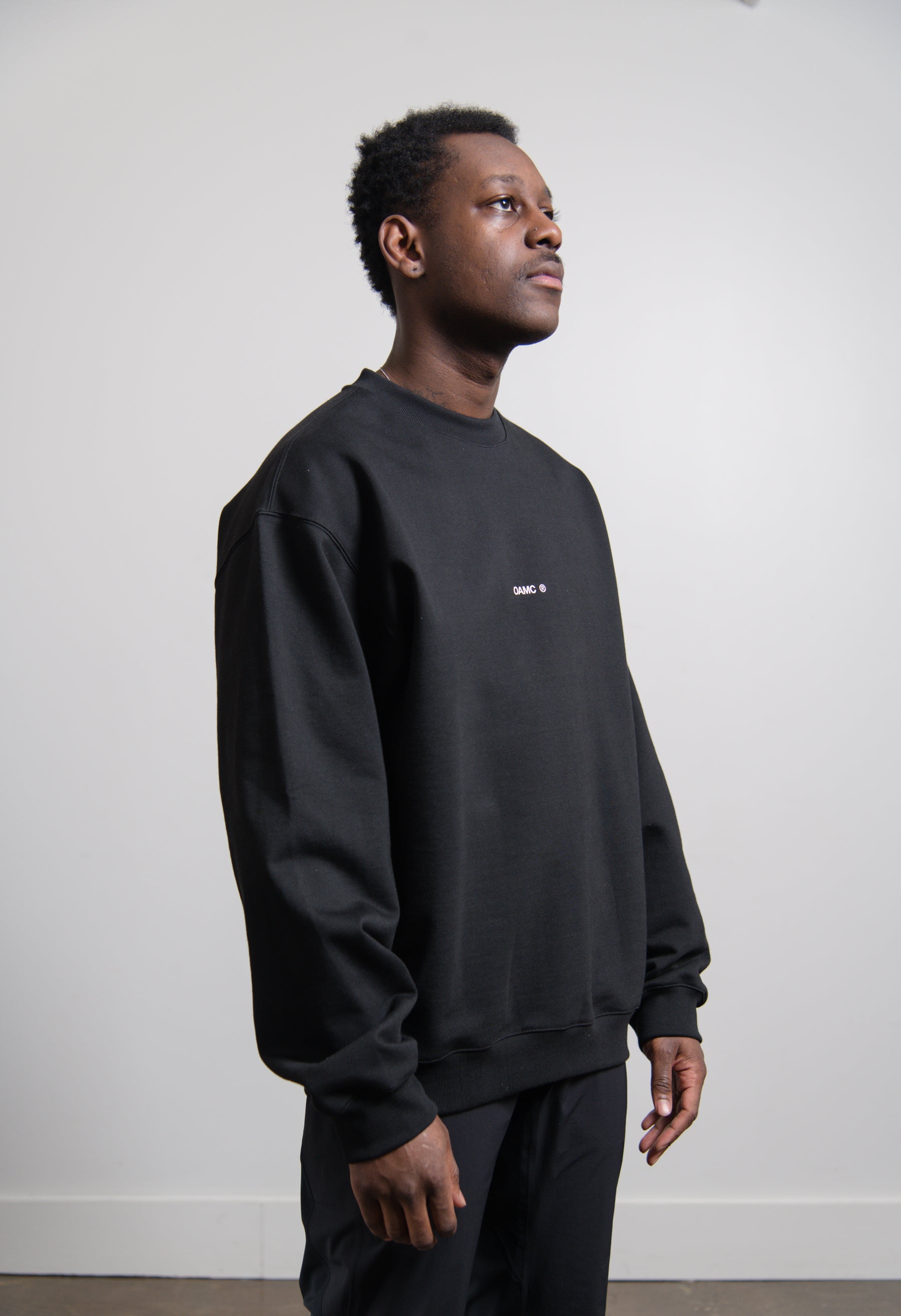 - Long sleeve unbrushed Italian cotton crewneck sweater in Black