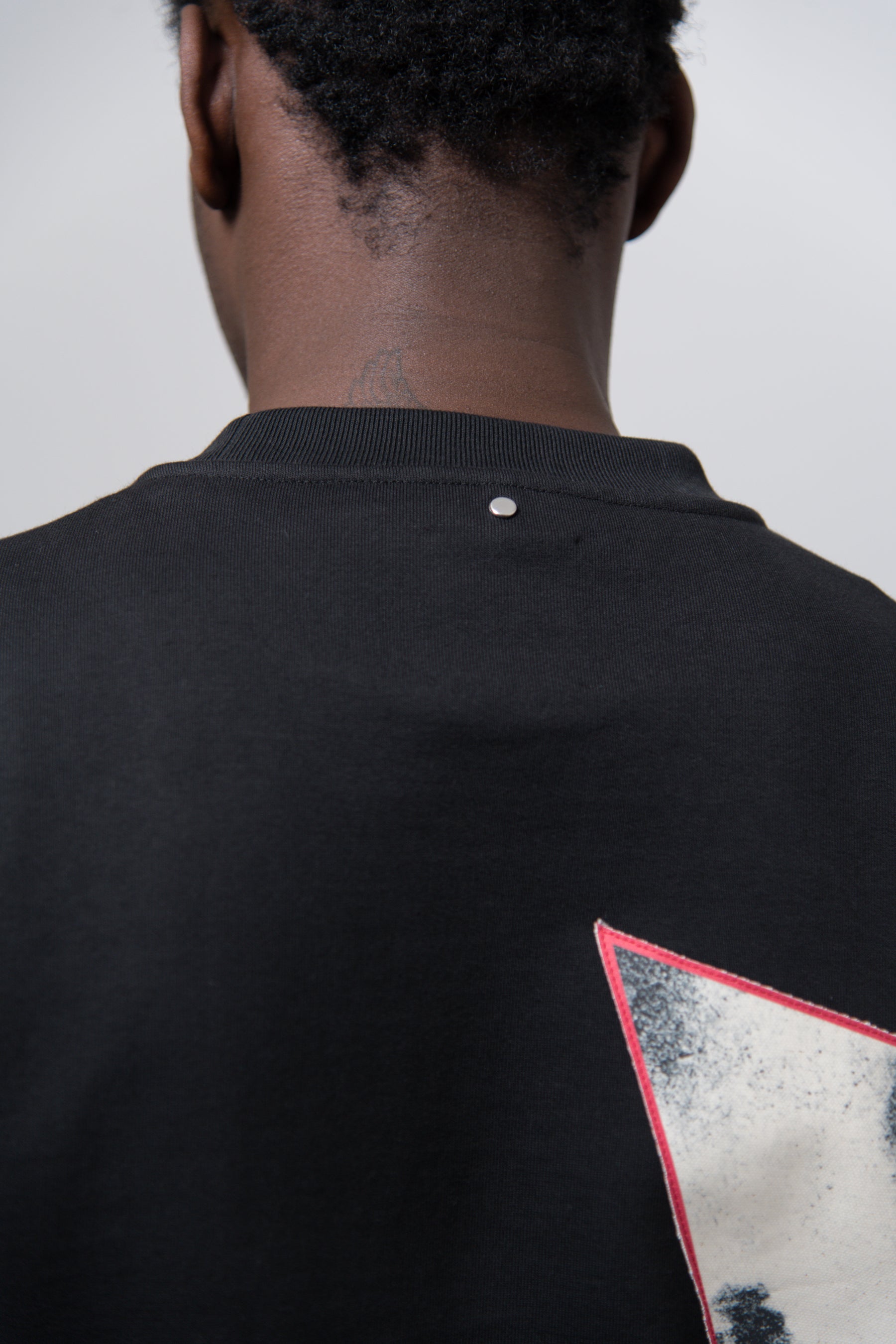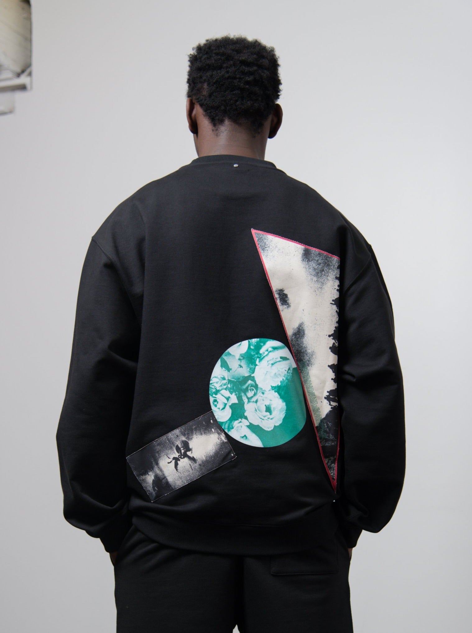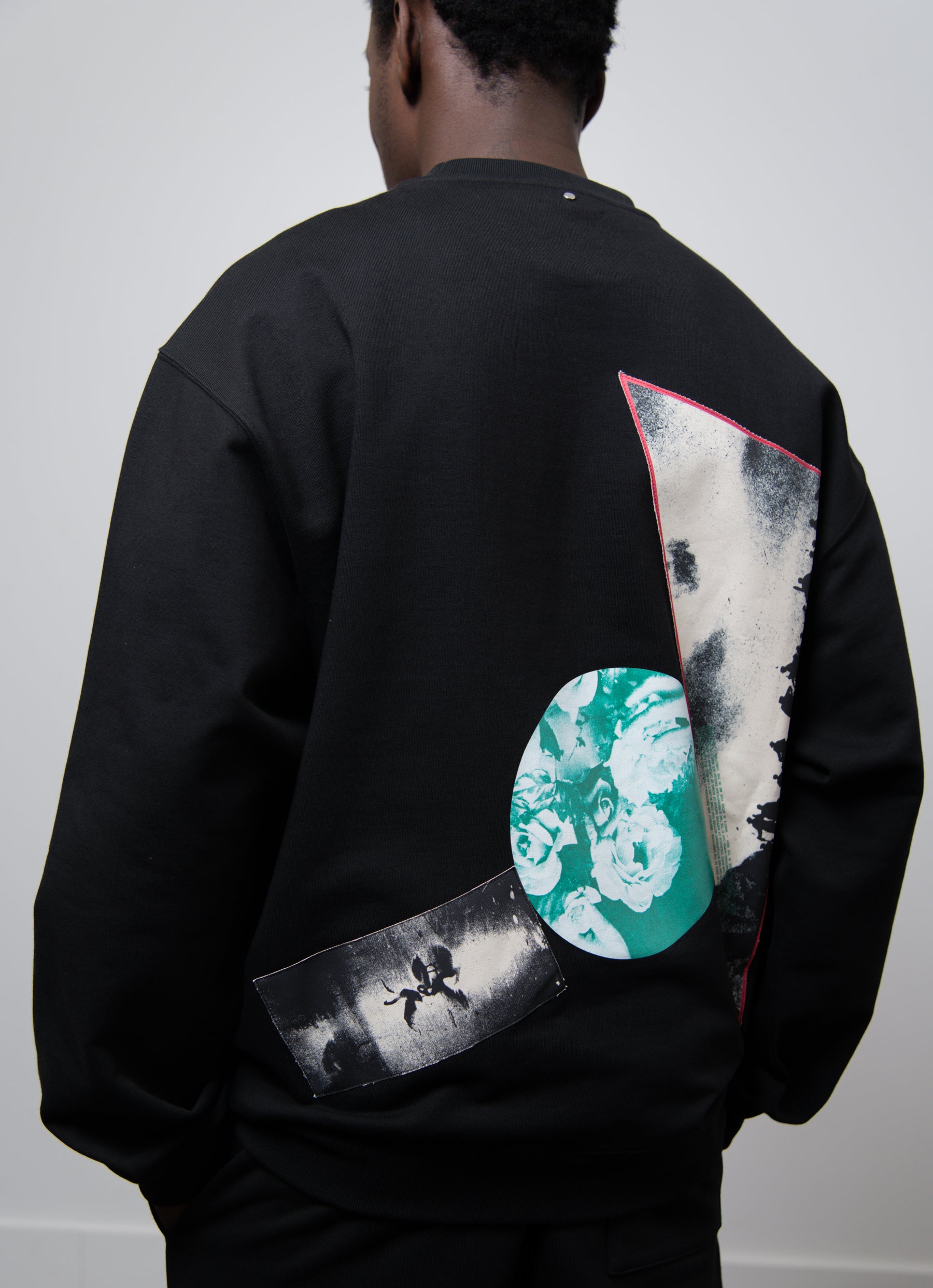- Long sleeve unbrushed Italian cotton crewneck sweater in Black