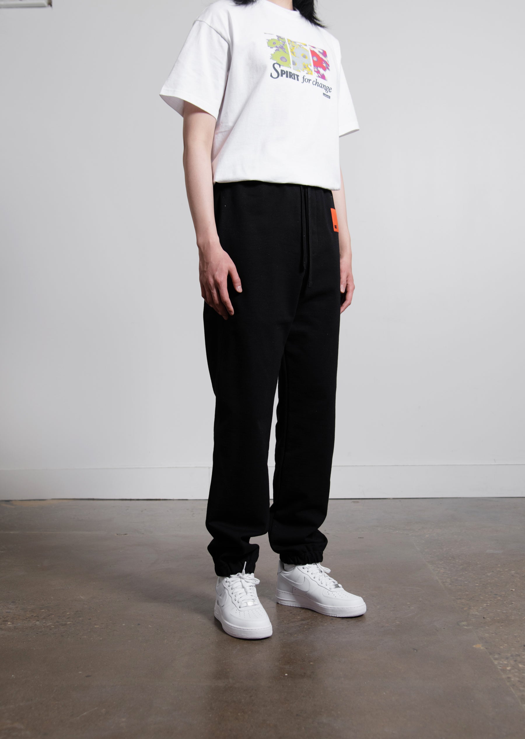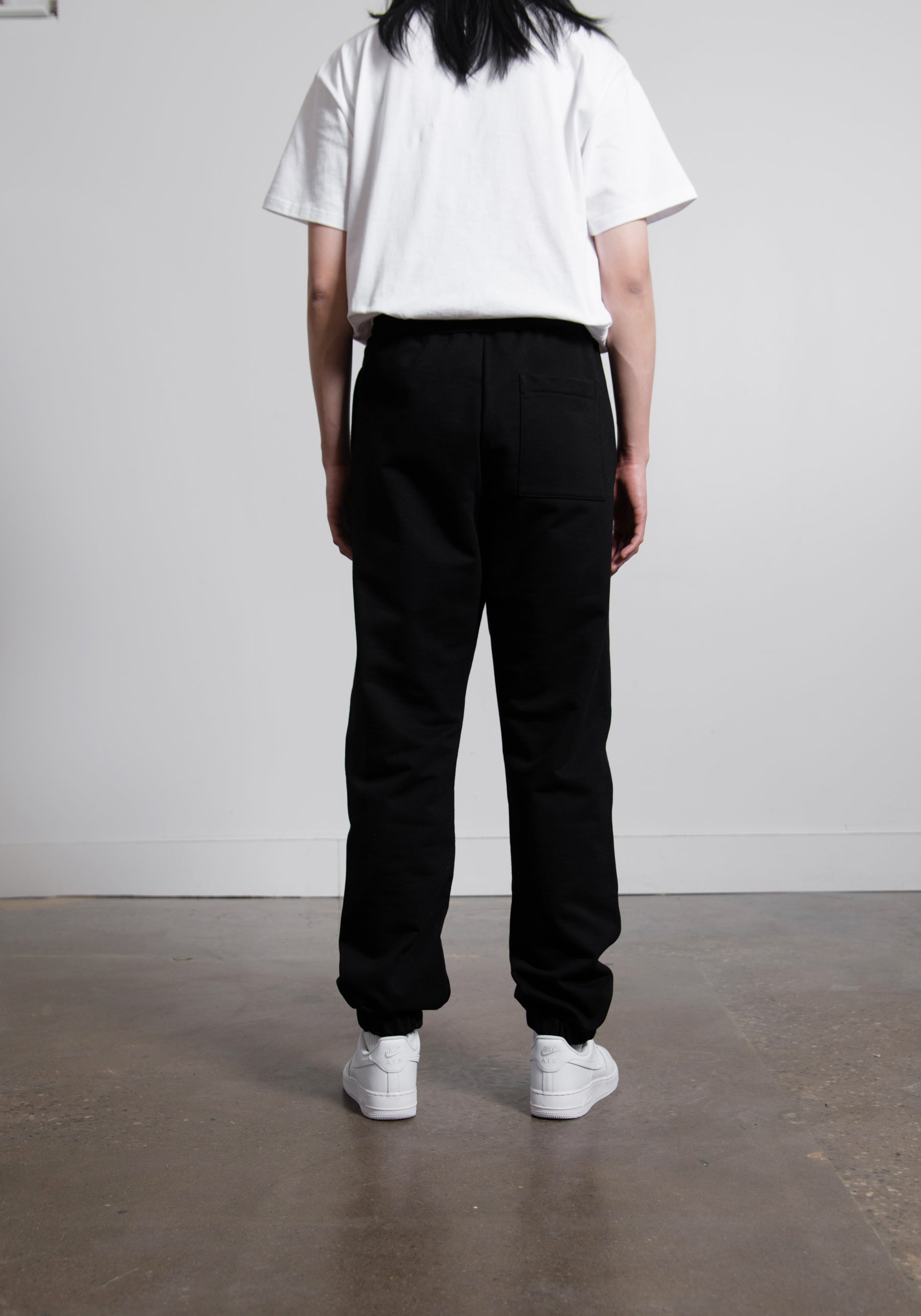 - Full length brushed Italian cotton fleece sweatpants in Black