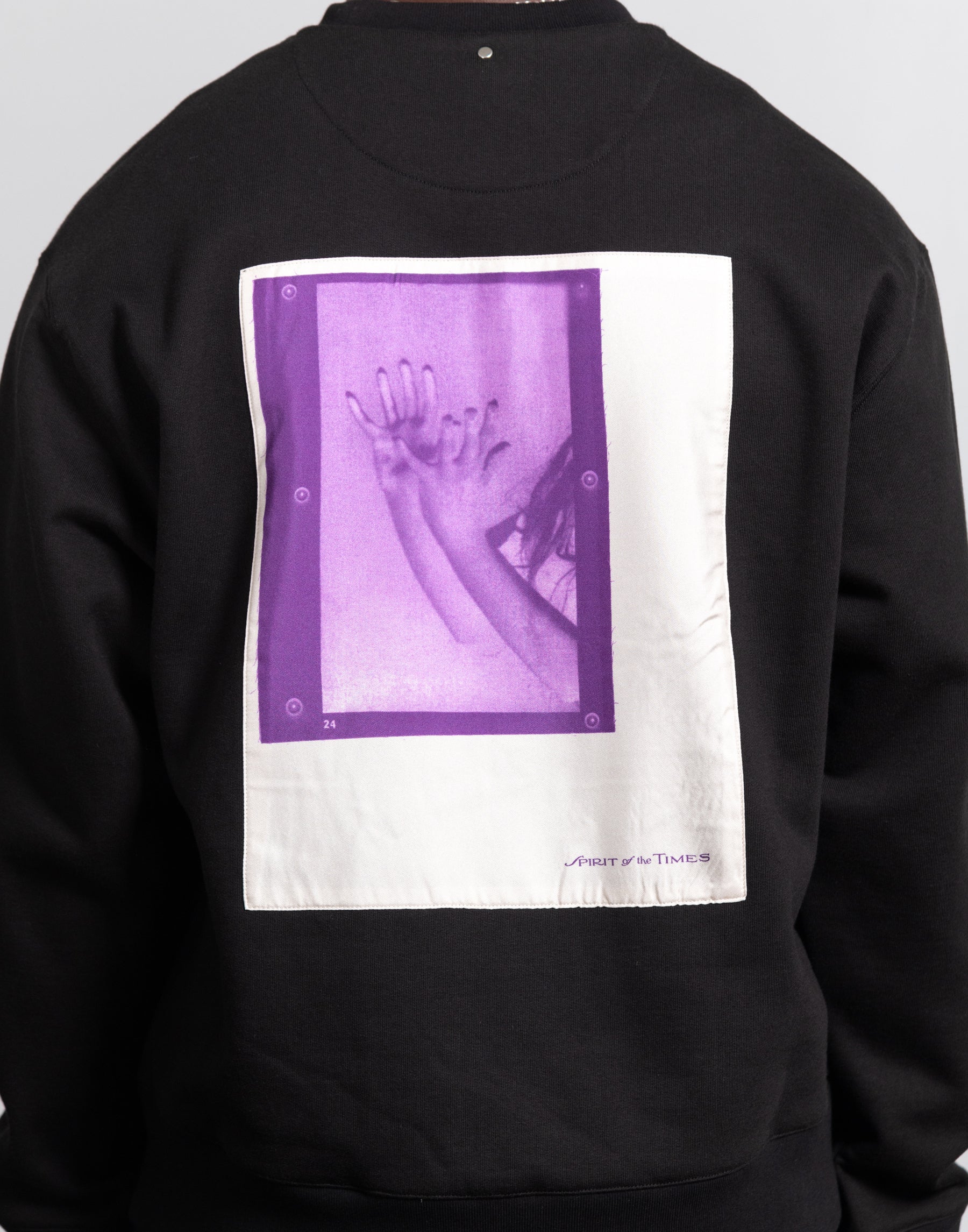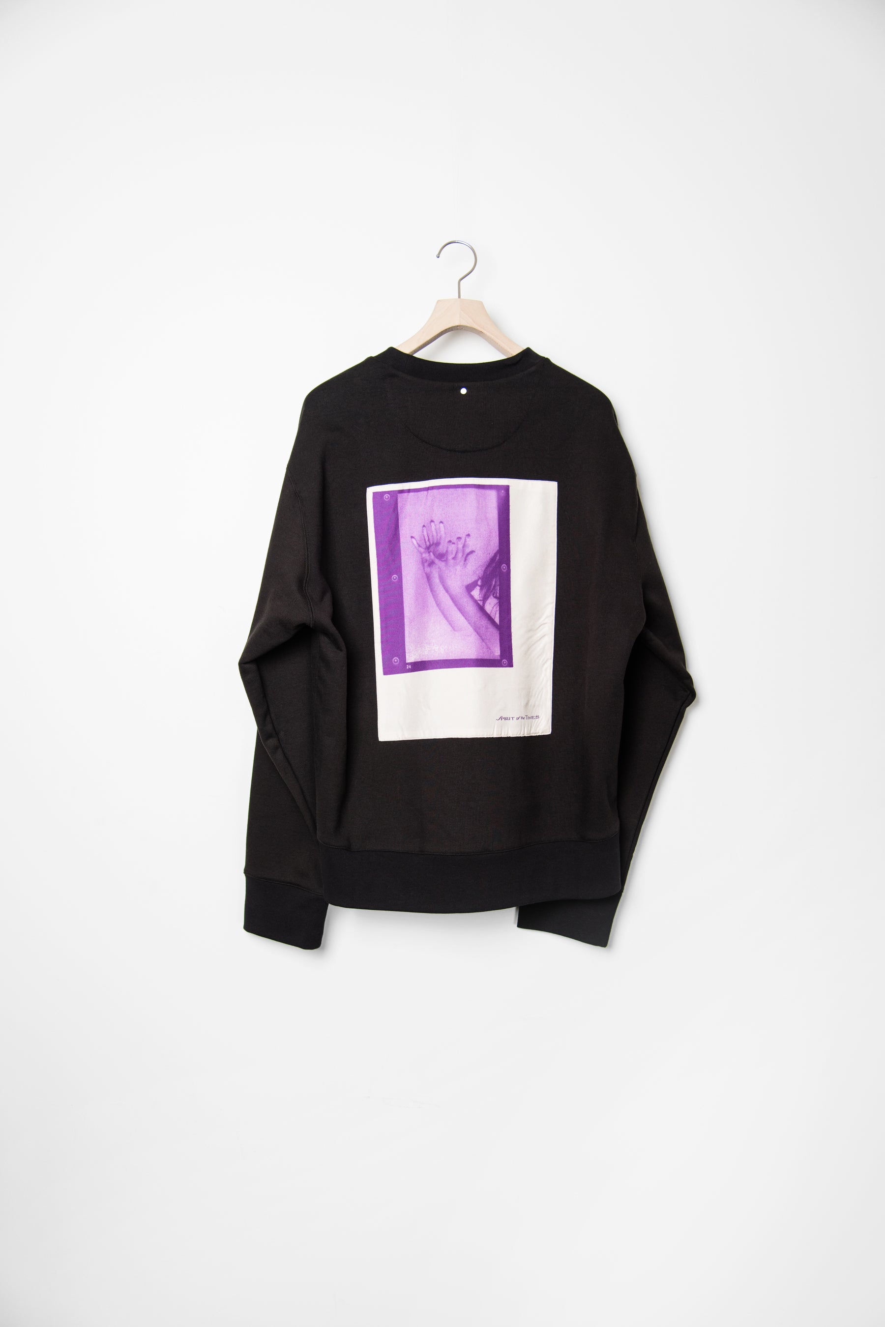 - Long sleeve unbrushed Italian cotton crewneck sweater in Black