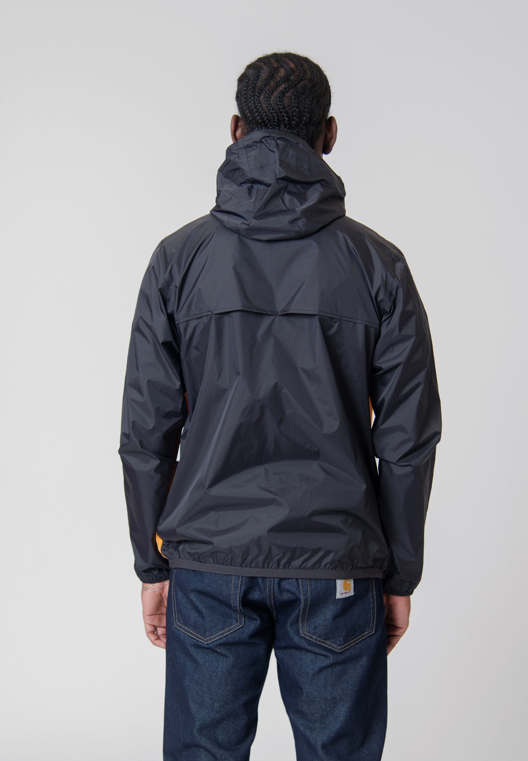 - Bungee drawcord at attached hood and hem for adjustability