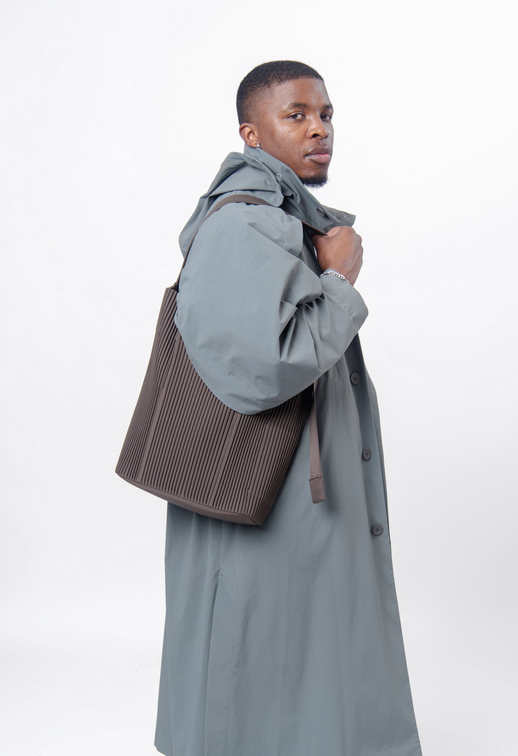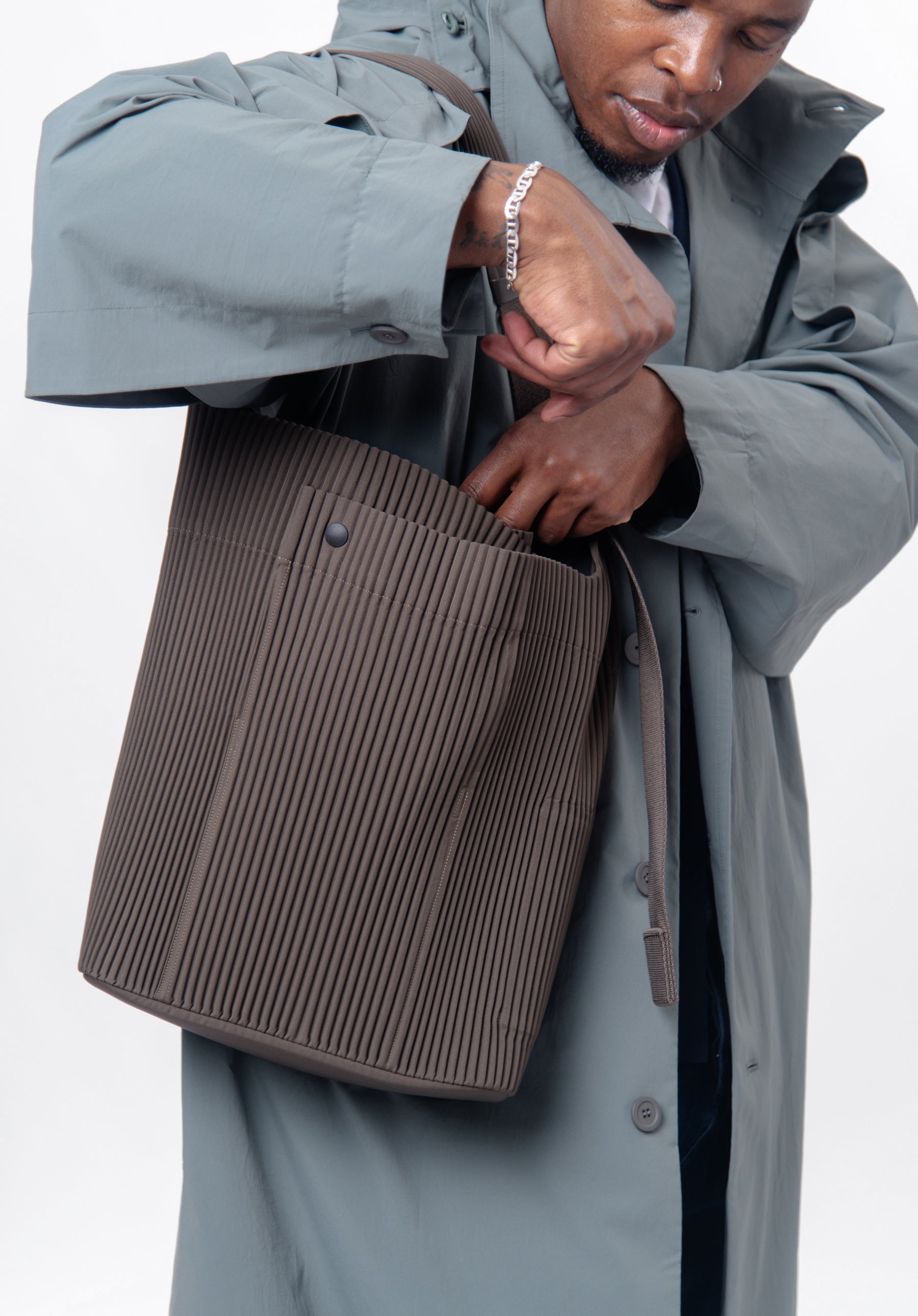 - Homme Plissé Issey Miyake pleated garment bag in Khaki