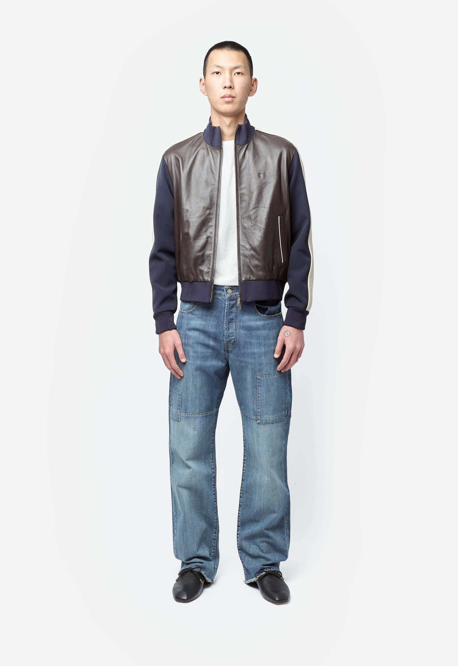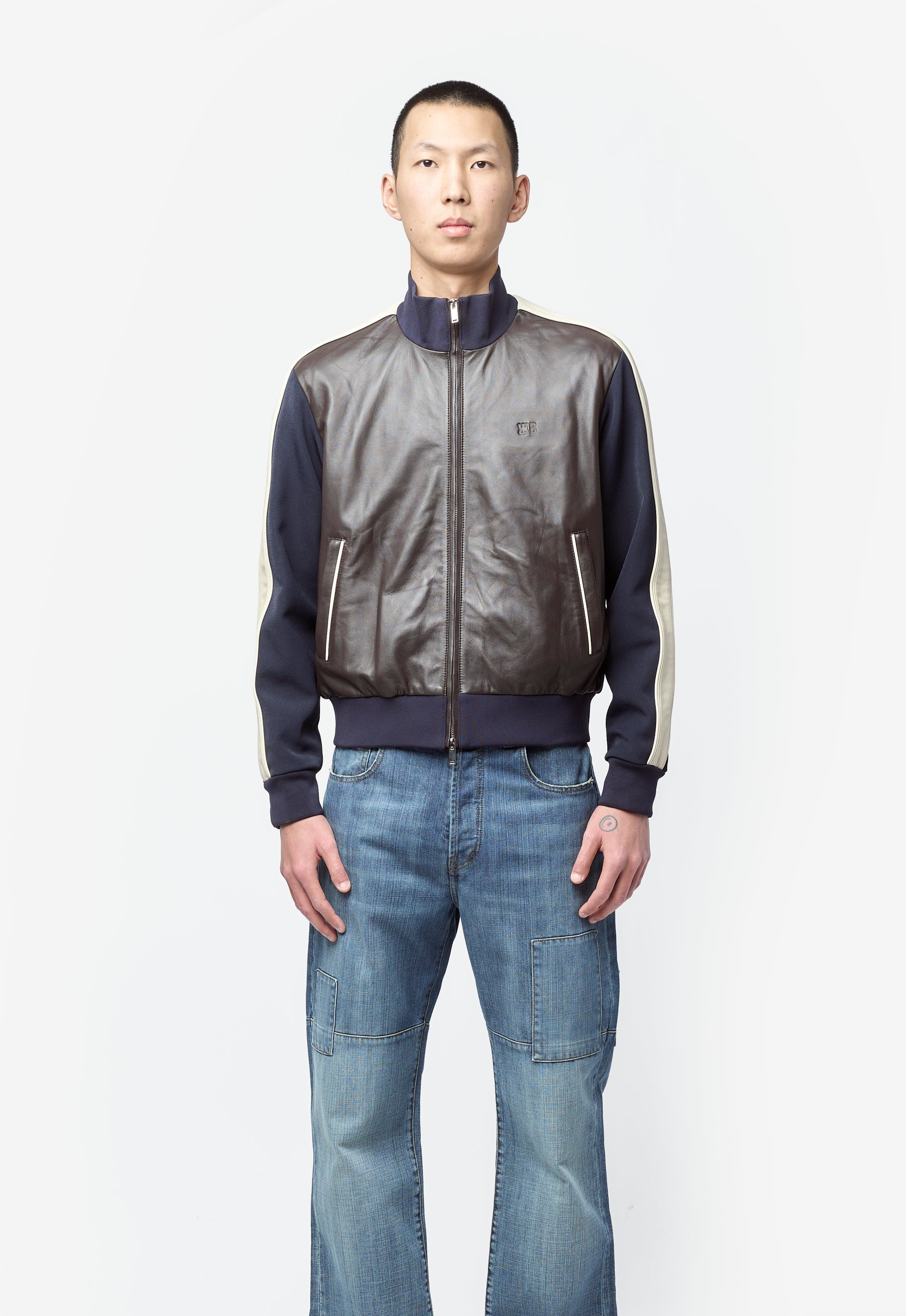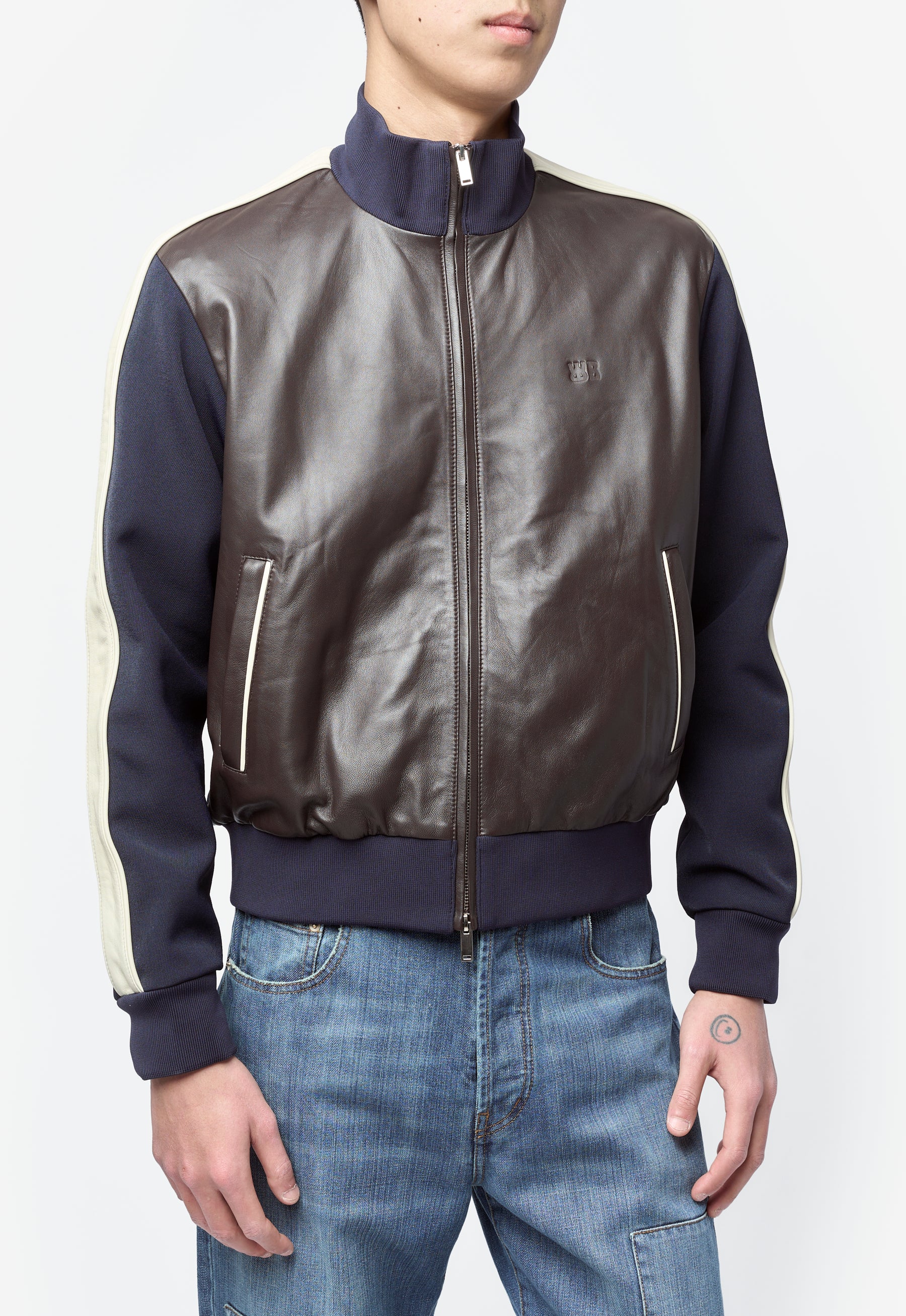 Path Leather Jacket Navy/Dark Brown/Ivory US26LE03-LE02-589