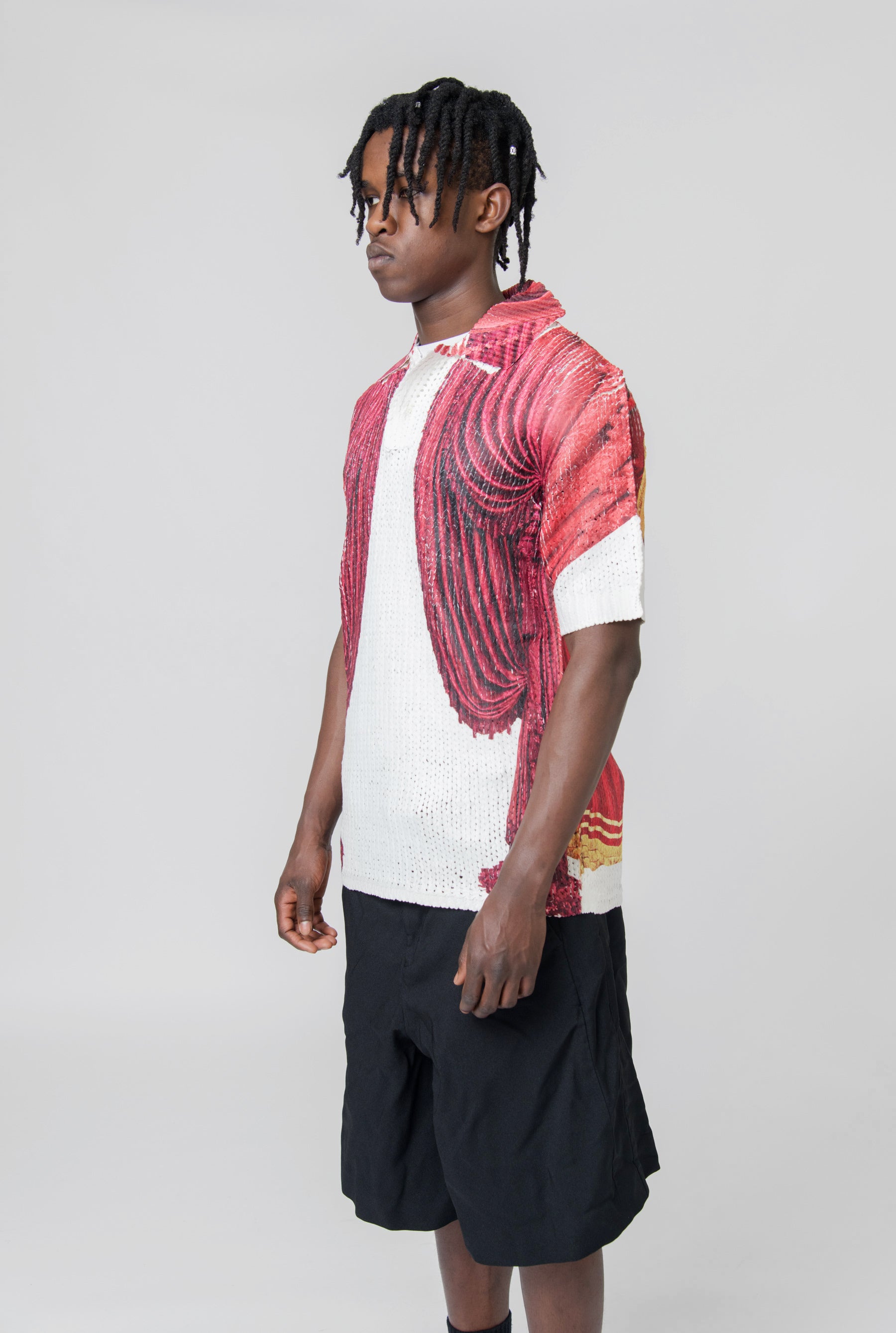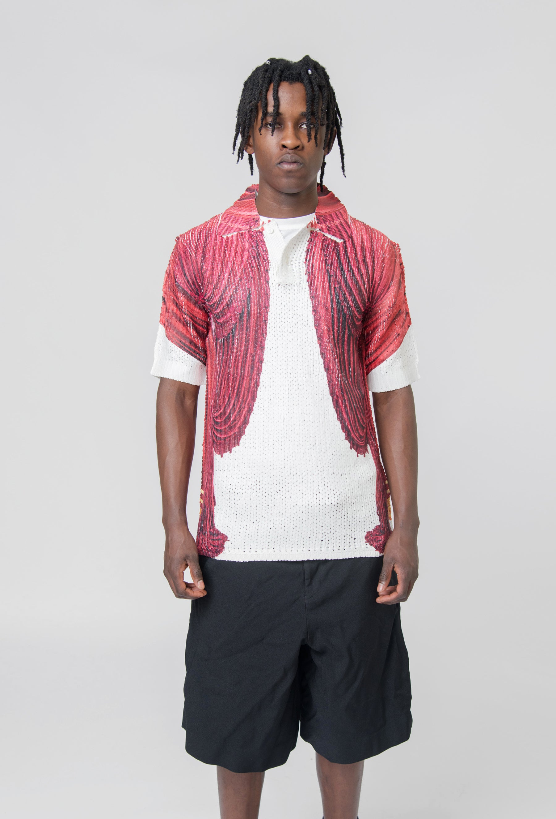 - Short sleeve Homme Plus jersey shirt in Red and White