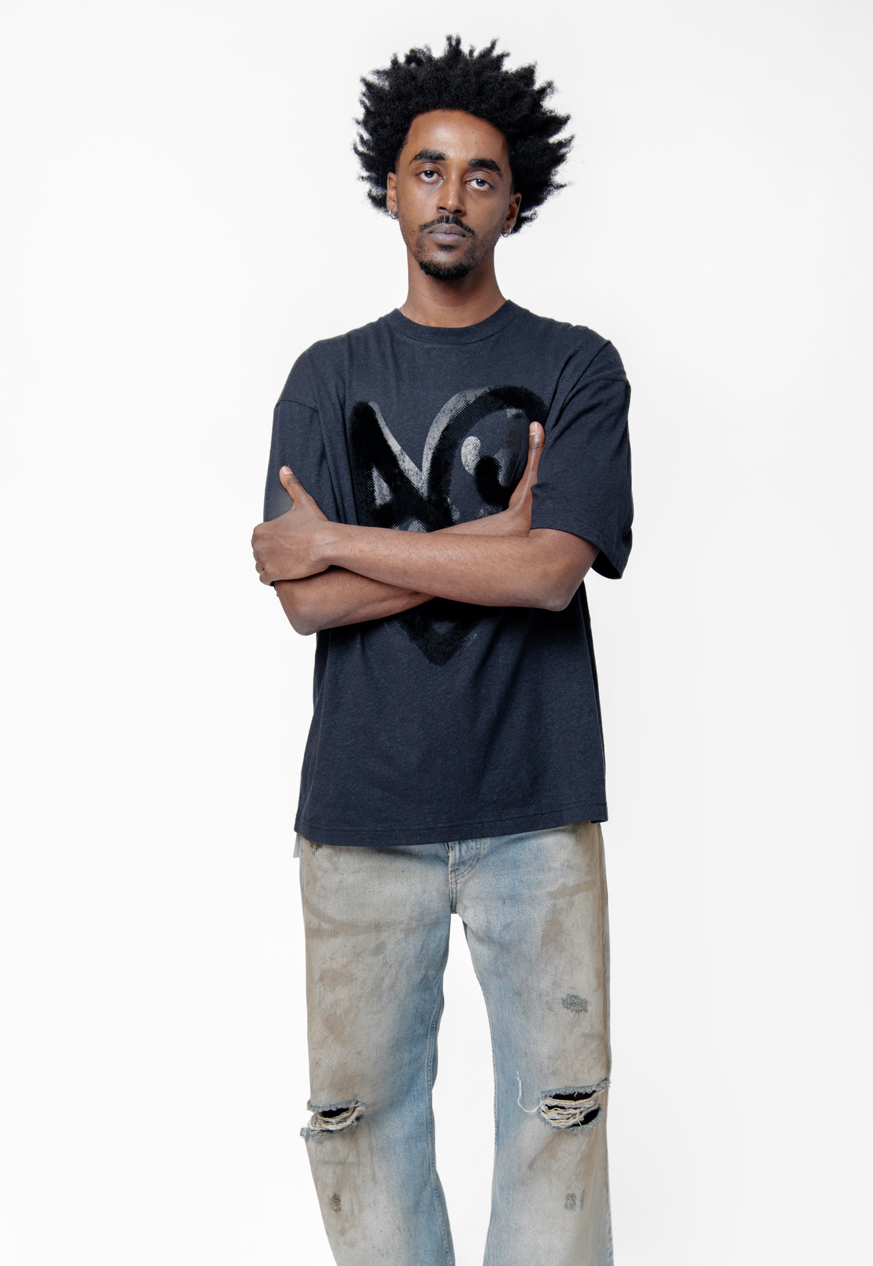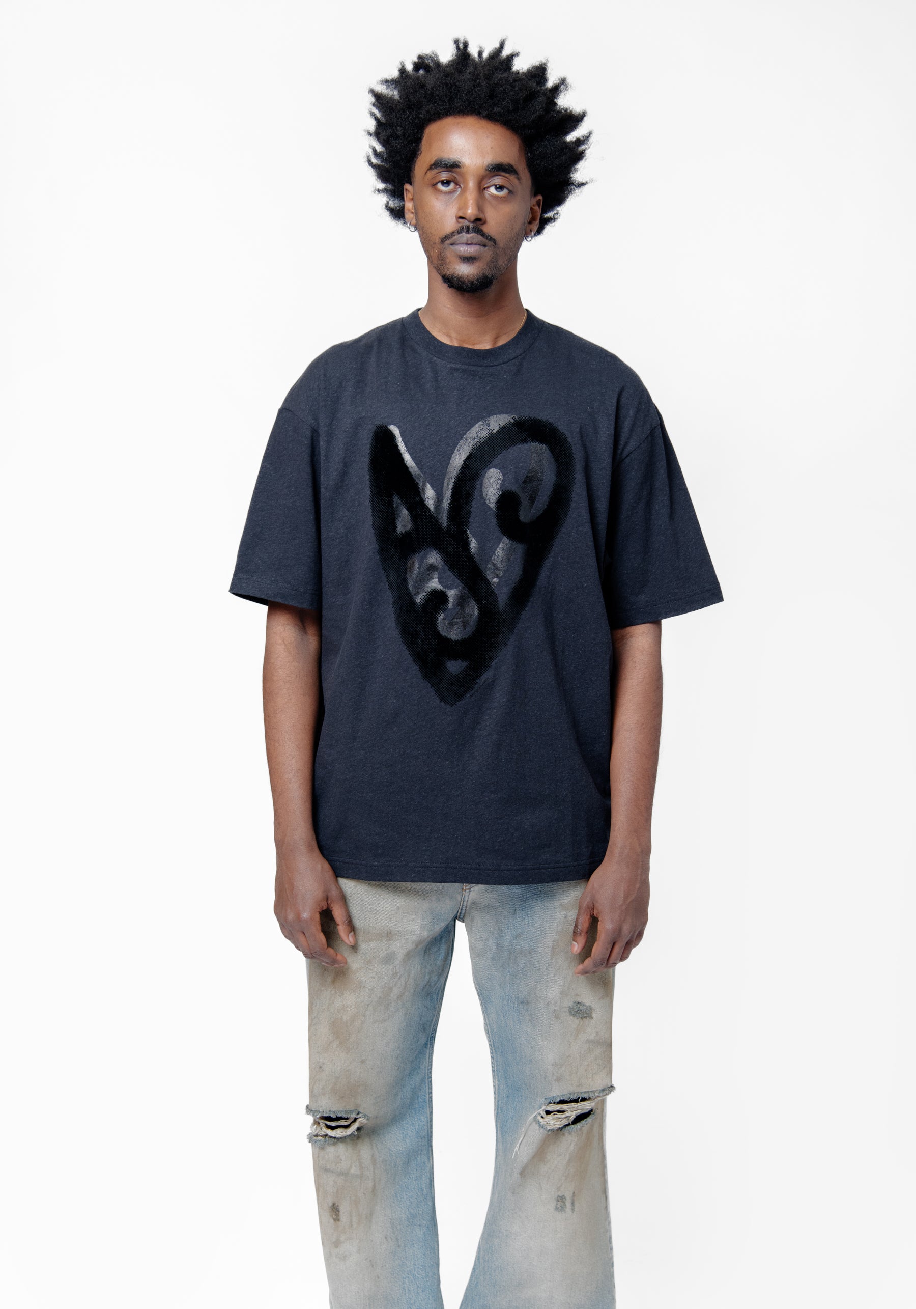 Printed Heart T-Shirt Black FN-UX-TSHI000140