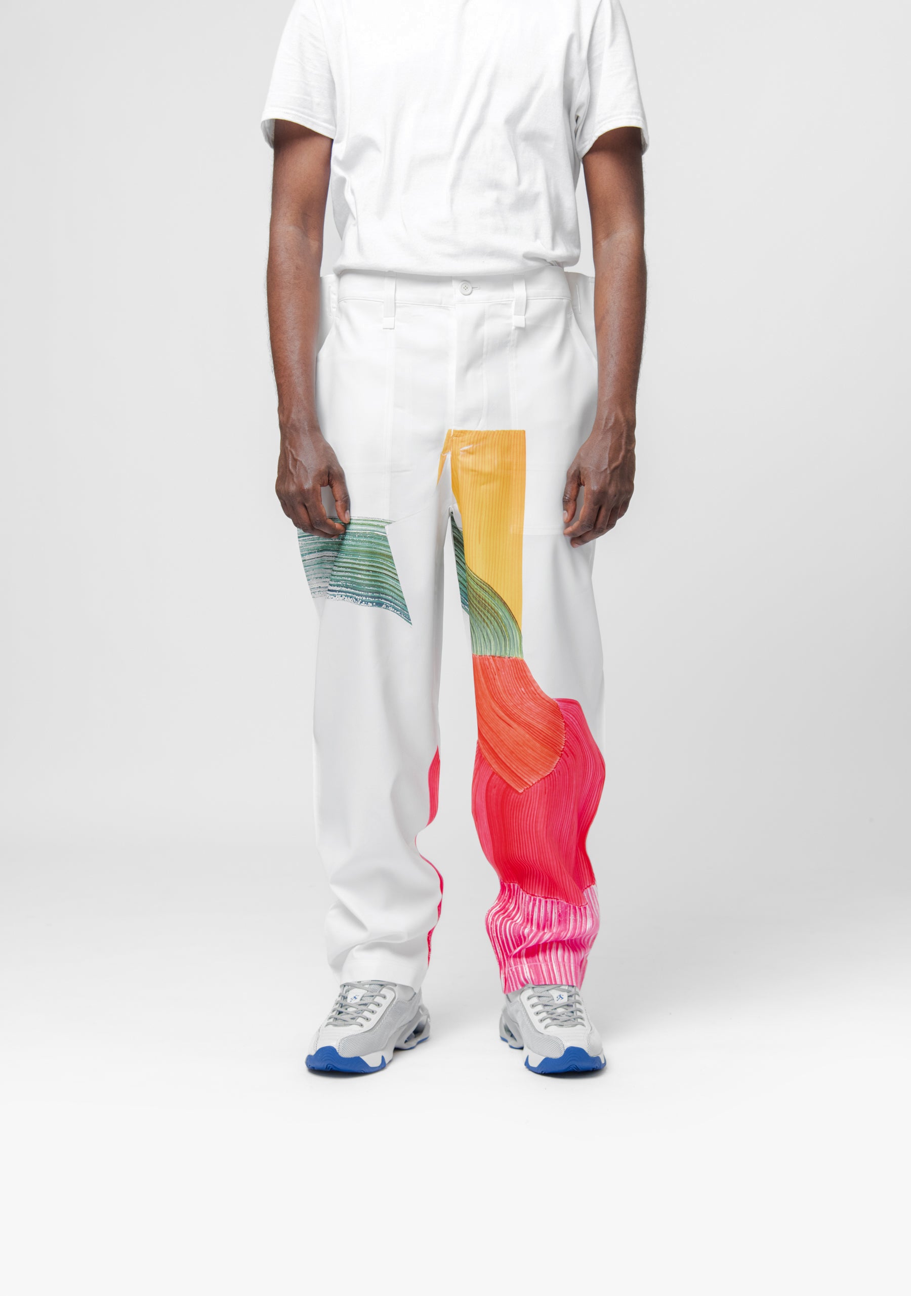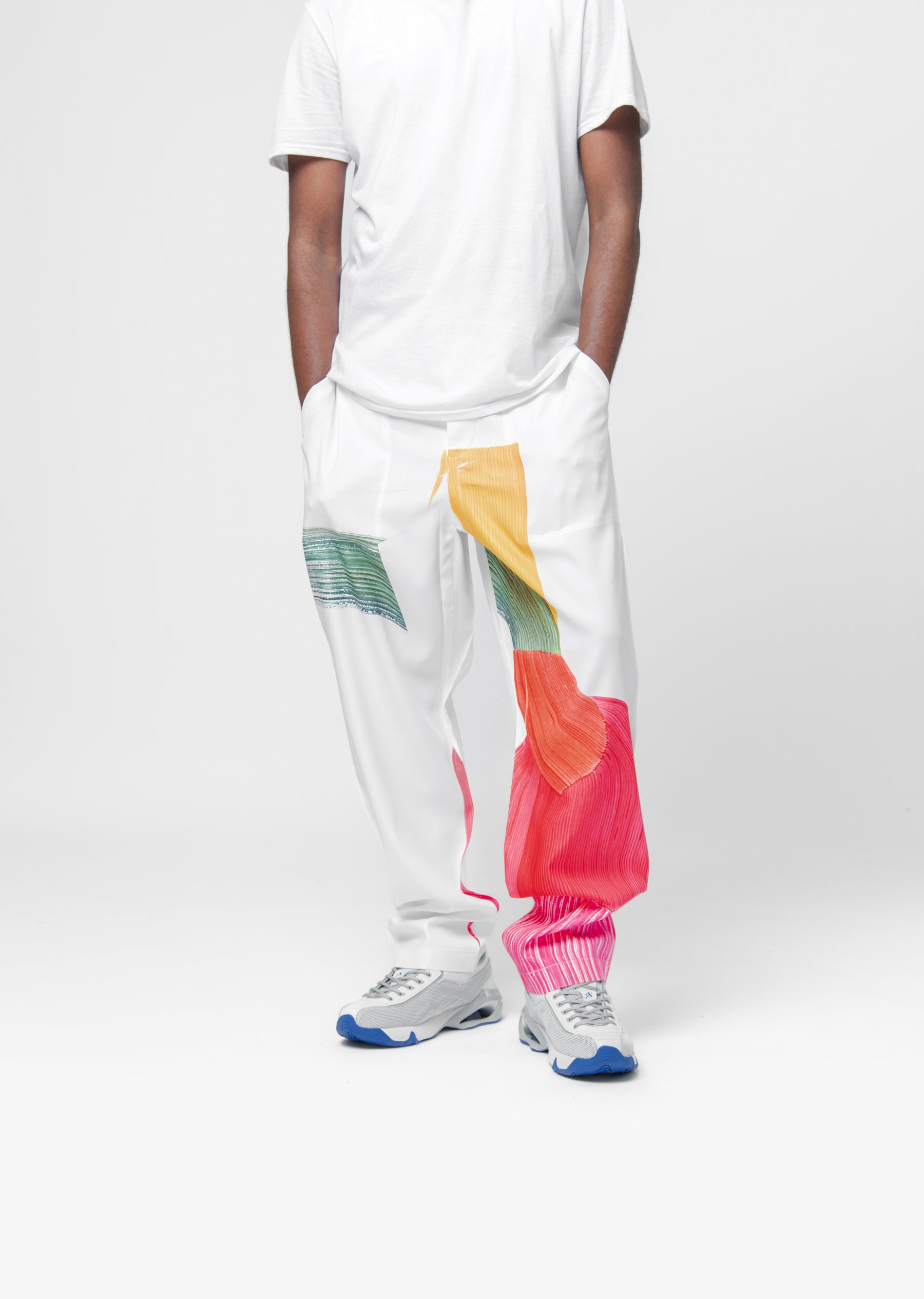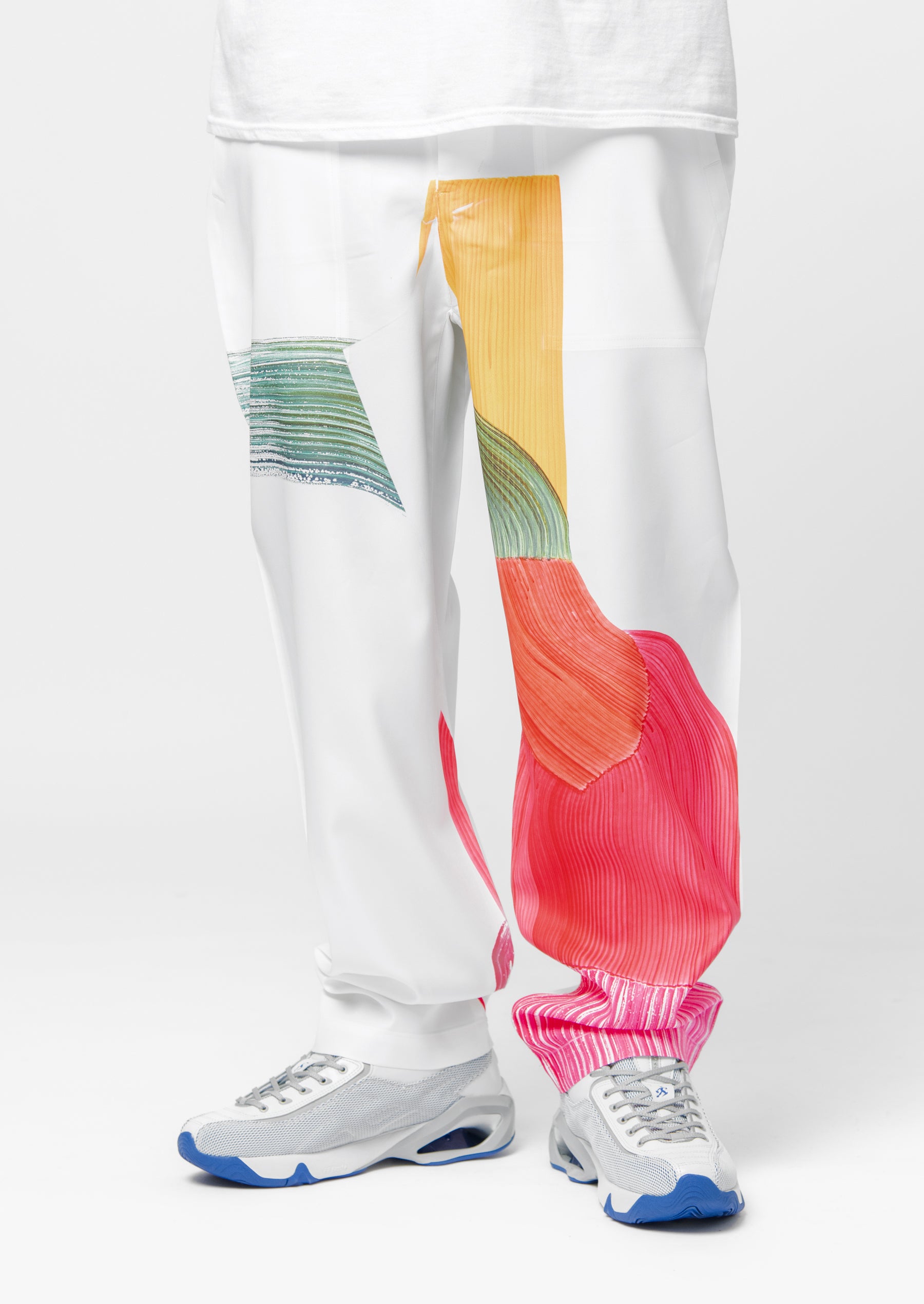 - Full-length Homme Plisse Issey Miyake pants in Pink and Red