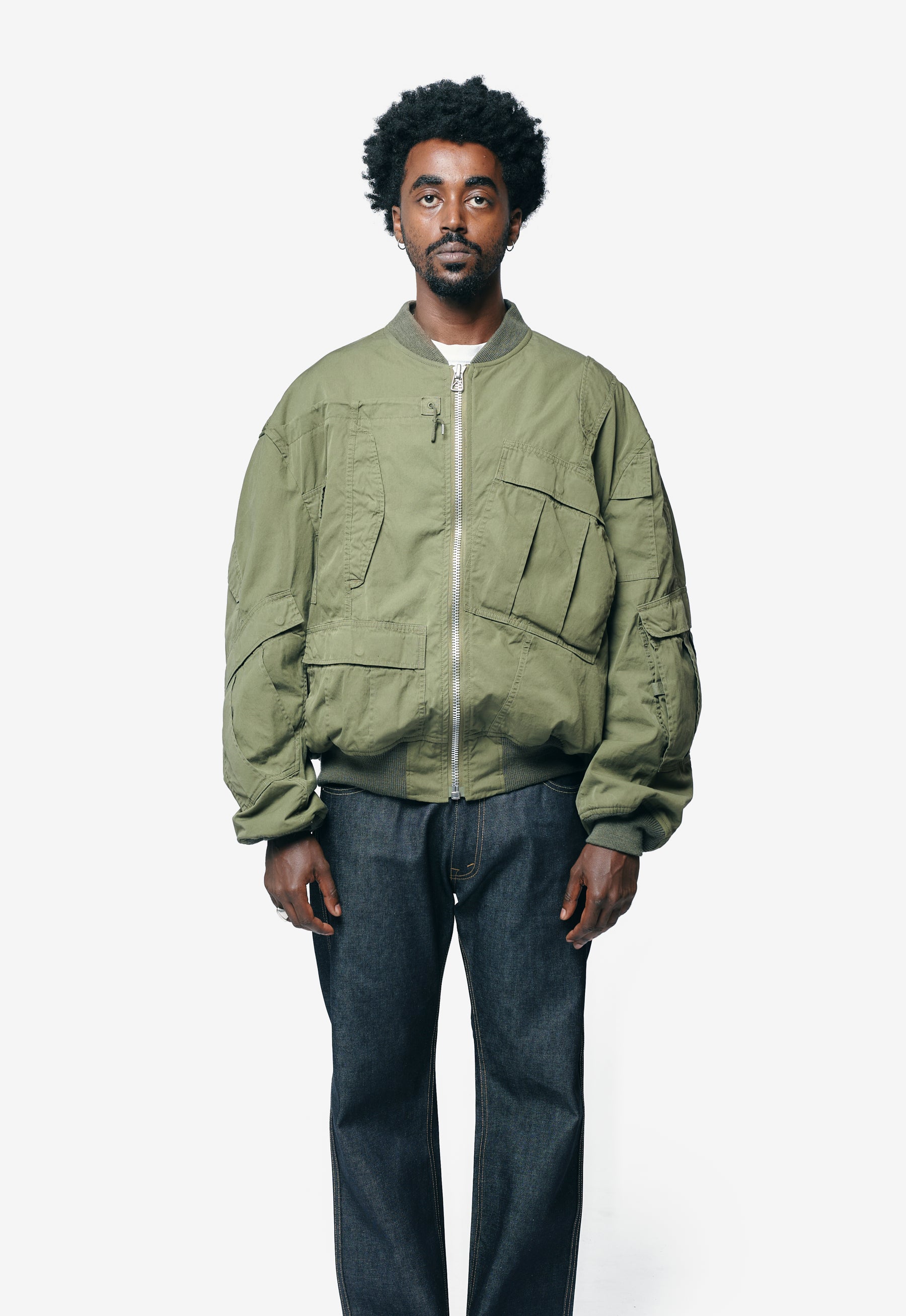 Rebuild By Needles Multi Pocket Bomber Jacket Khaki WP-J902-100-1