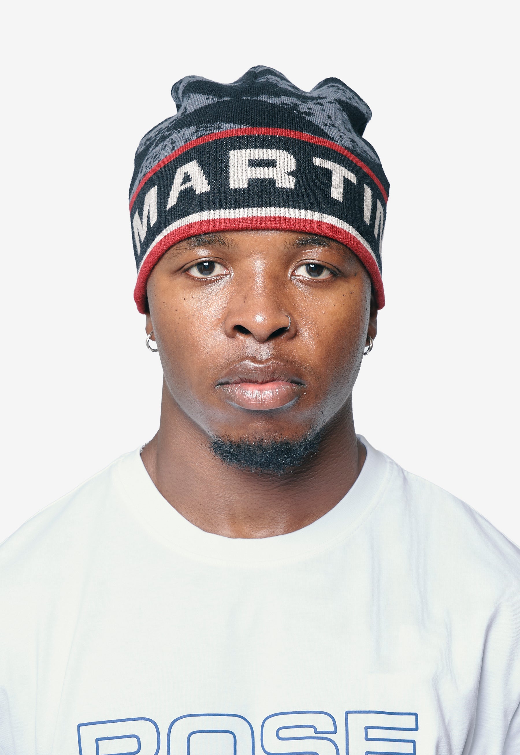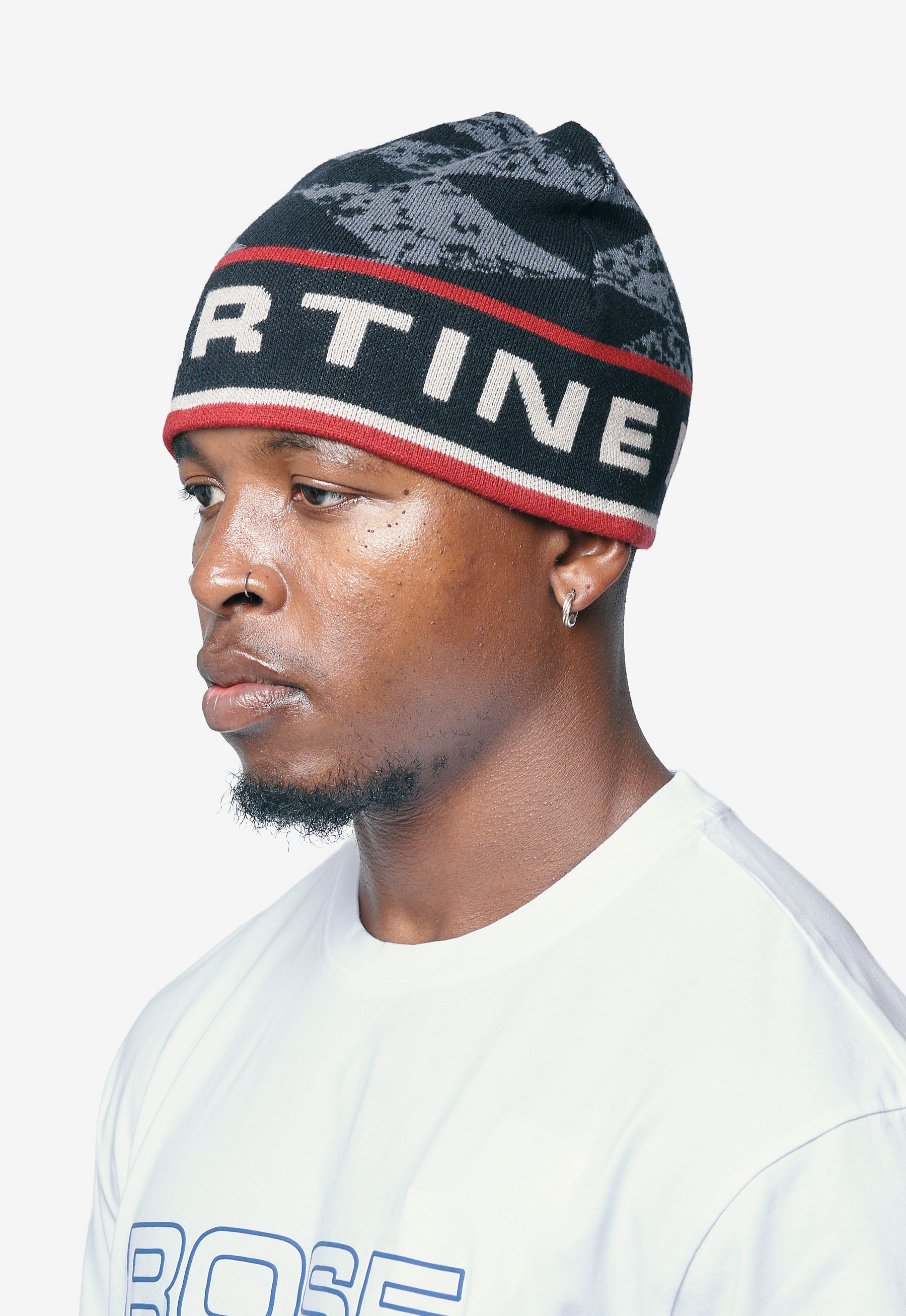 Knit Martine Rose toque in Grey and Red