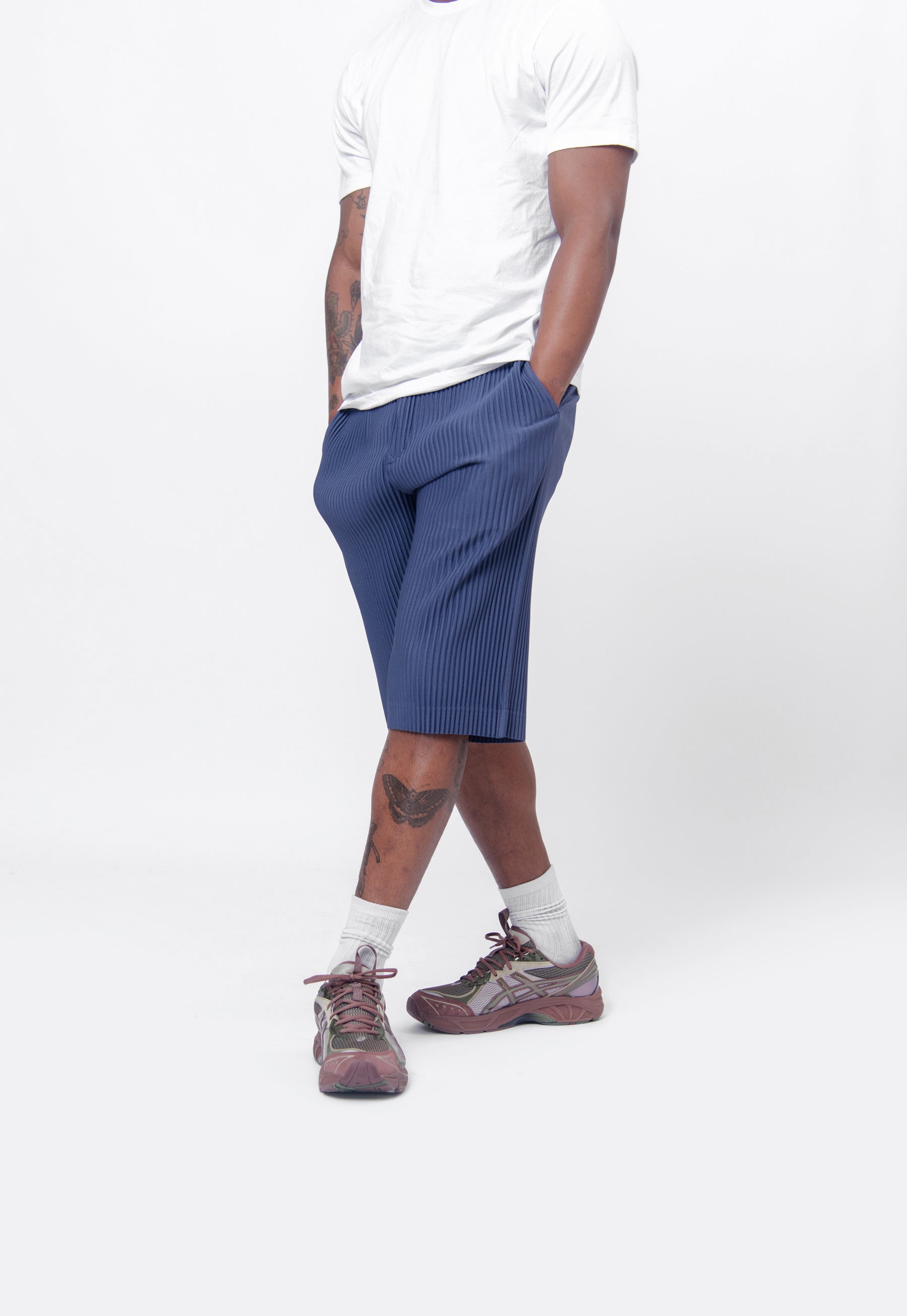 - Homme Plissé Issey Miyake pleated shorts in Blue Charcoal