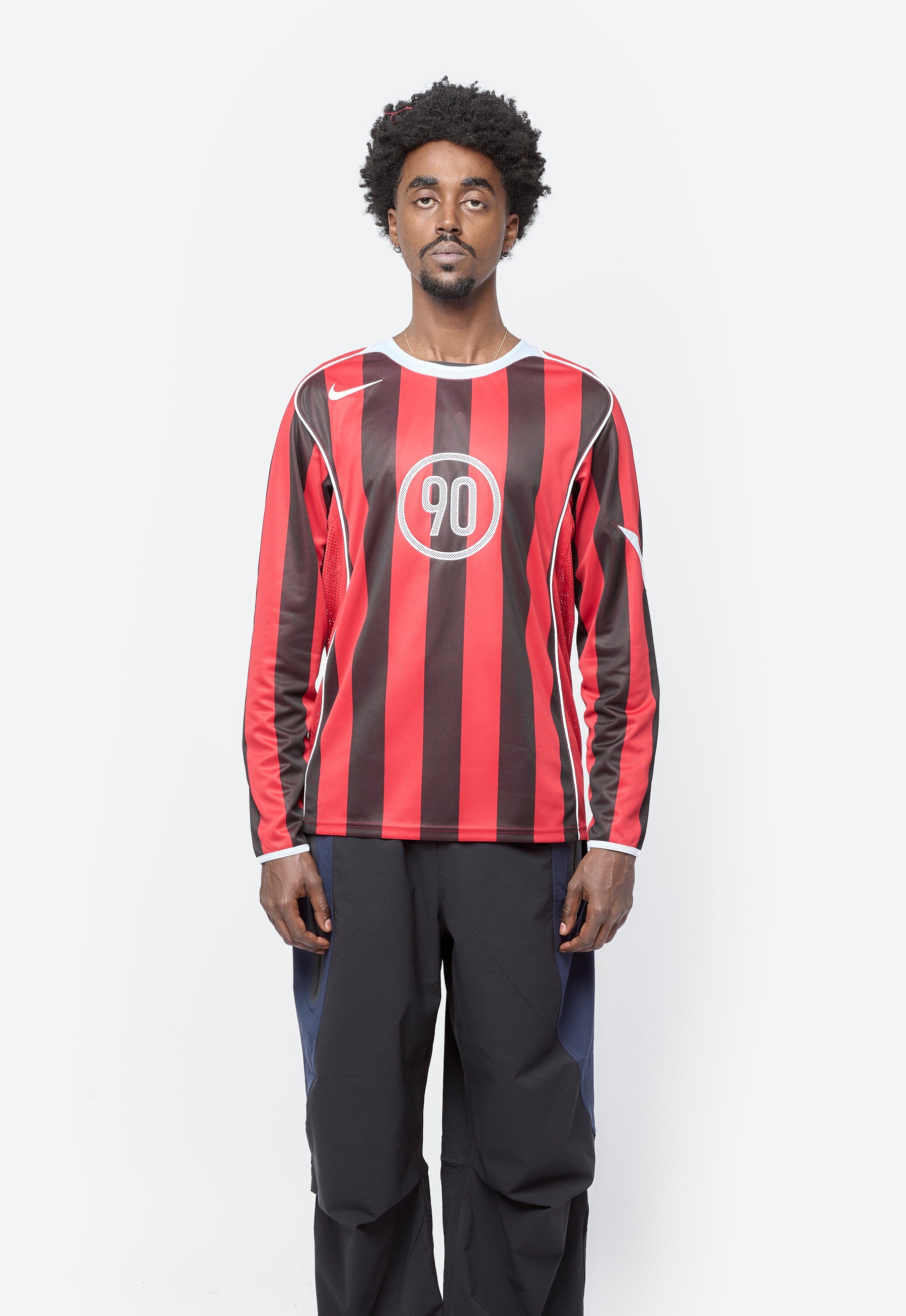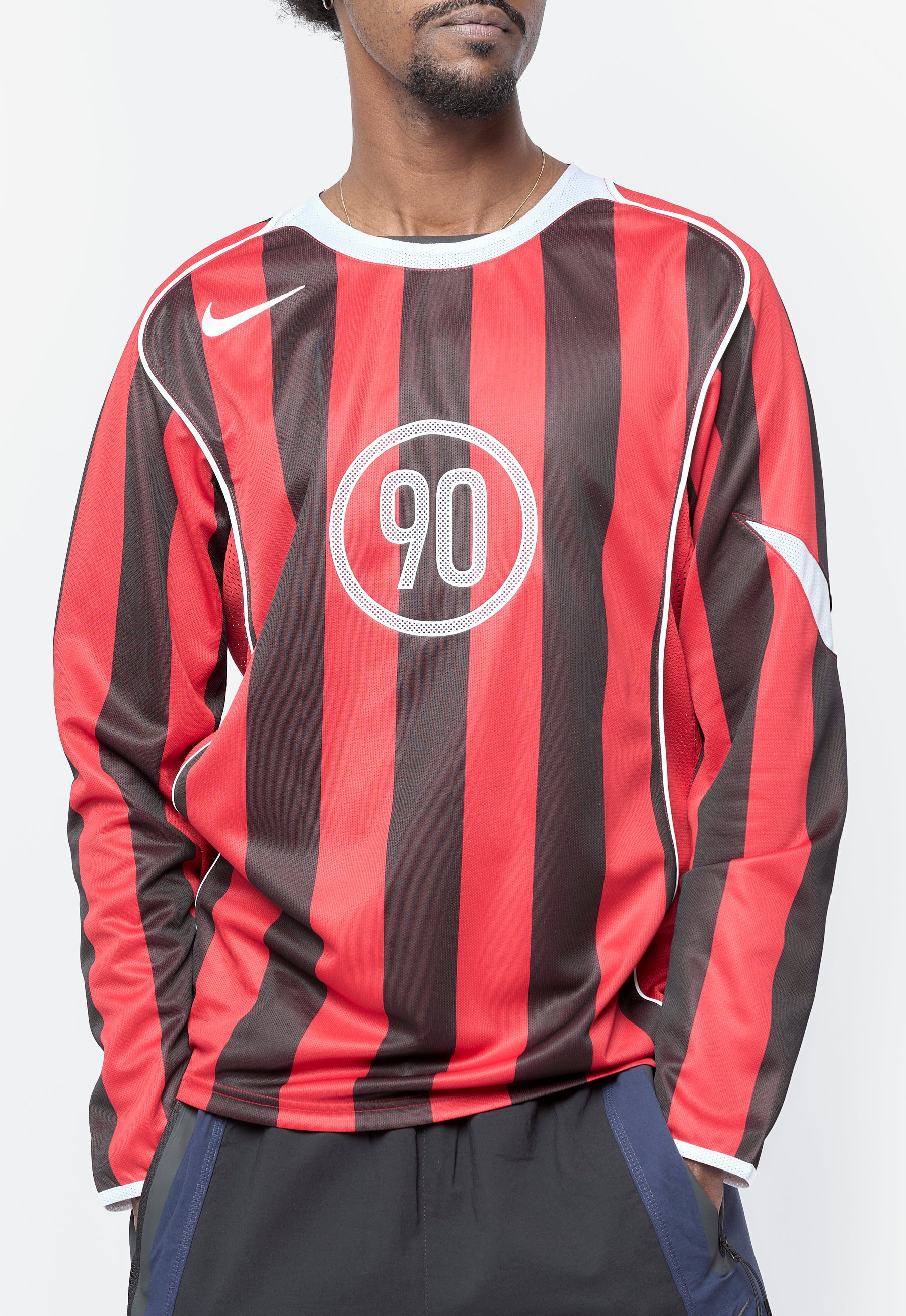 - Long sleeve Nike soccer jersey in Gym Red and White