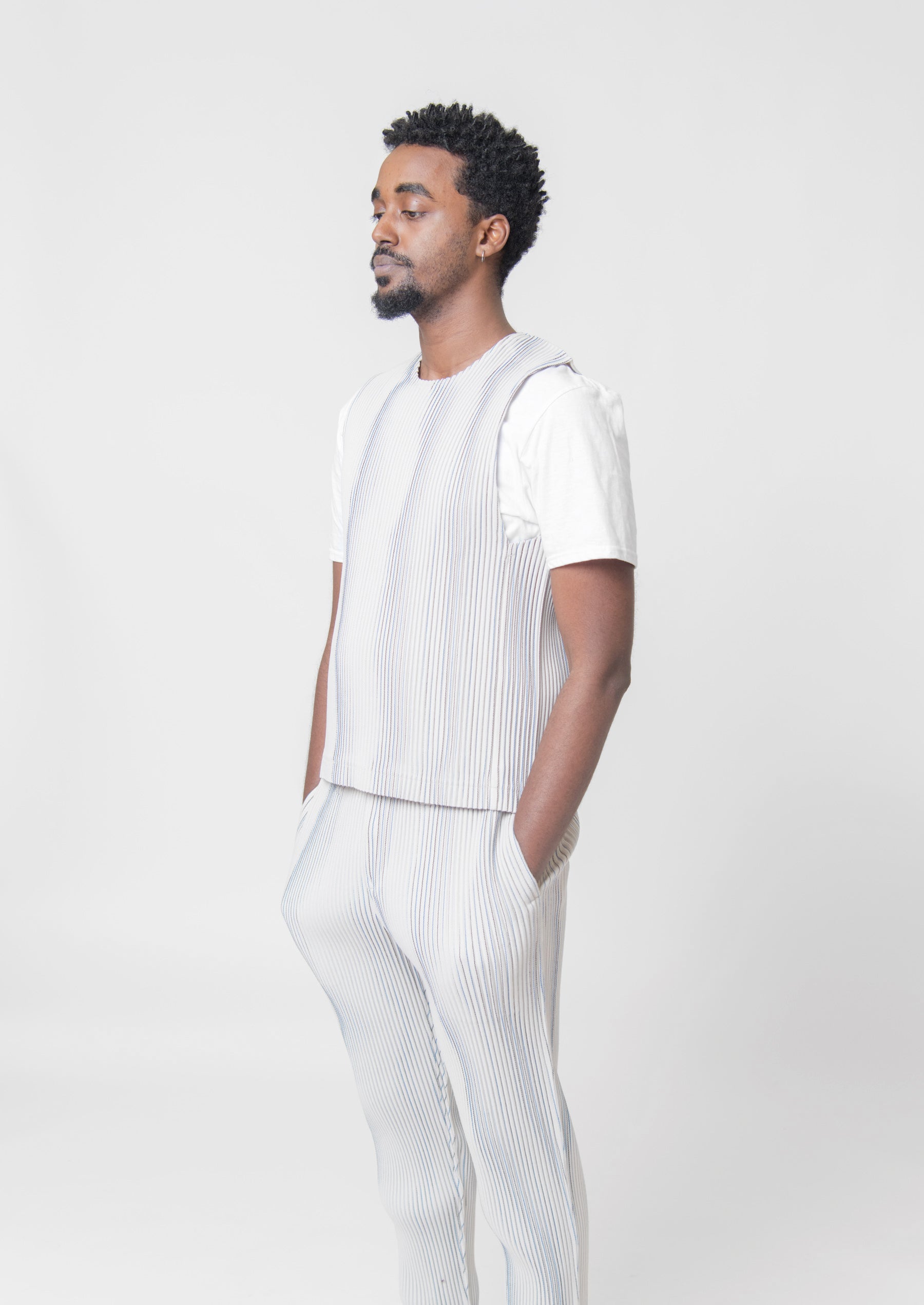 Tweed Pleats Vest Ivory FE321-41