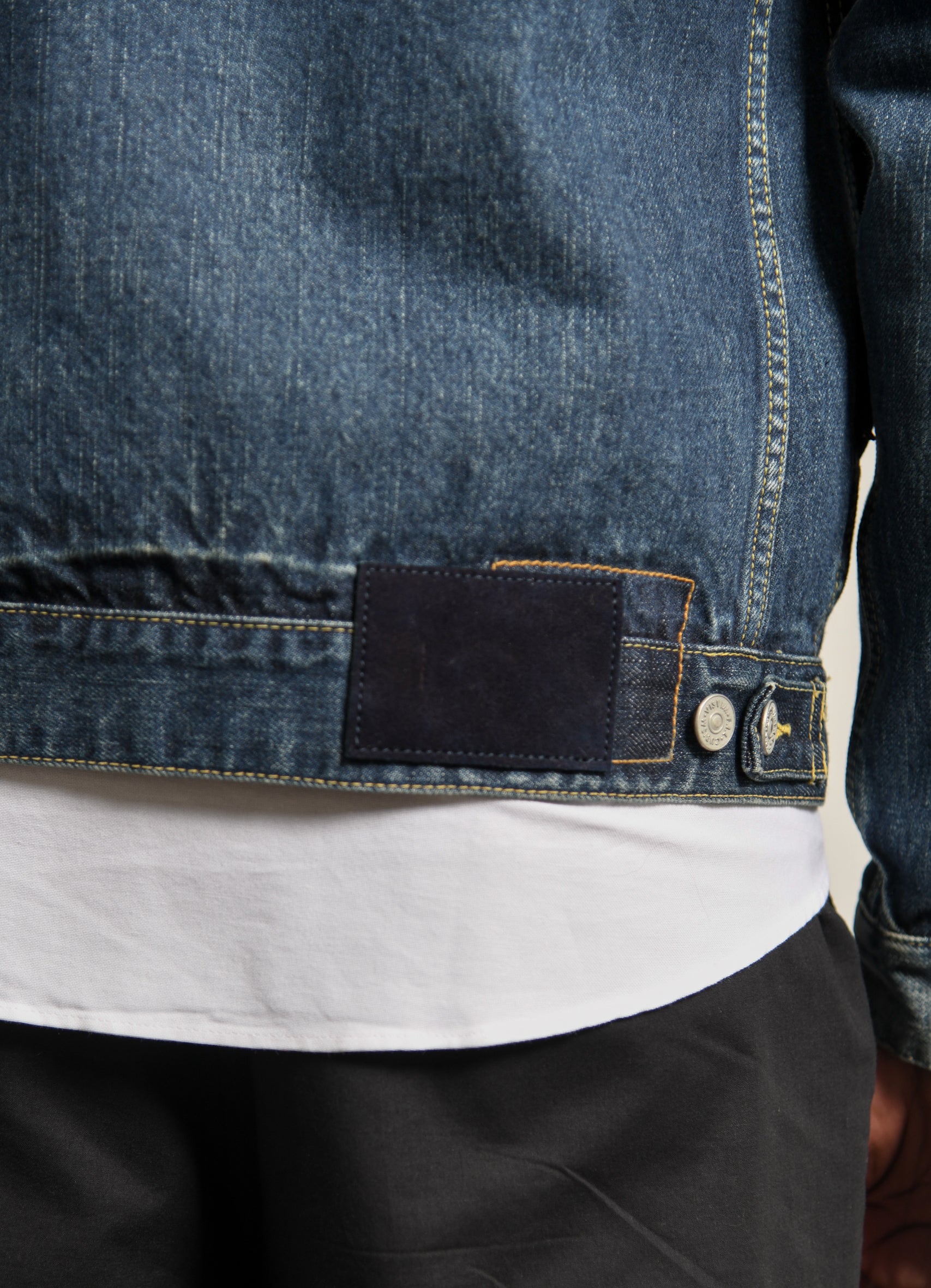 - Leather tag at back hem