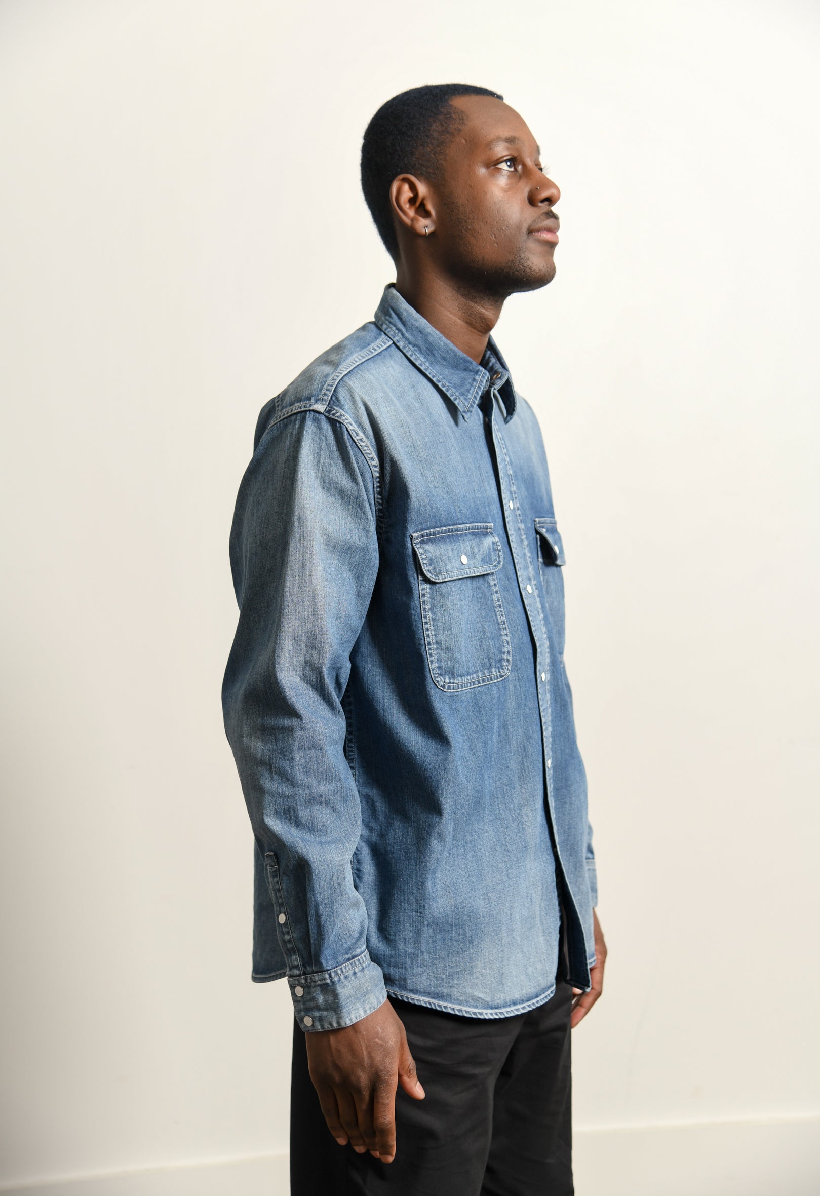 - Long sleeve denim chambray work shirt in Indigo