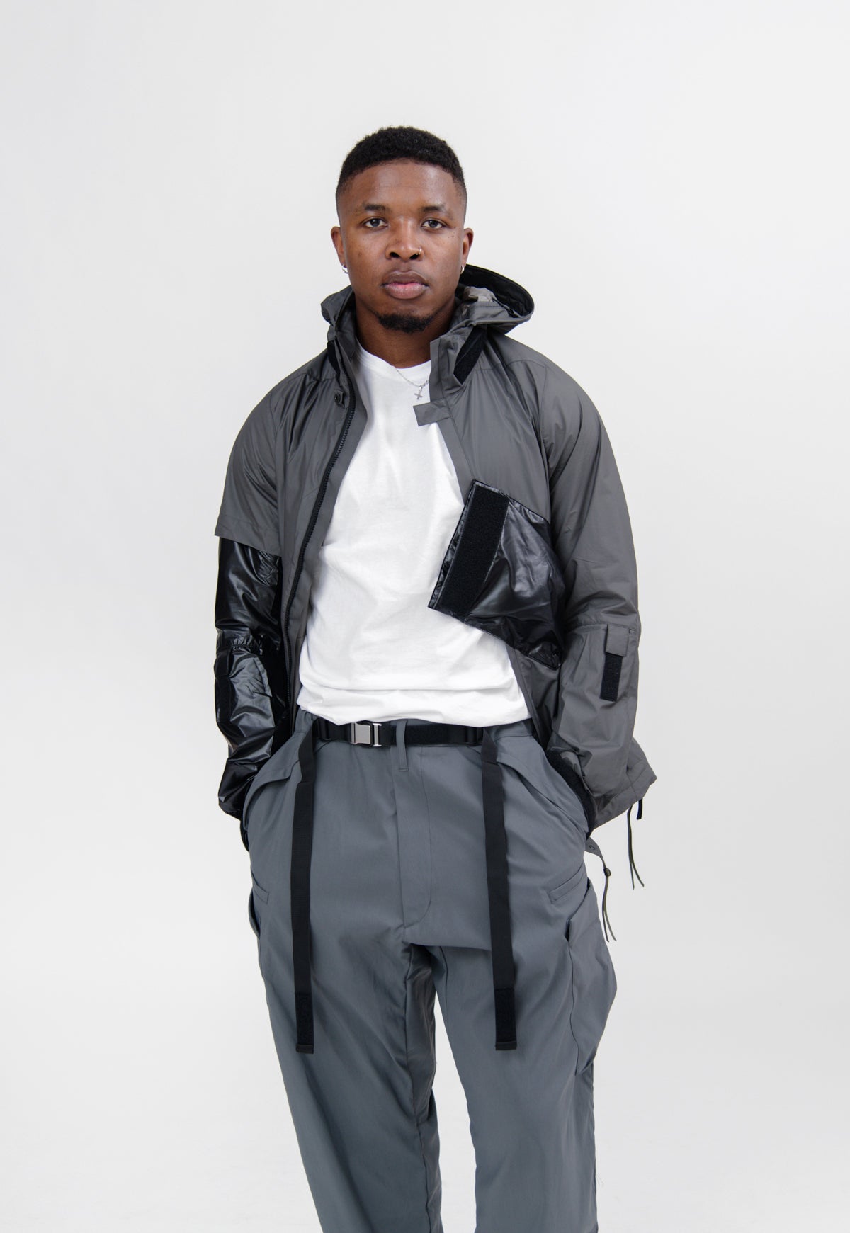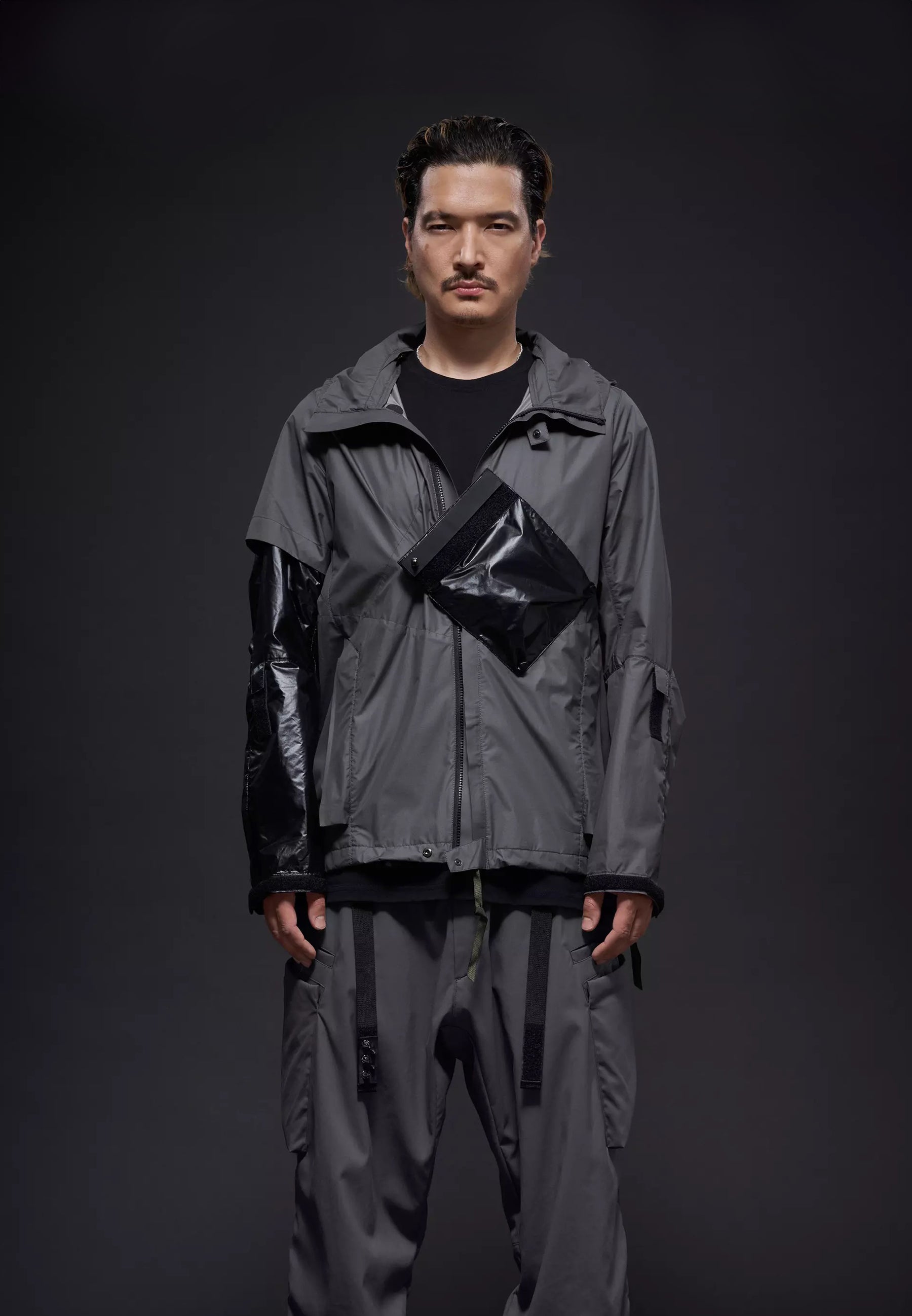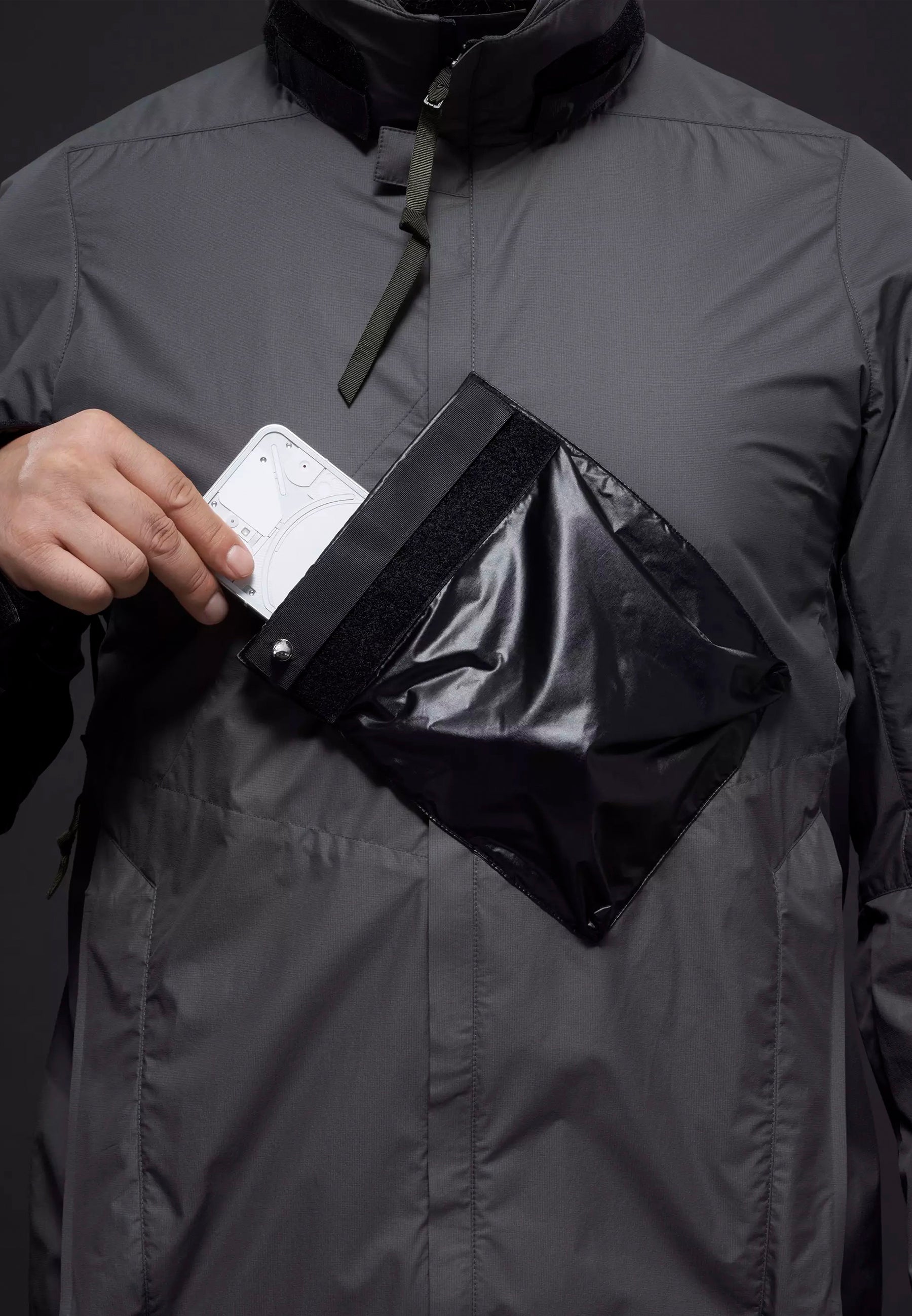 - Long sleeve ACRONYM poly blend ultra-lightweight jacket in Grey