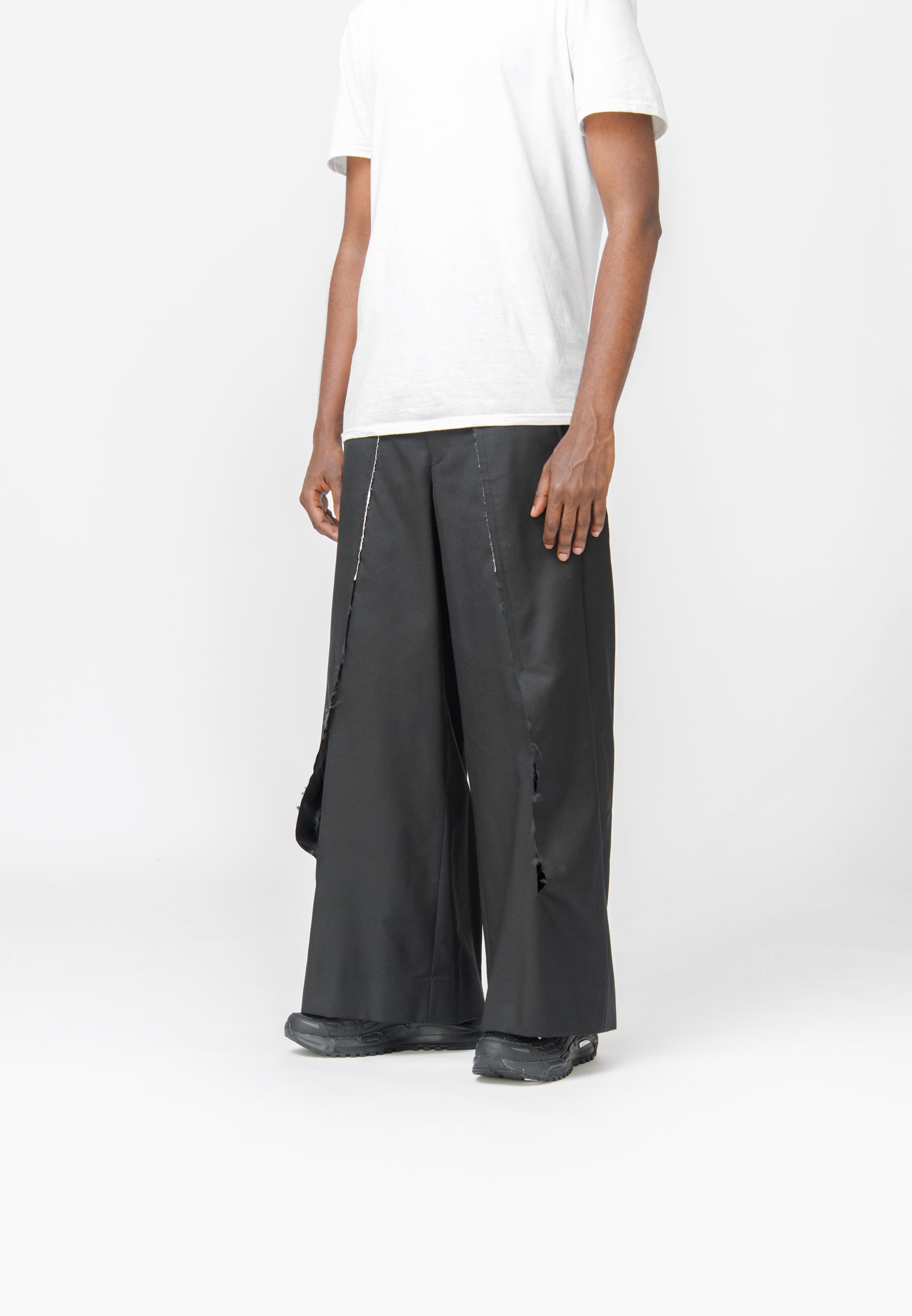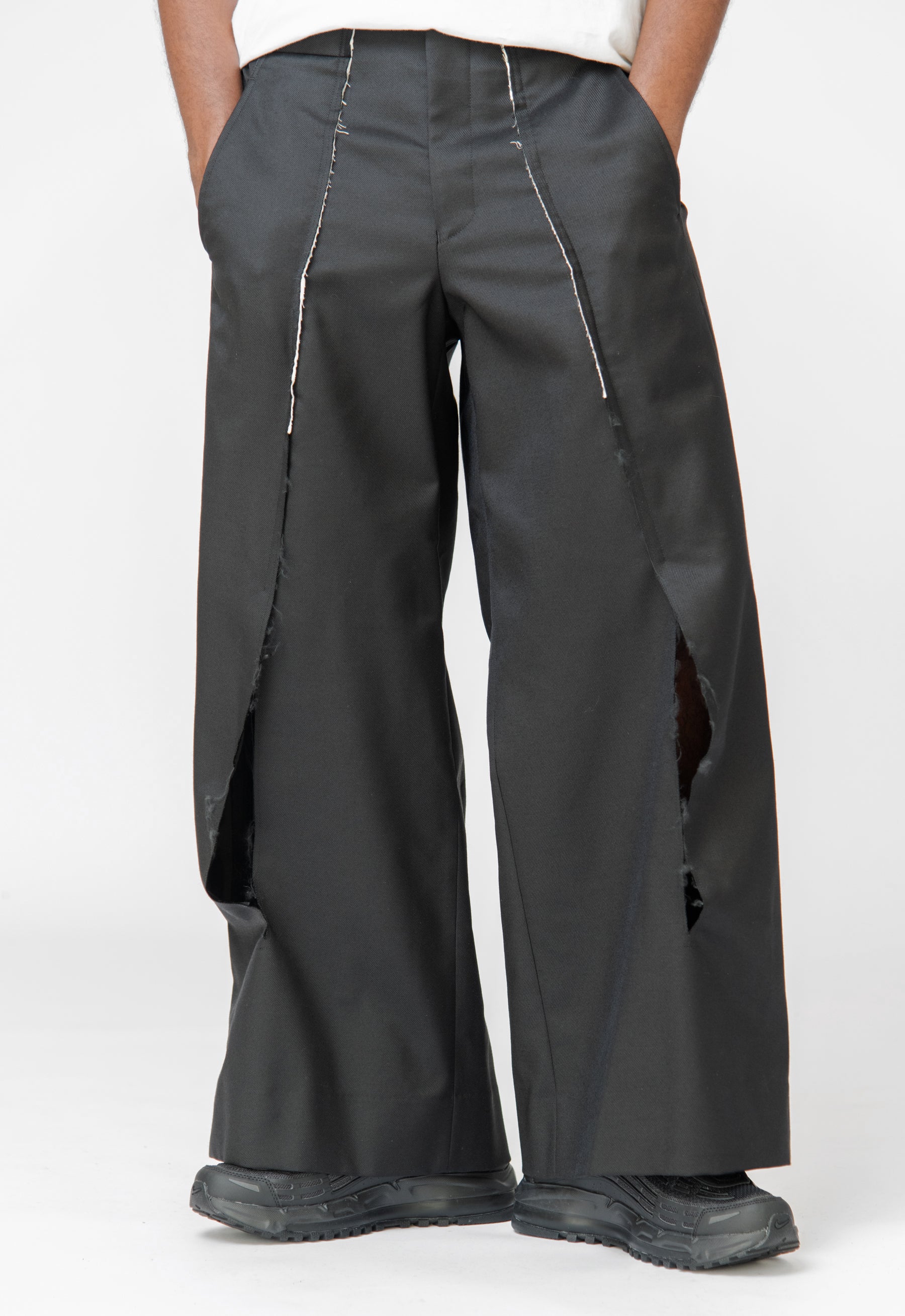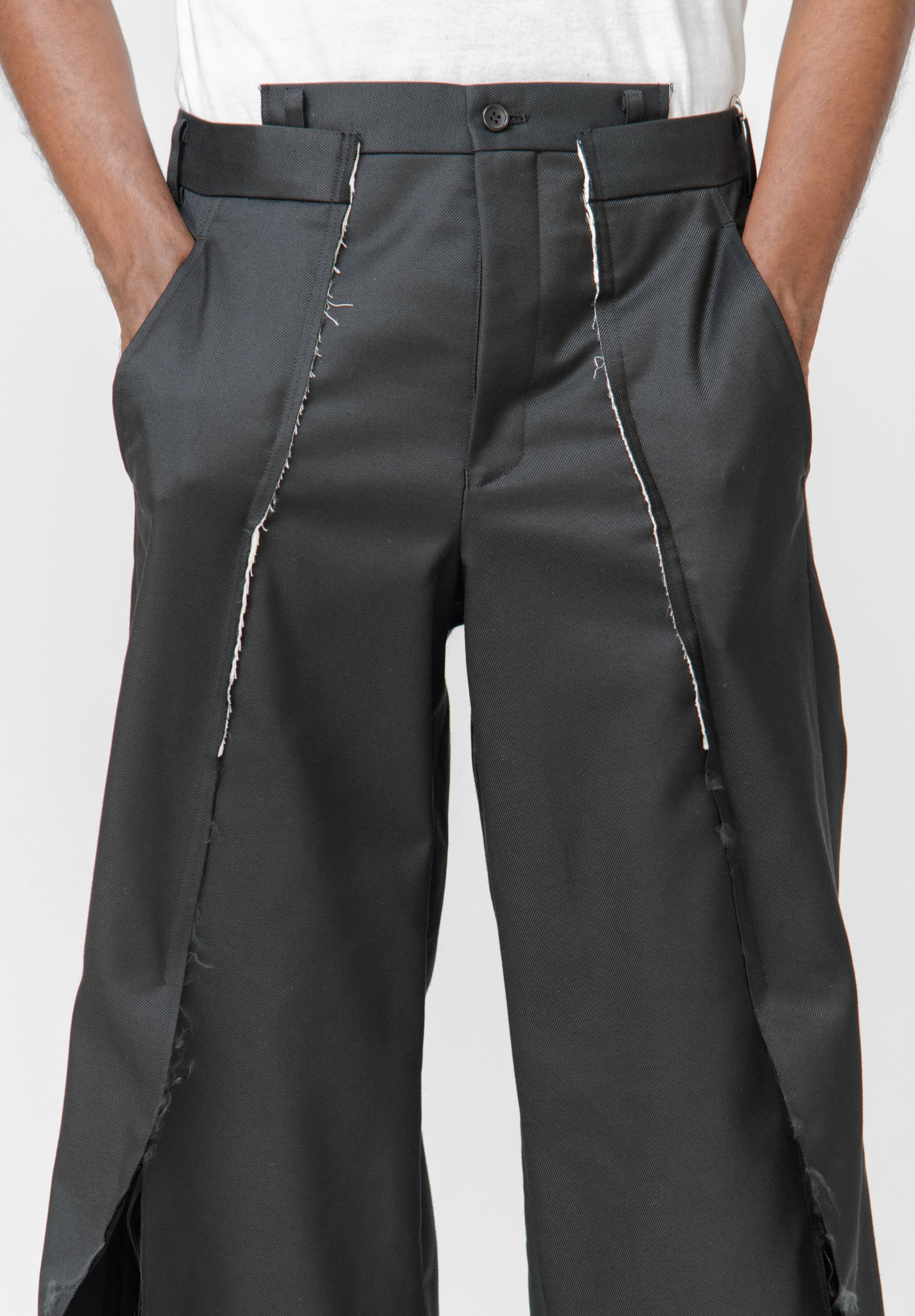 - Distressed slit pleat detailing at front