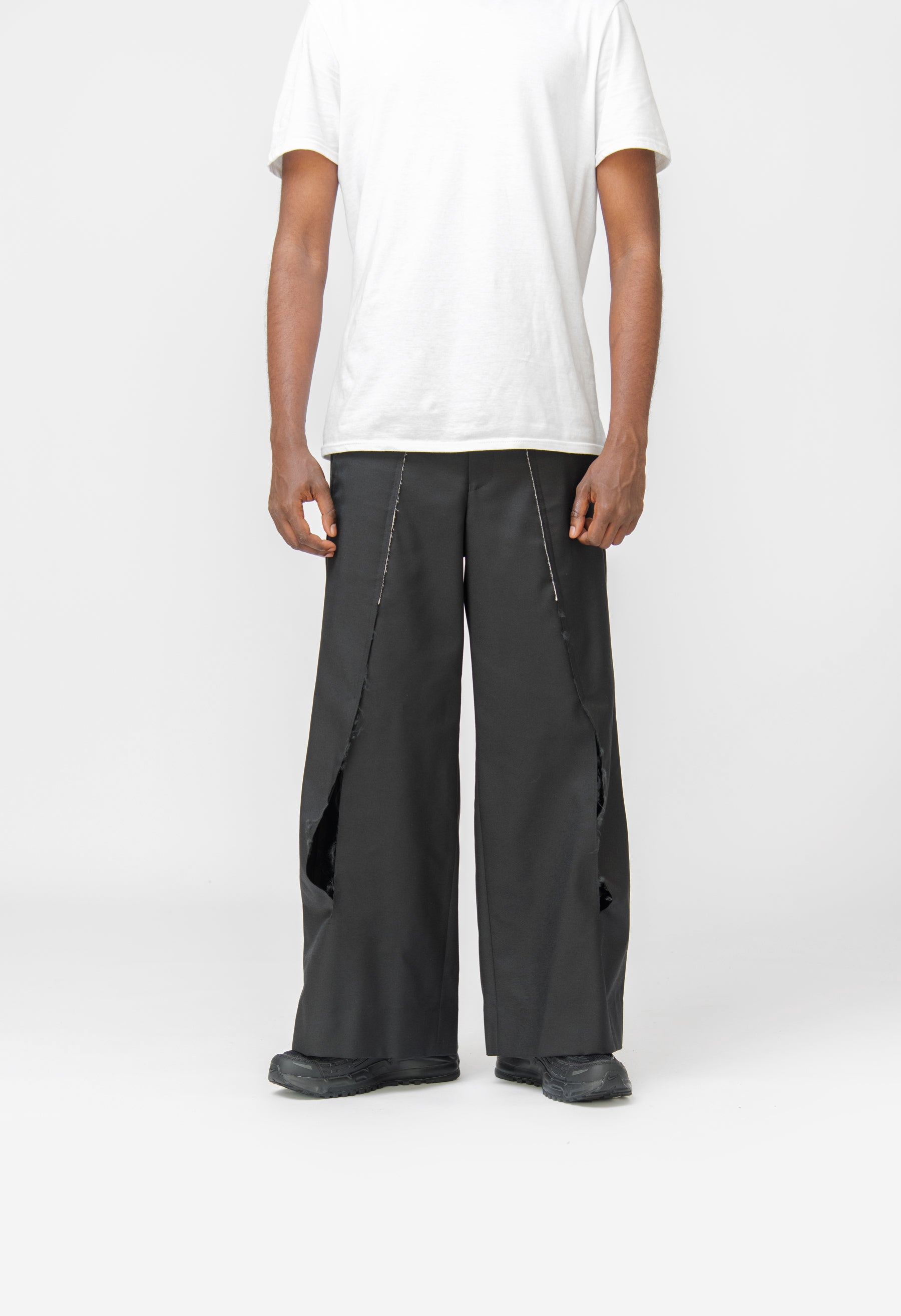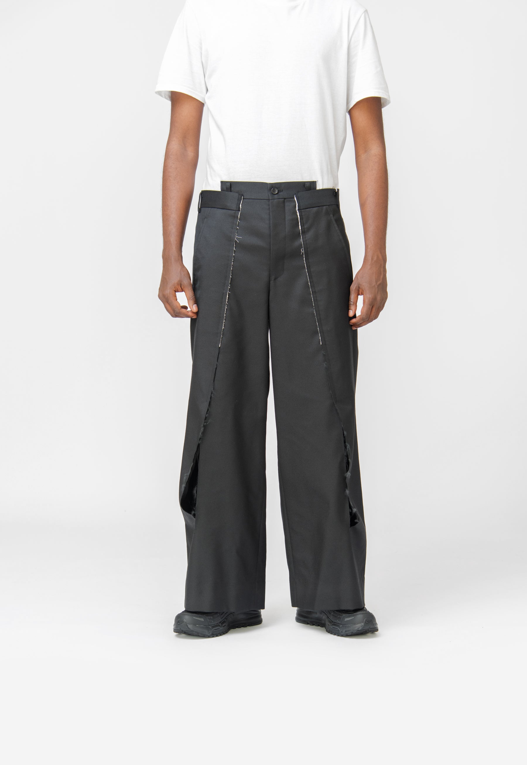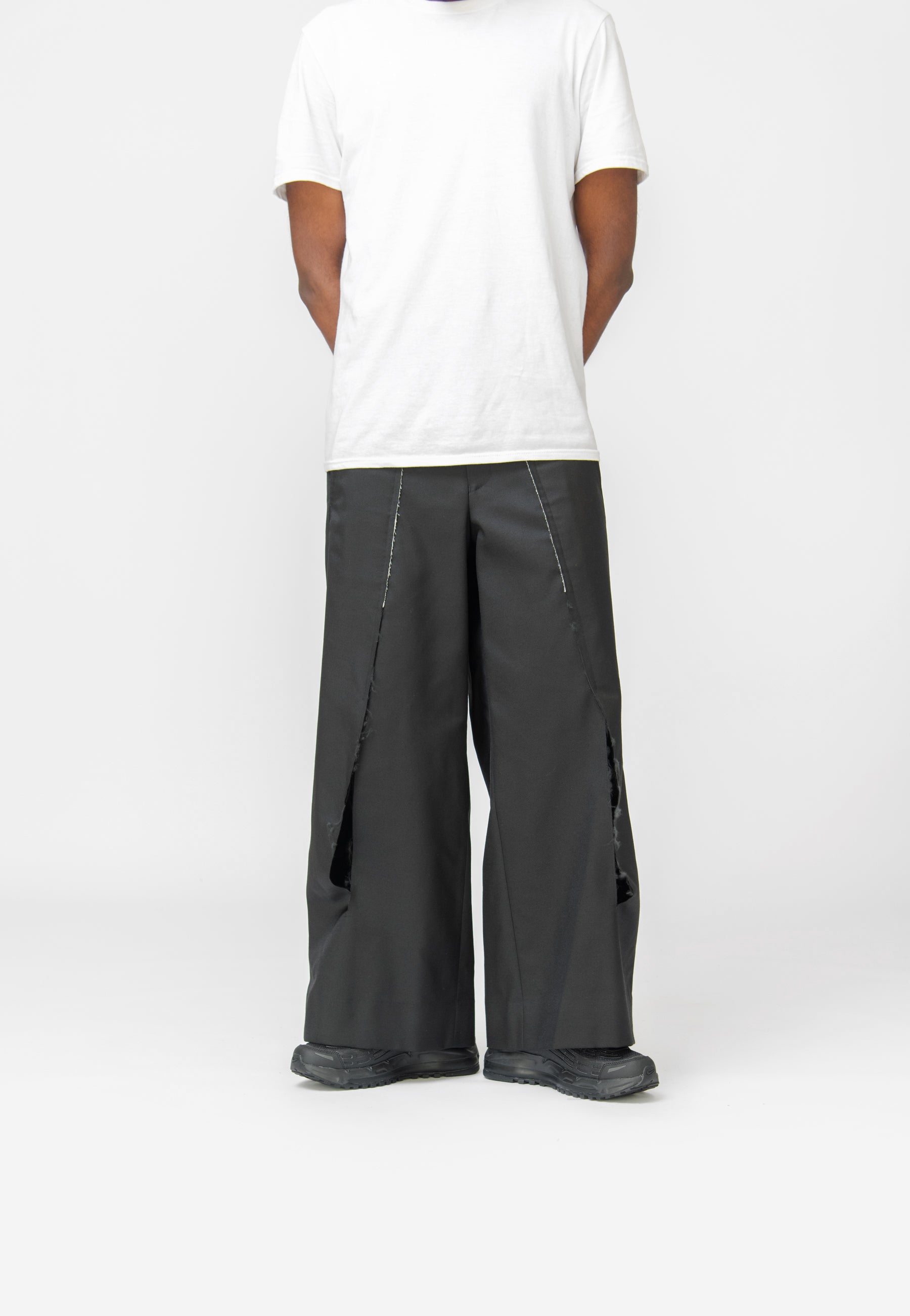 - Distressed slit pleat detailing at front